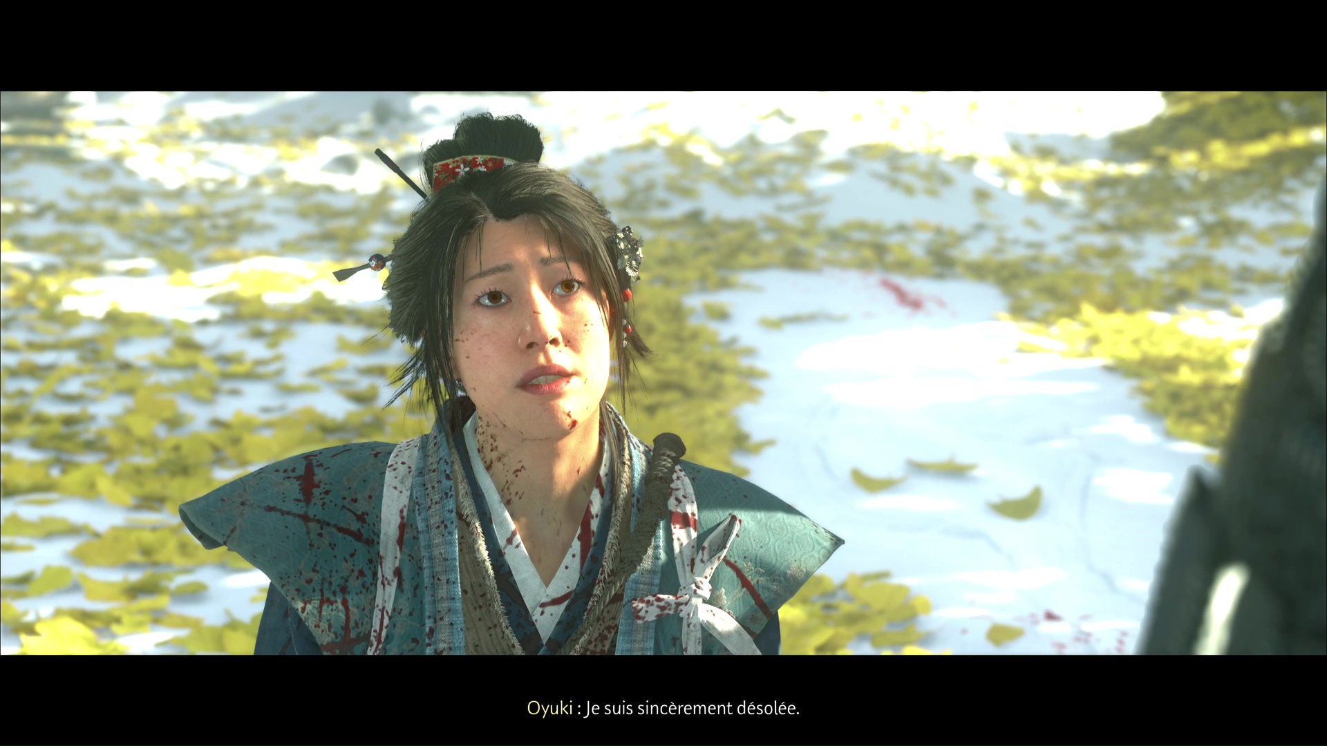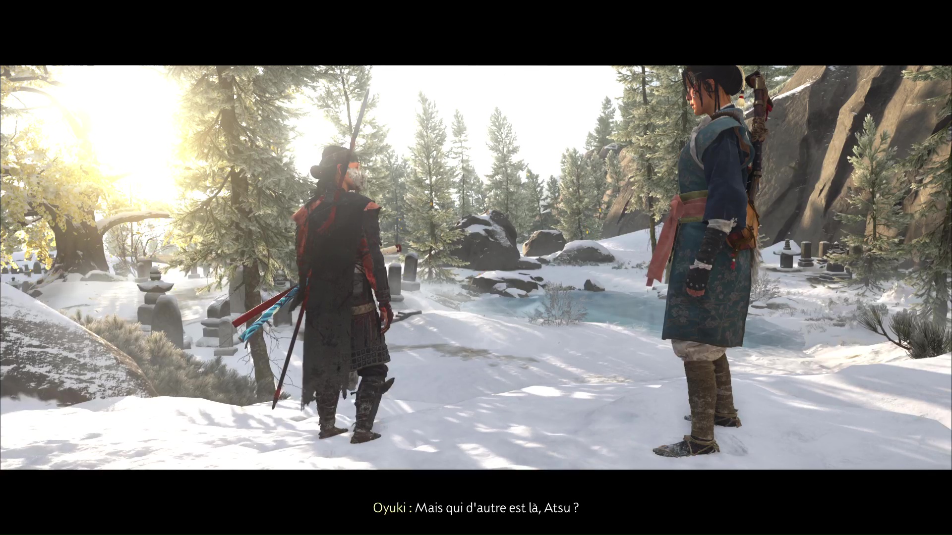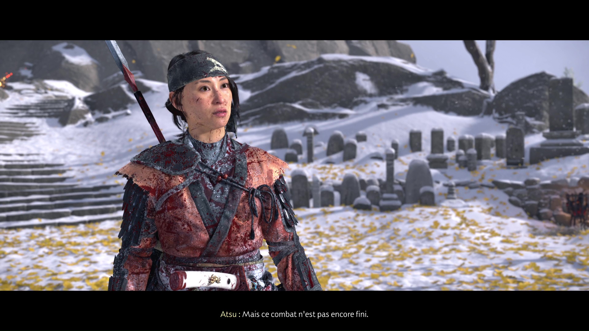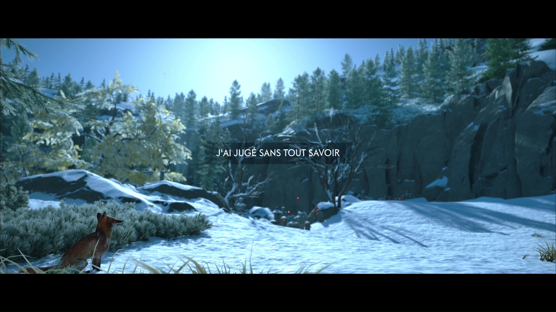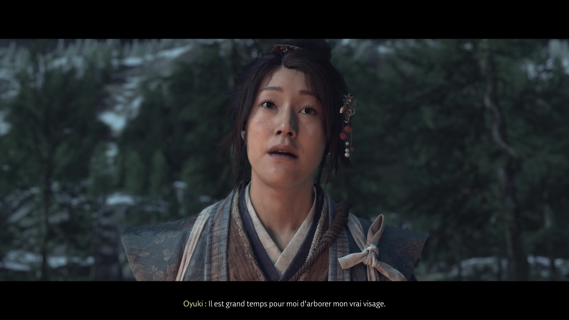 La chanson se lancera ensuite dans la foulée. Profitez de cet instant symbolisant le progrès du deuil d’Atsu, ponctué par l’acquisition du trophée 🏆 La femme derrière le masque. Une dernière étape vous attend dans la traque du Kitsune, au sein de la quête « Le destin du Kitsune ».