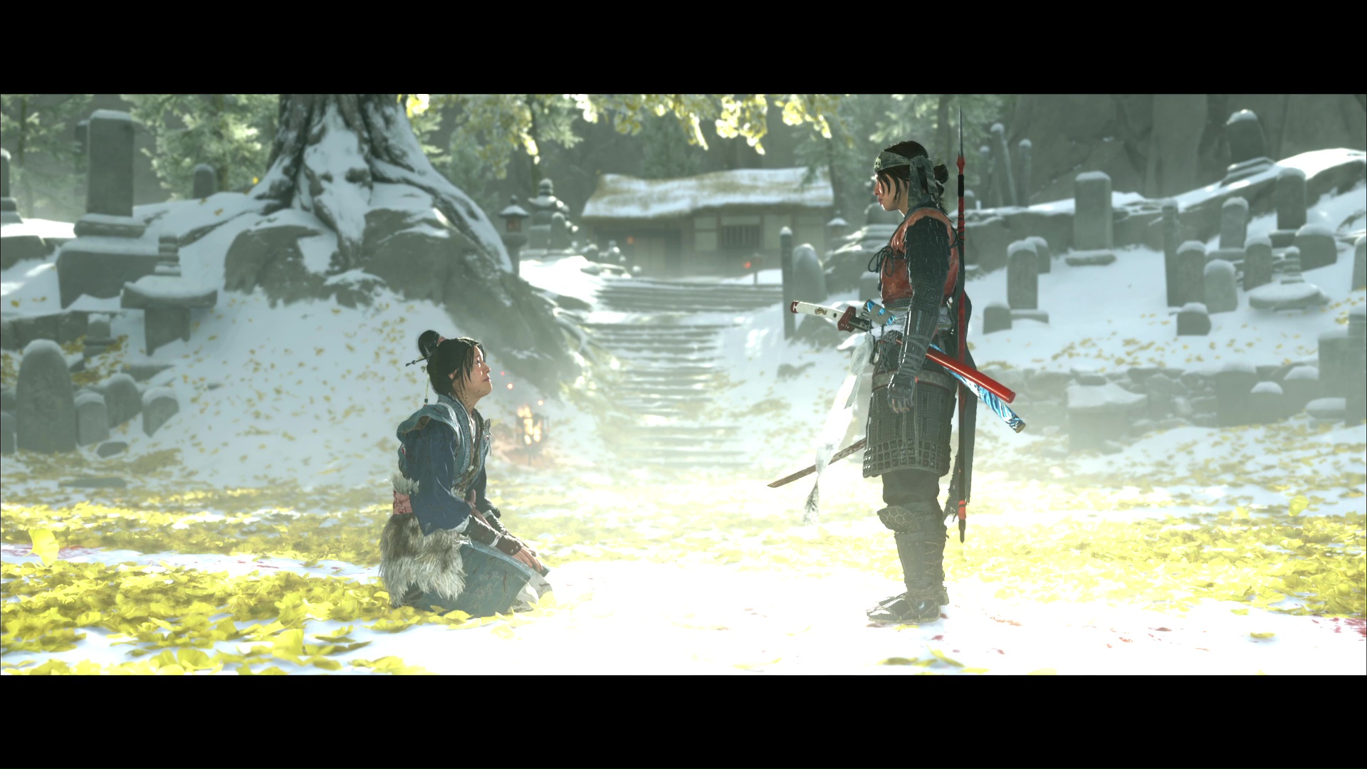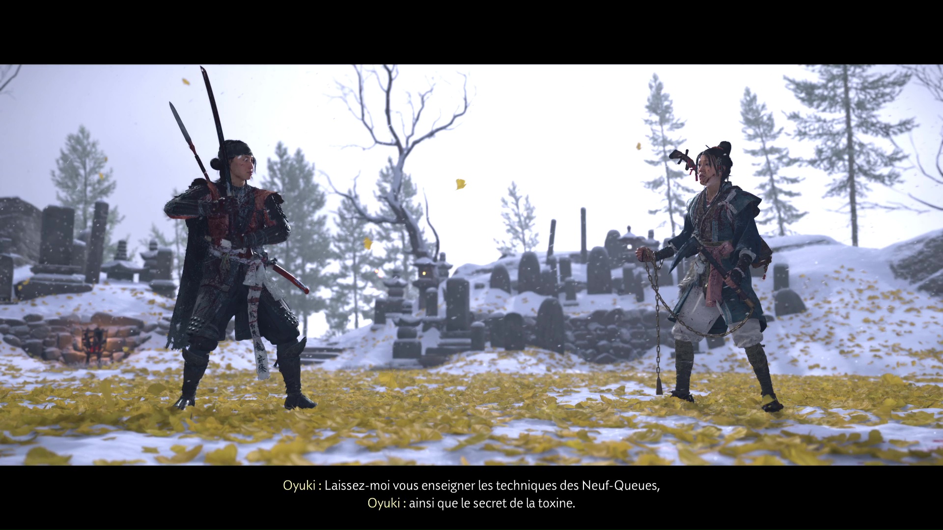 Atsu et Oyuki touchaient pourtant au but en réussissant à s’approcher au plus près du Kitsune, au fond du site de récolte d’ingrédients pour son poison. Mais une attaque précipitée à cause d’un assaut Matsumae en parallèle a simplement permis à notre héroïne de croiser le fer quelques instants avec sa cible, avant qu’elle ne s’échappe. Touchée et empoisonnée, Atsu a également fait la découverte saisissante qu’Oyuki fut la Kitsune présente le soir de l’assassinat de ces parents. Tant de questions et d’incompréhension qu’Oyuki veut clarifier dans ce nouveau chapitre de Ghost of Yōtei.