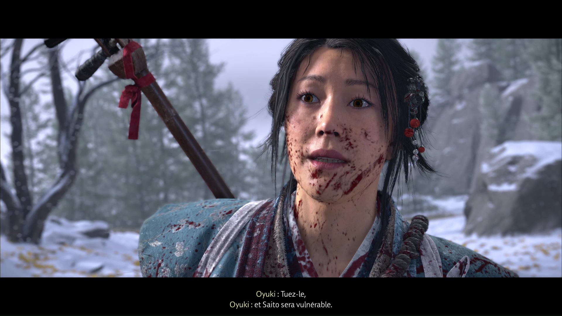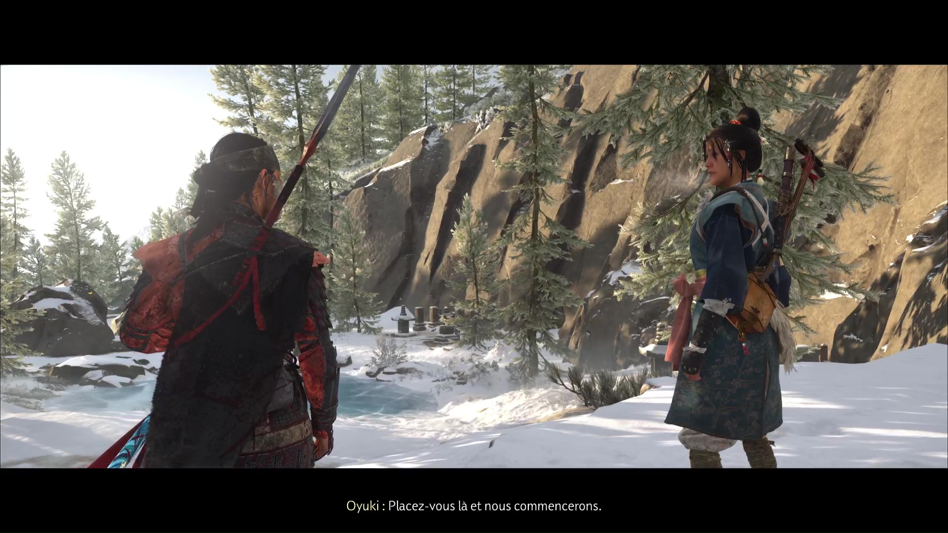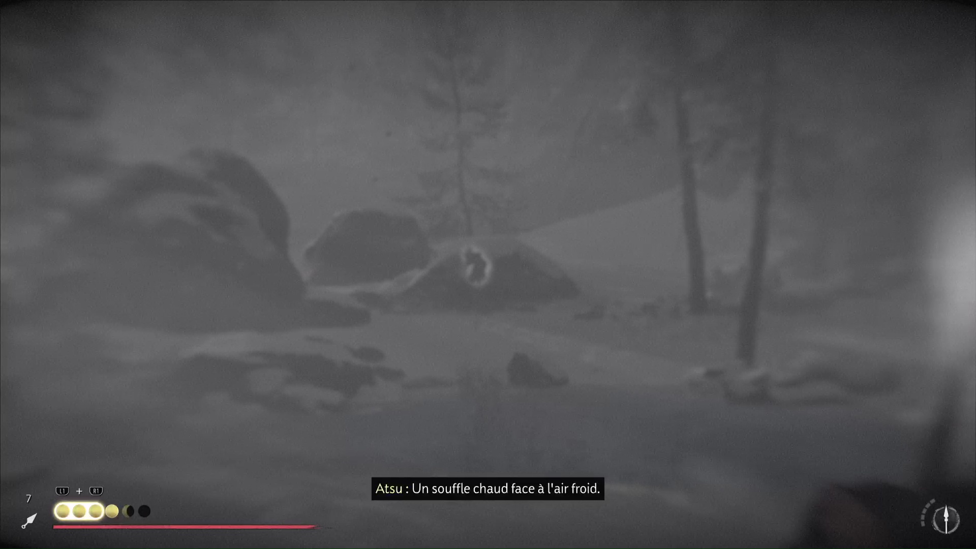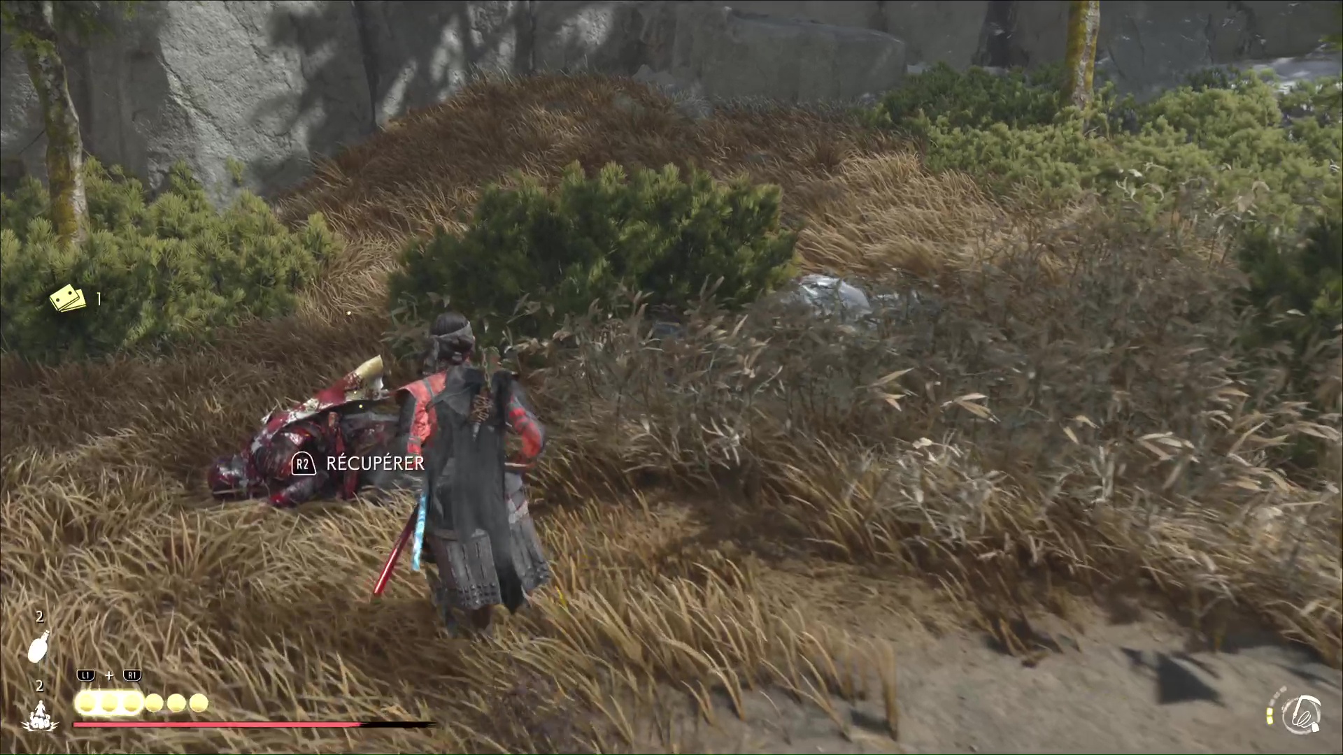 Oyuki vous propose ensuite de la trouver elle, avant de disparaître dans un écran de fumée. Utilisez de nouveau le mode Écoute pour repérer Oyuki devant vous, derrière un rocher. Une fois localisée, allez la rejoindre.
