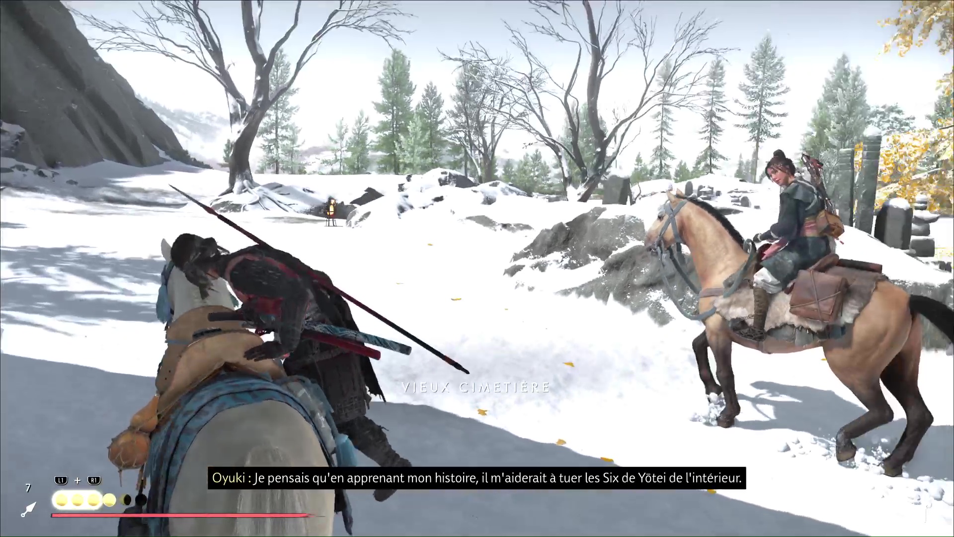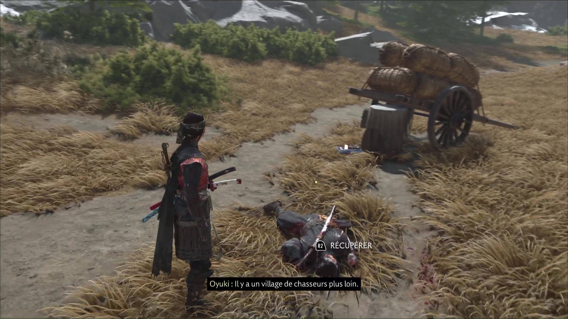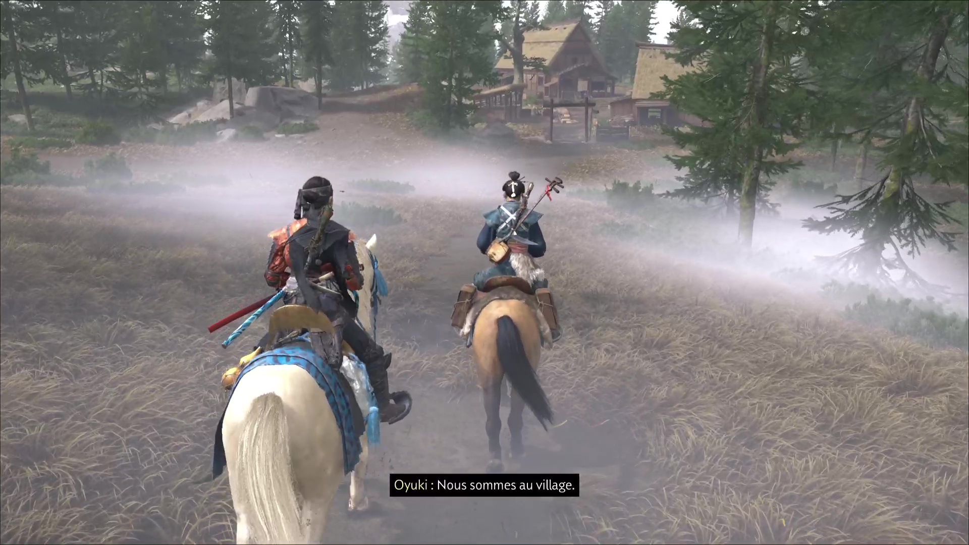 Une fois les ennemis tués, fouillez les corps pour savoir d’où ils viennent. Oyuki va ensuite avoir l’idée d’aller jeter un œil du côté d’un village de chasseurs à proximité. Prenez les chevaux et vous serez rapidement audit village.