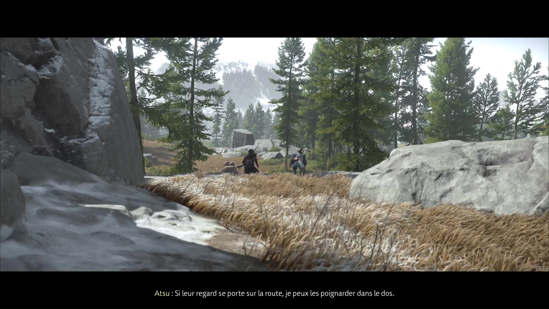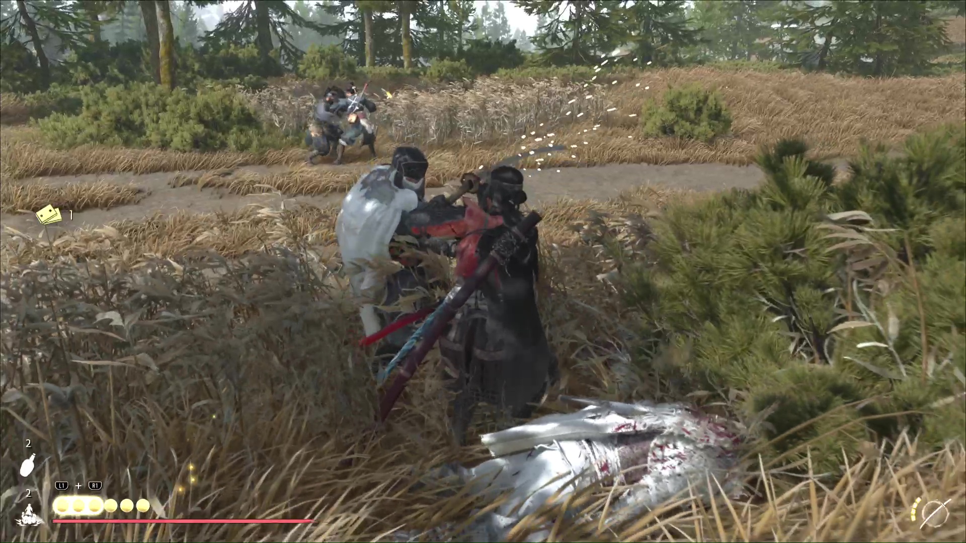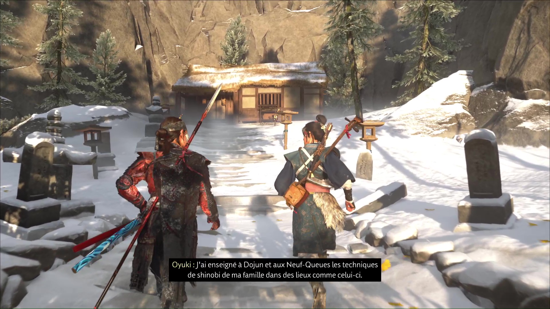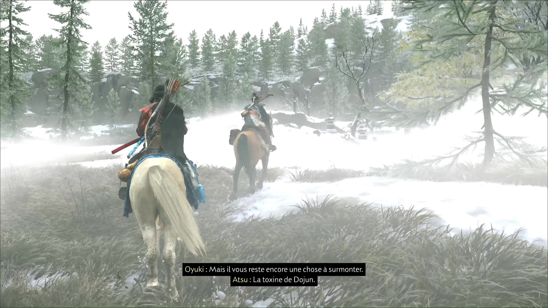 Une fois les ennemis tués, fouillez les corps pour savoir d’où ils viennent. Oyuki va ensuite avoir l’idée d’aller jeter un œil du côté d’un village de chasseurs à proximité. Prenez les chevaux et vous serez rapidement audit village.
