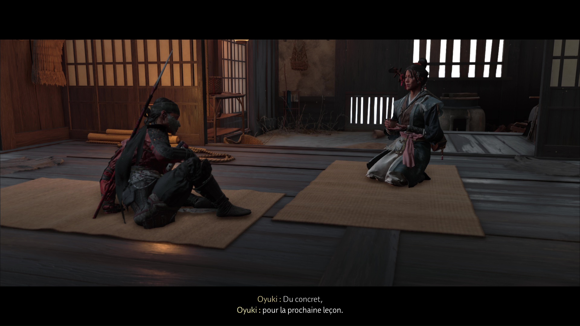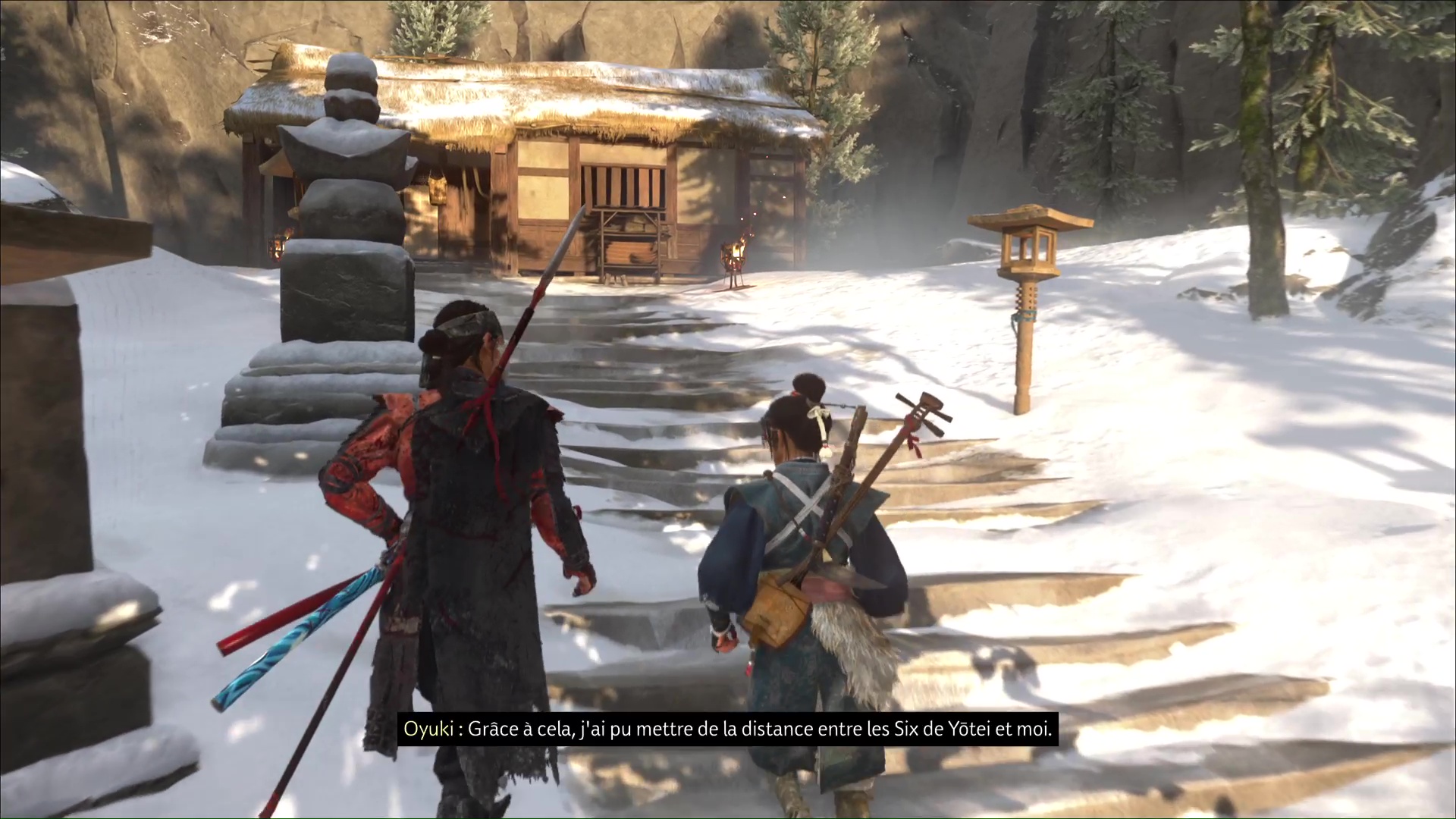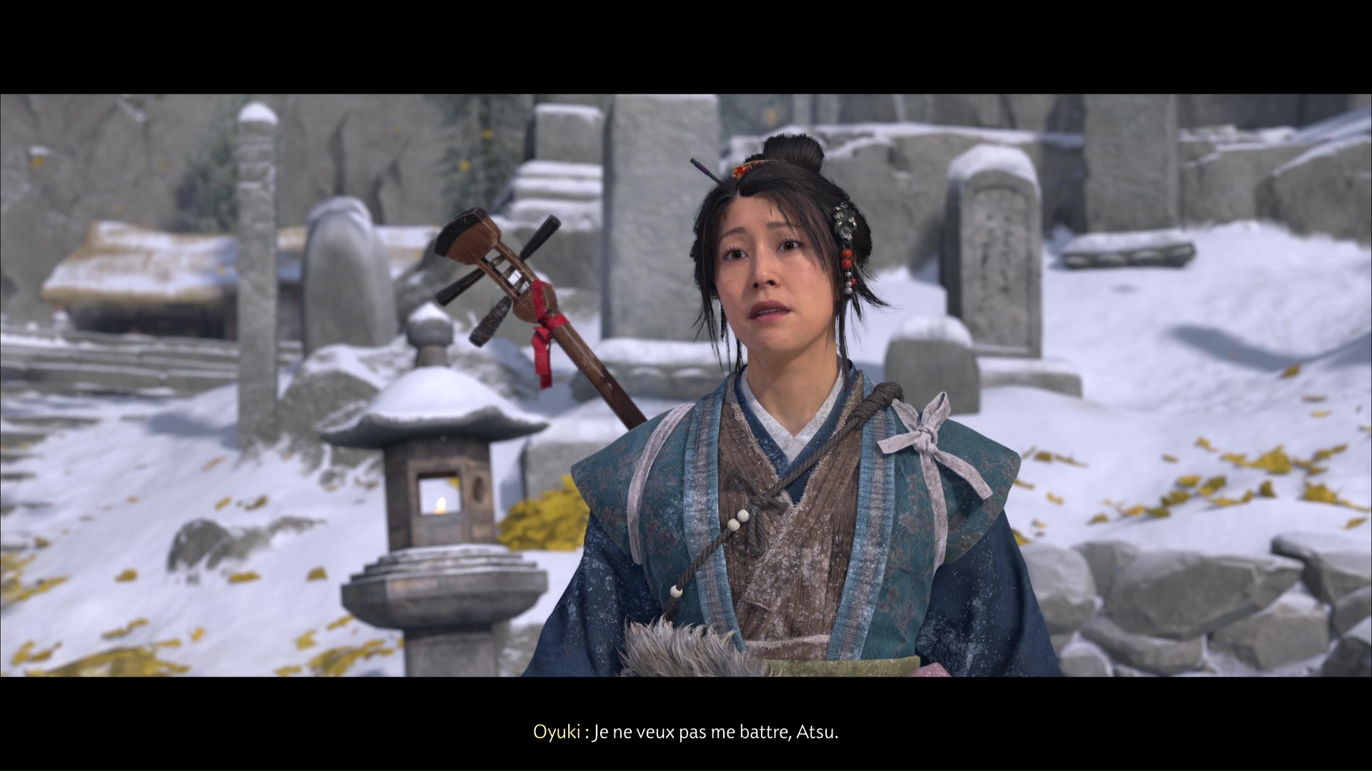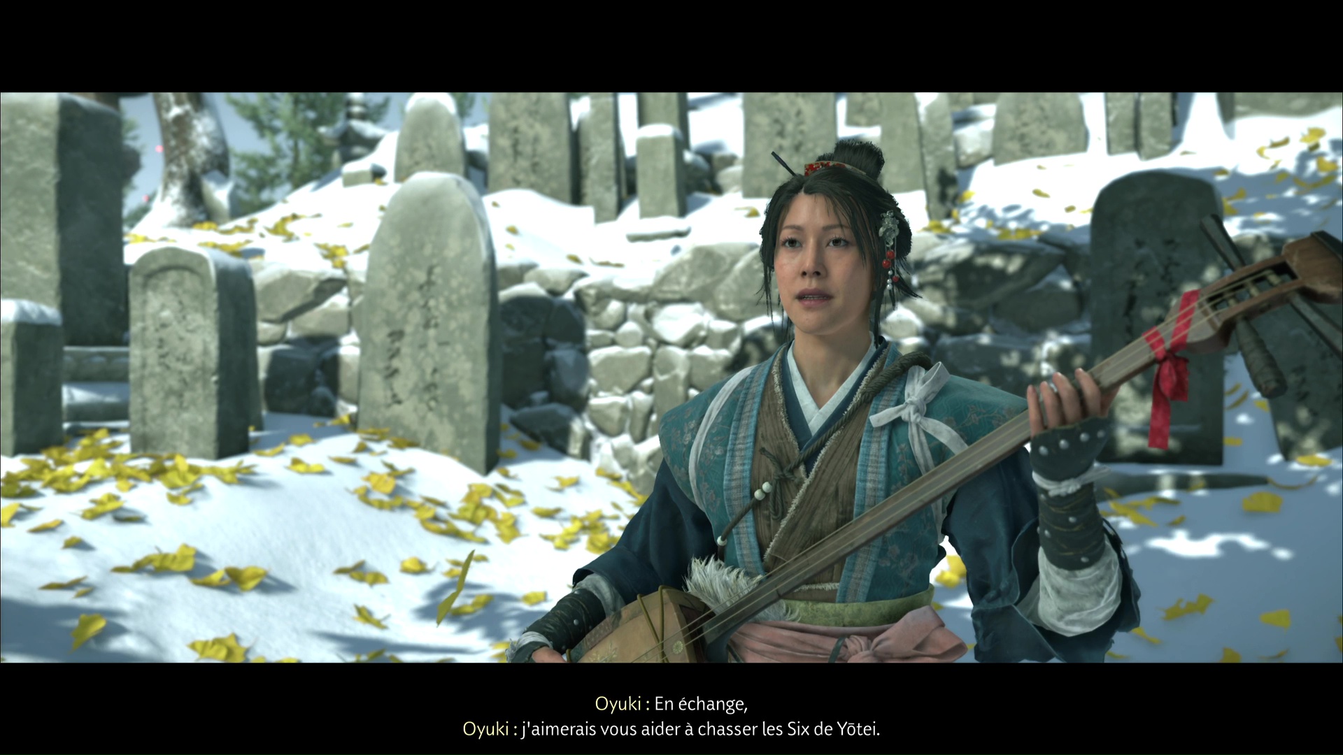 Atsu part ensuite se reposer et, à son réveil, allez retrouver Oyuki dehors. Celle-ci est en train de jouer du shamisen, et vous entamer une nouvelle conversation. Lorsque vous aurez mis hors d’état de nuire le Kitsune, Oyuki souhaite vous aider à tuer les Six de Yōtei.