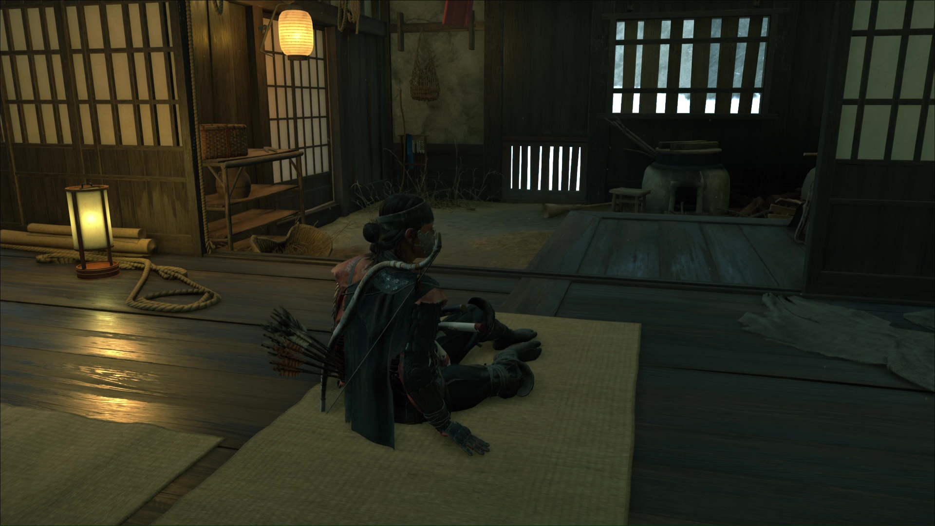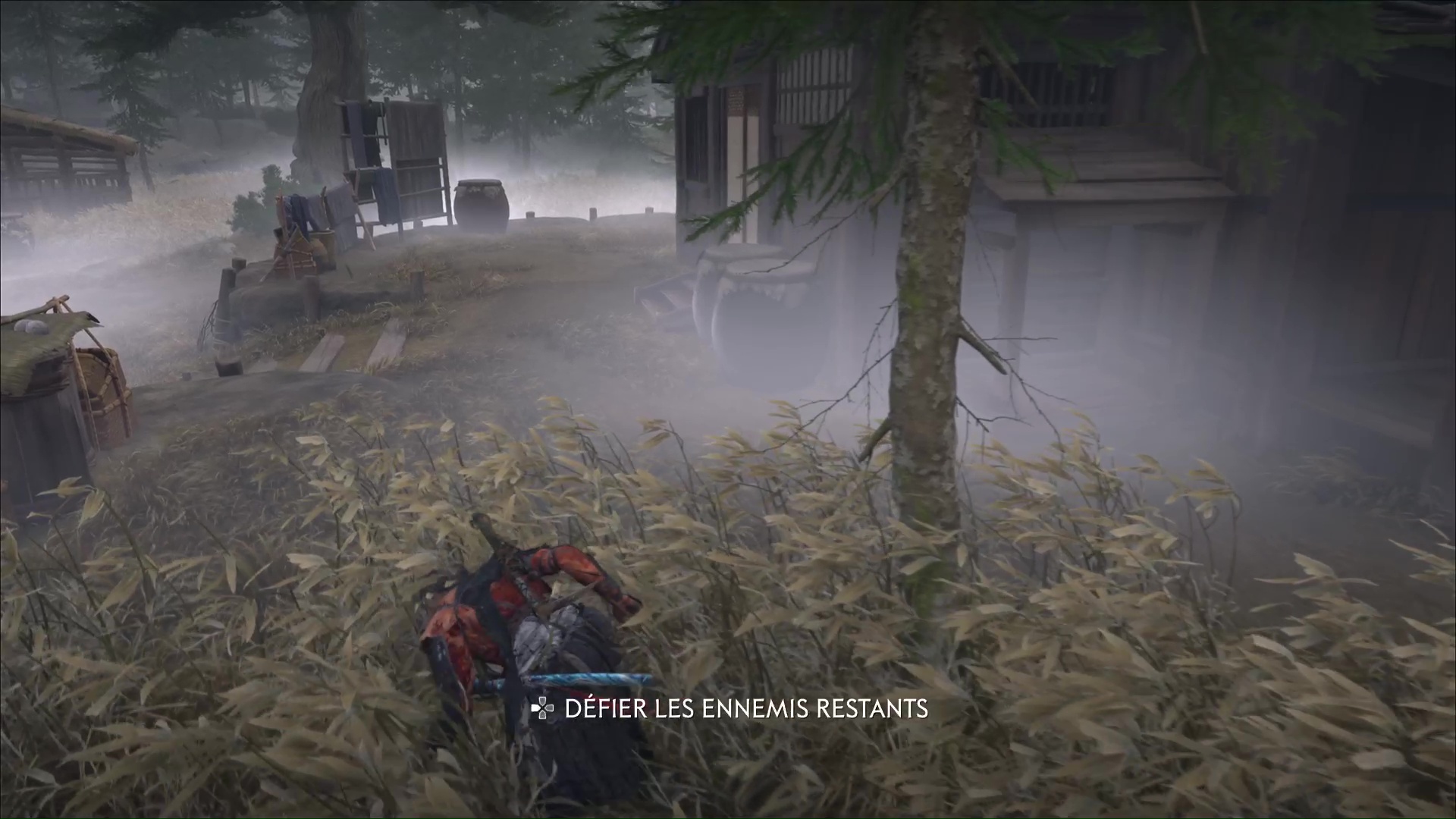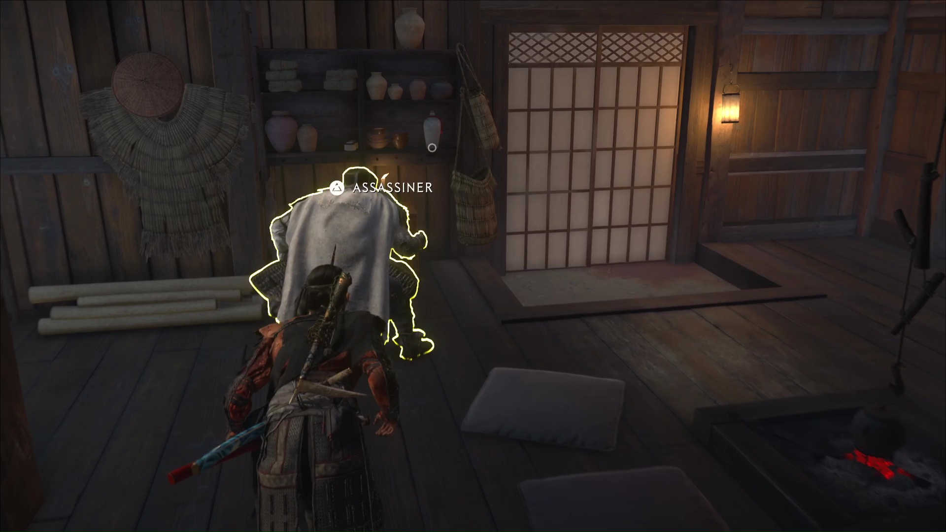 Ressortez par la porte de derrière et avancez prudemment avec le mode Écoute jusqu’à un autre Neuf-Queues caché dans des buissons. Faites ensuite le tour par la droite et montez un petit rebord pour tuer un nouveau shinobi caché dans des hautes herbes. Ensuite, approchez de la maison juste à côté et entrez par la fenêtre pour assassiner une shinobi à l’intérieur.