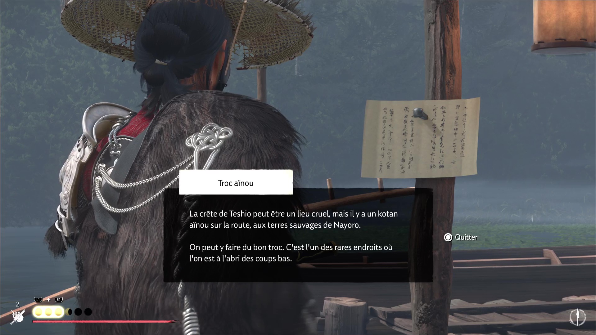Que vous ayez fait des achats ou non, en quittant le dialogue, konupas vous invitera à aller visiter Husko Kotan, le village aïnou situé dans les Terres sauvages de Nayoro.