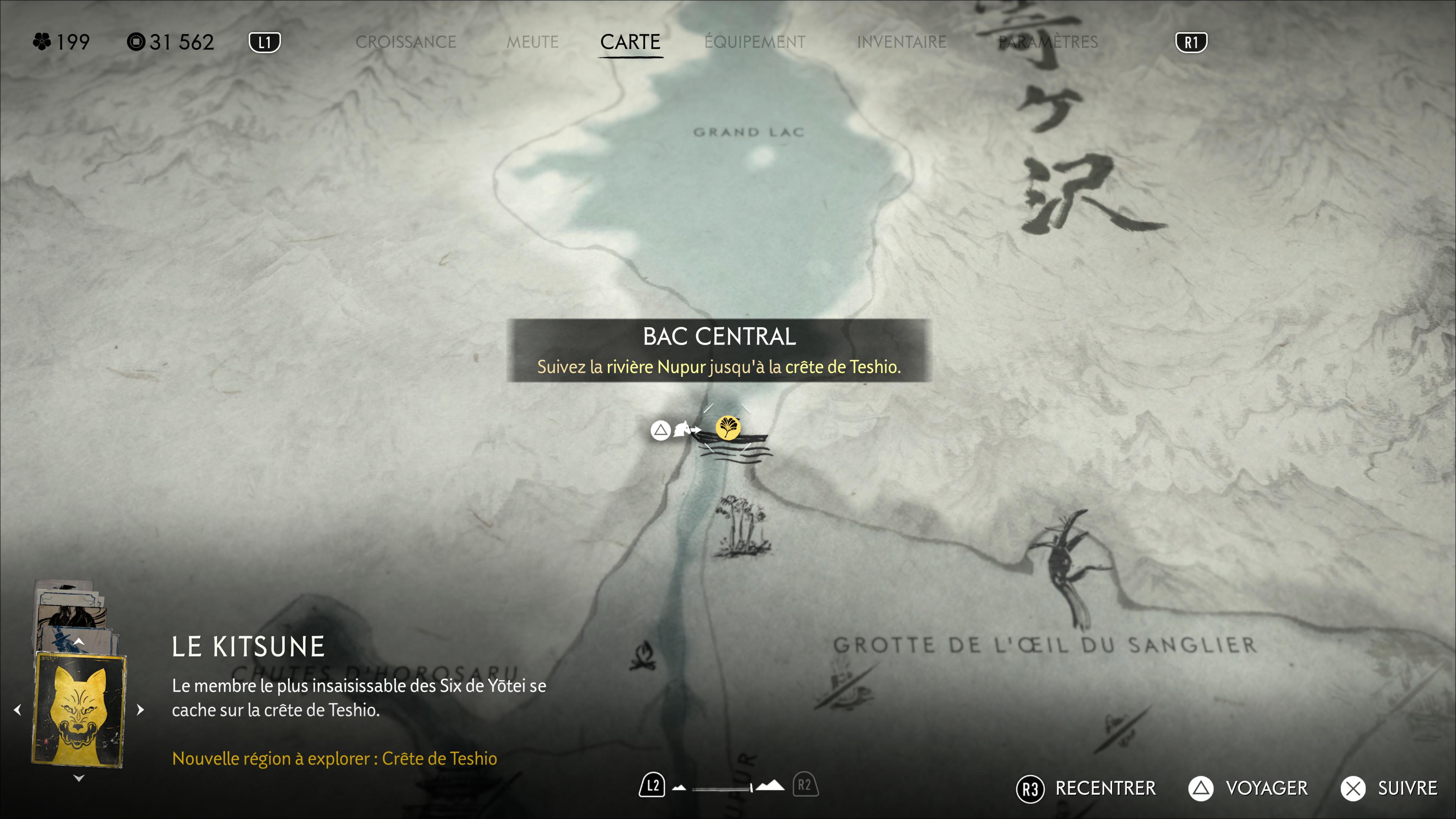 Pour valider la quête, il suffira de se rendre justement aux Terres sauvages de Nayoro et de faire quelques pas au nord-ouest pour atteindre le village Husko Kotan. Vous atteindrez naturellement la région dans le cadre de votre traque du Kitsune. Il faudra traverser le Grand Lac depuis le Bac central à l’extrême-nord des Monts Tokachi.