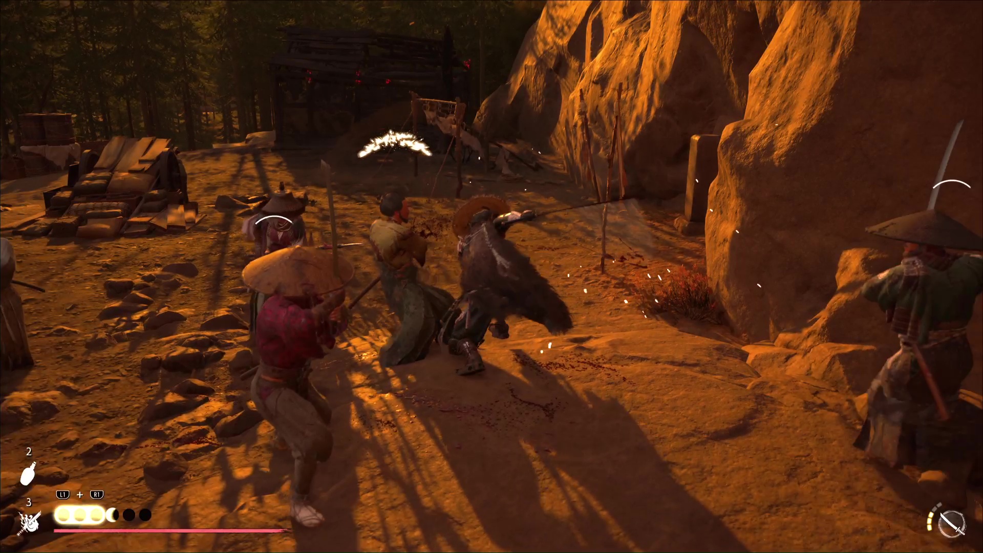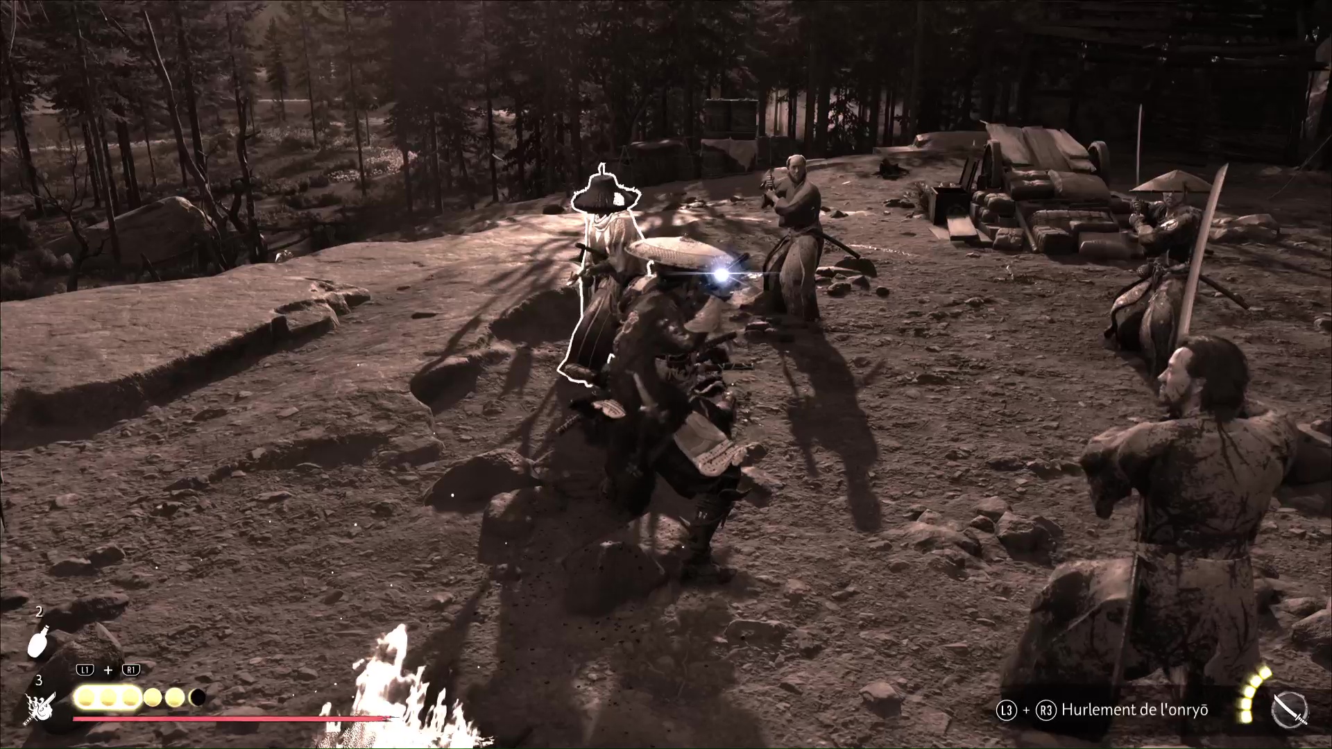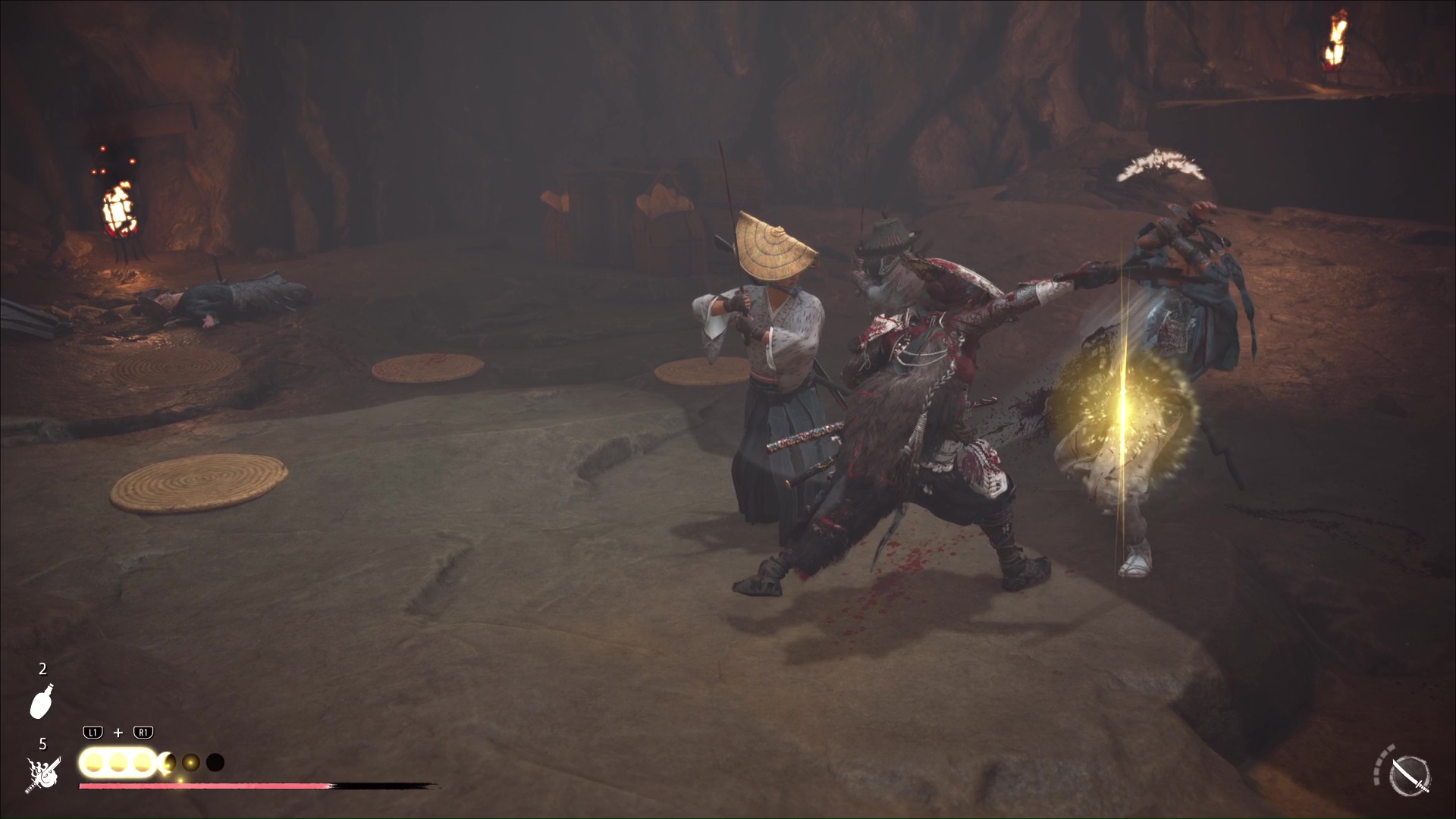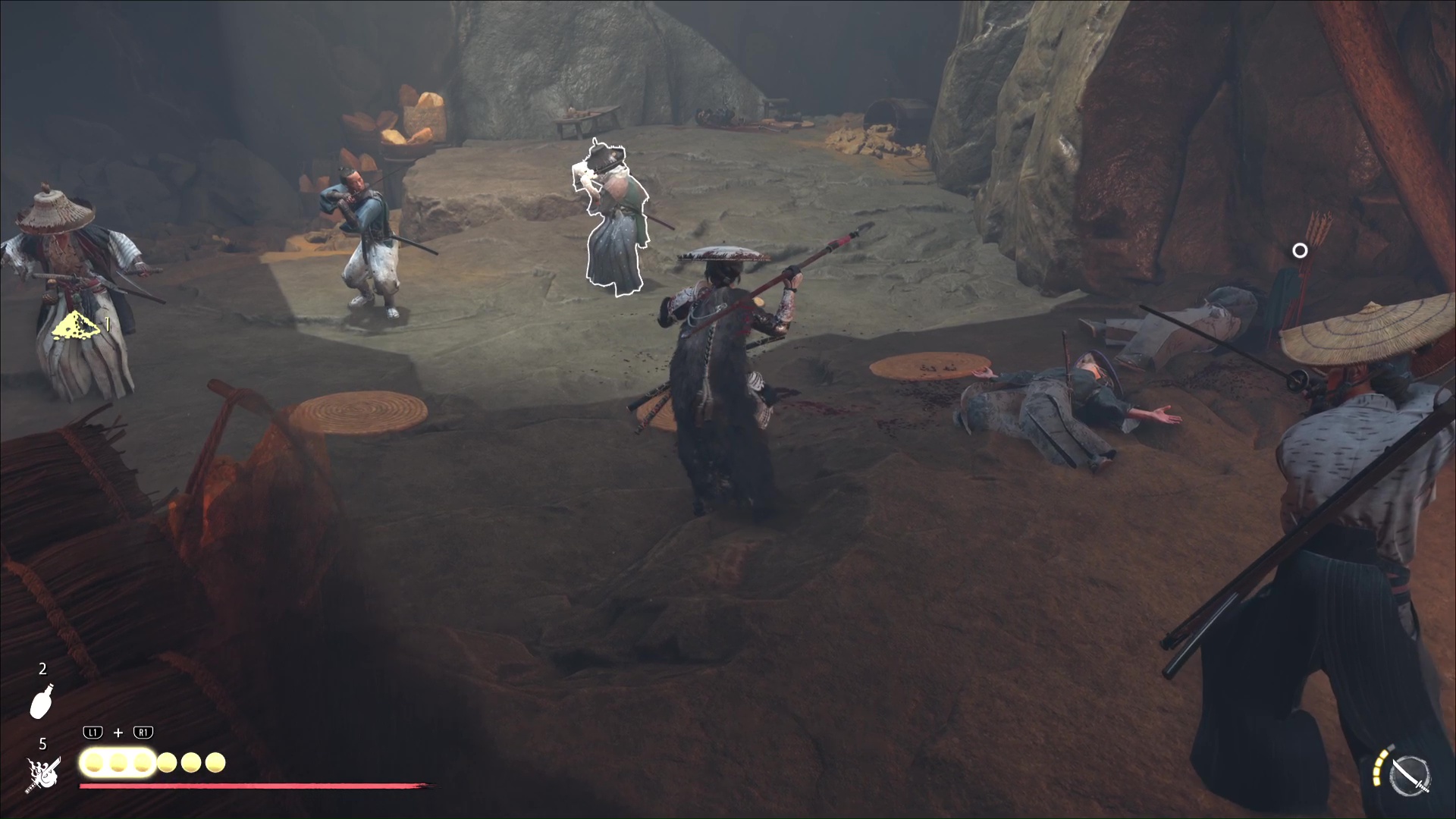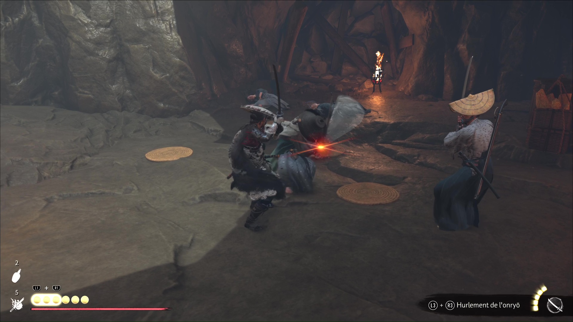 Vous allez logiquement attirer la colère des ronin, et un combat se lance aussitôt. Pas moins de sept ennemis sont à tuer, dont un archer. Une fois tout le monde tué, vous pouvez enquêter dans la caverne.