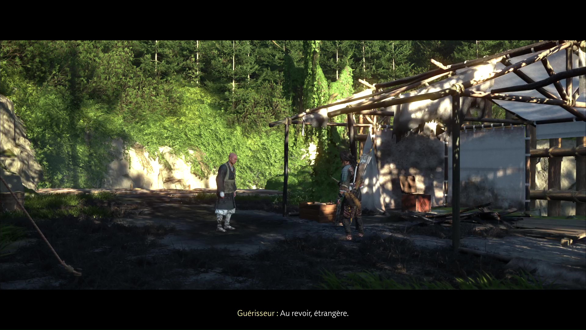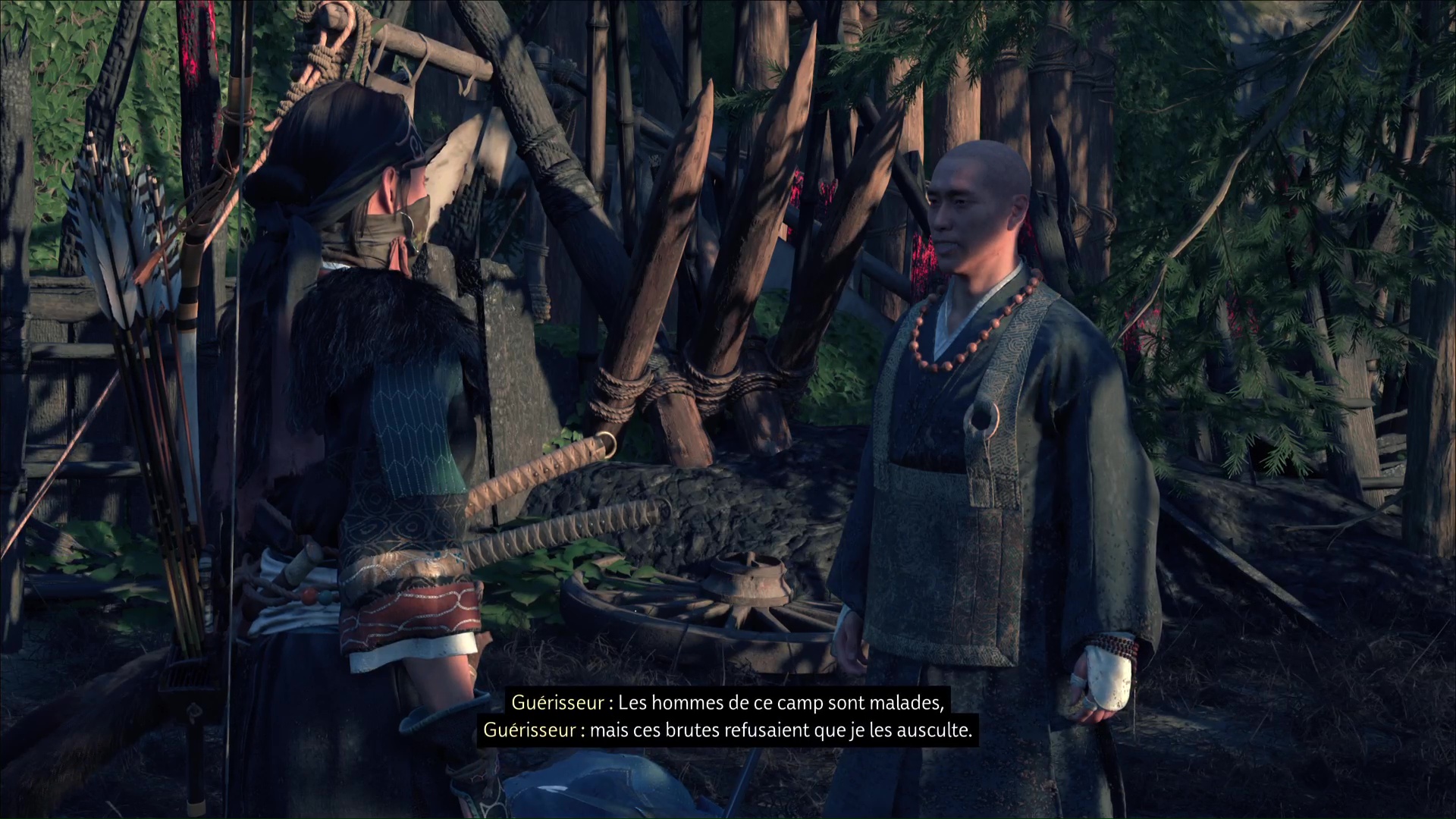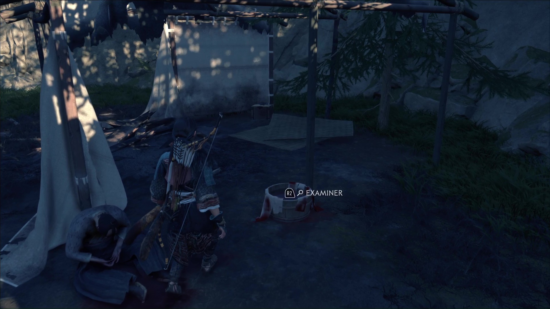 Jetez un œil à la bassine remplie de bandages ensanglantés. Terminez par le petit coffre juste à côté, où le guérisseur vous amènera si vous ne l’avez pas déjà vu. À l’intérieur, vous trouverez un message lié à Kanemori, potentielle source des problèmes rencontrés dans ce camp.