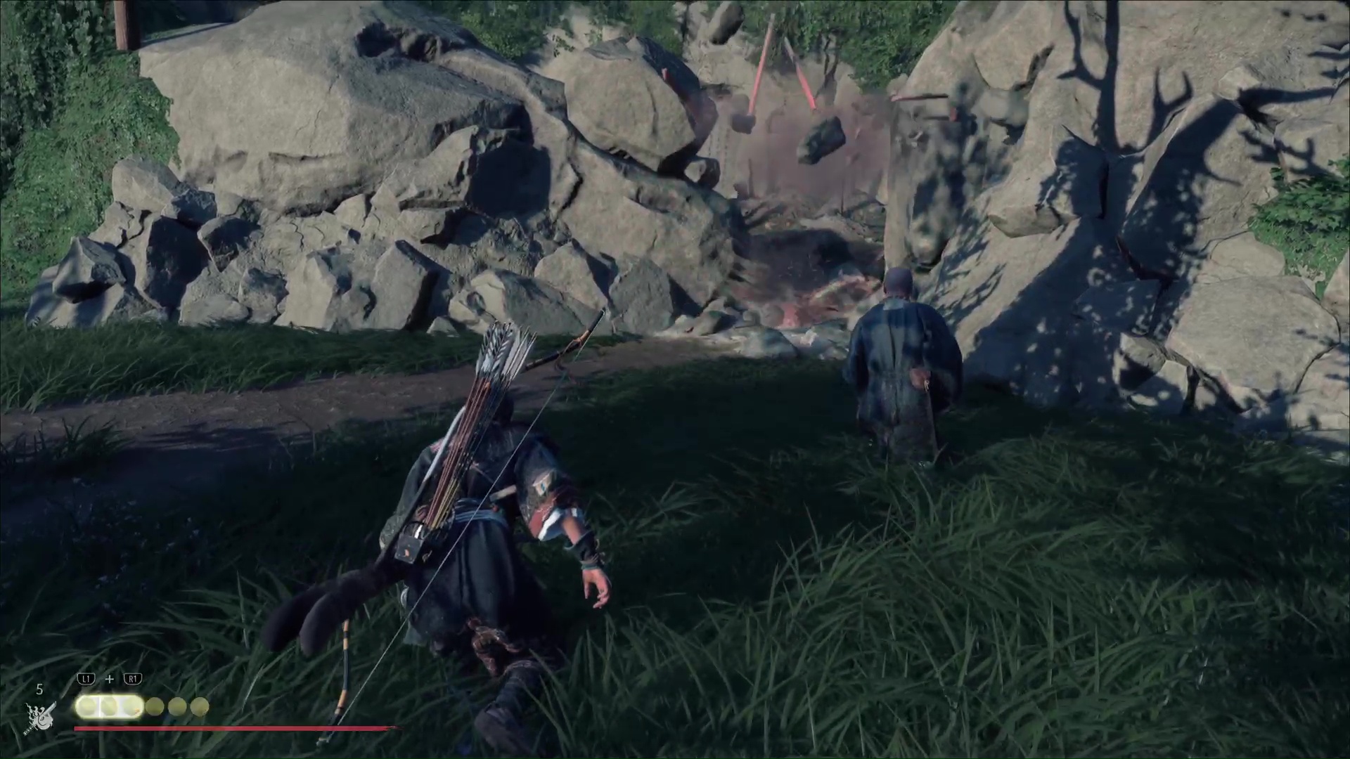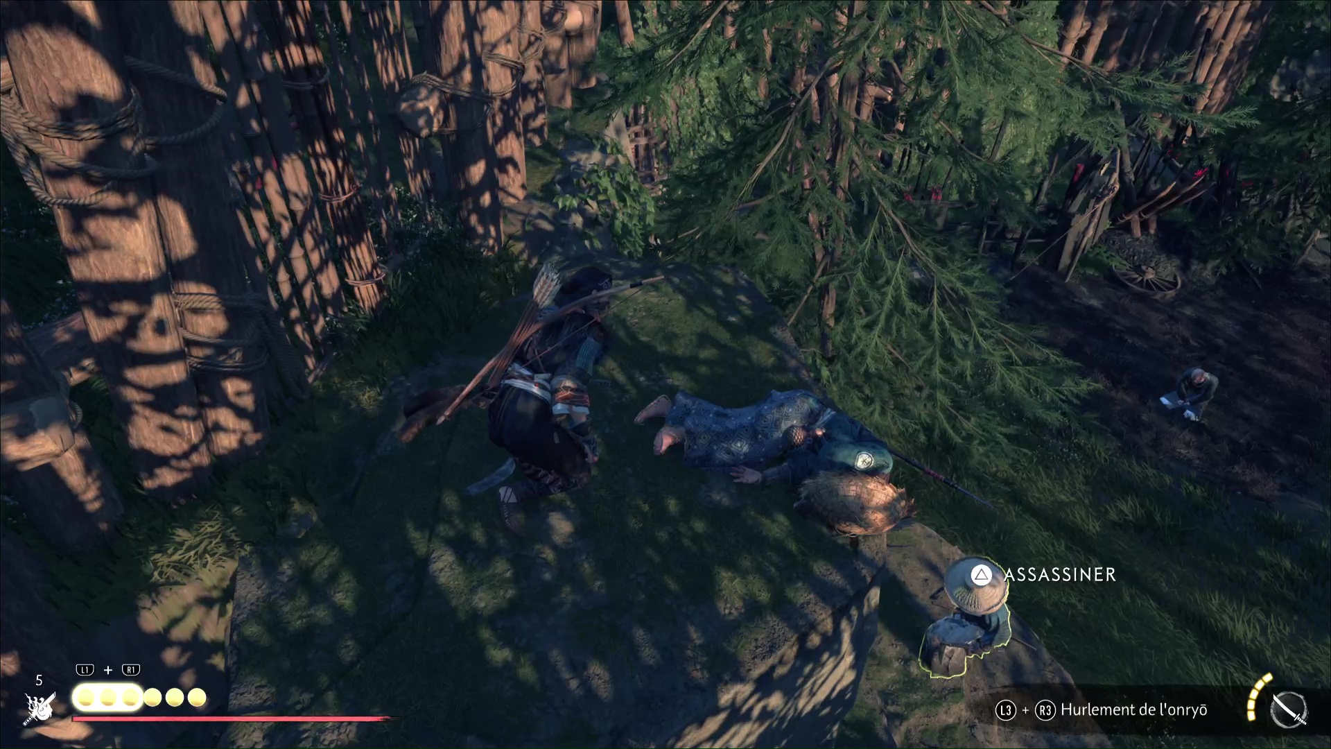 Profitez de votre avantage dû à votre position pour tirer à l’arc sur deux autres ronin, avant d’assassiner celui qui reste. Si tout se passe bien, vous n’aurez même pas à sortir le katana.