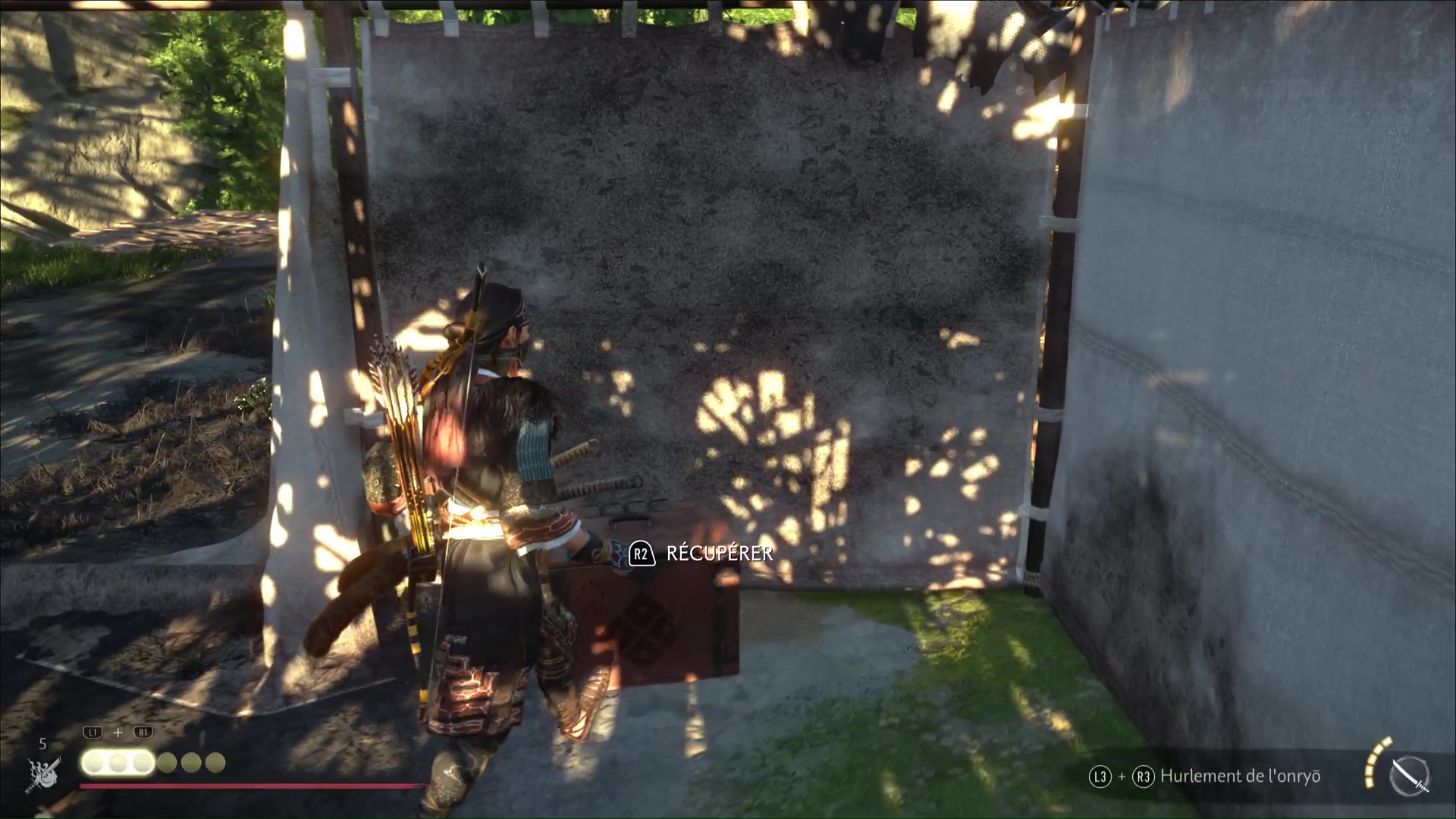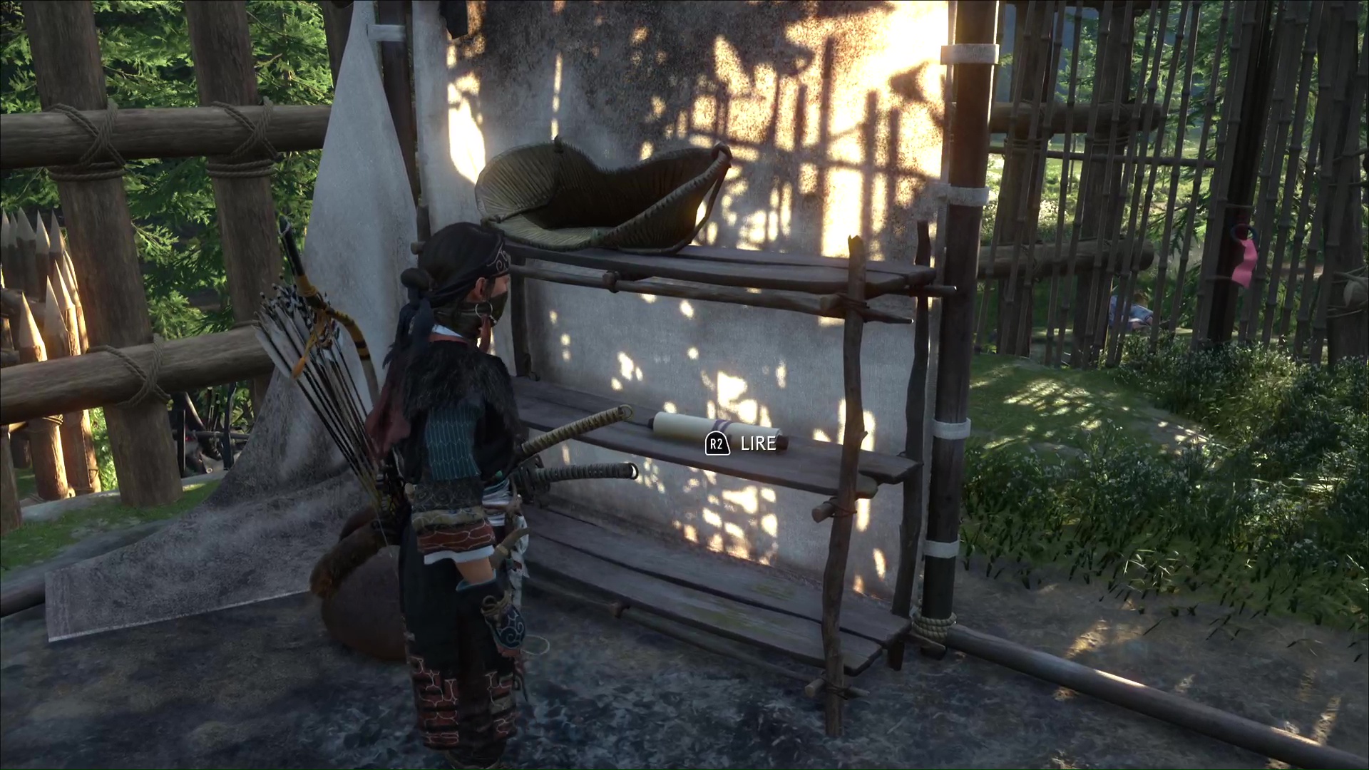 Reculez et, une fois la brèche créée, allez explorer la suite du camp. Lisez le message sur le mur pour en apprendre davantage sur ce qu’ont fait les hommes de Kanemori.