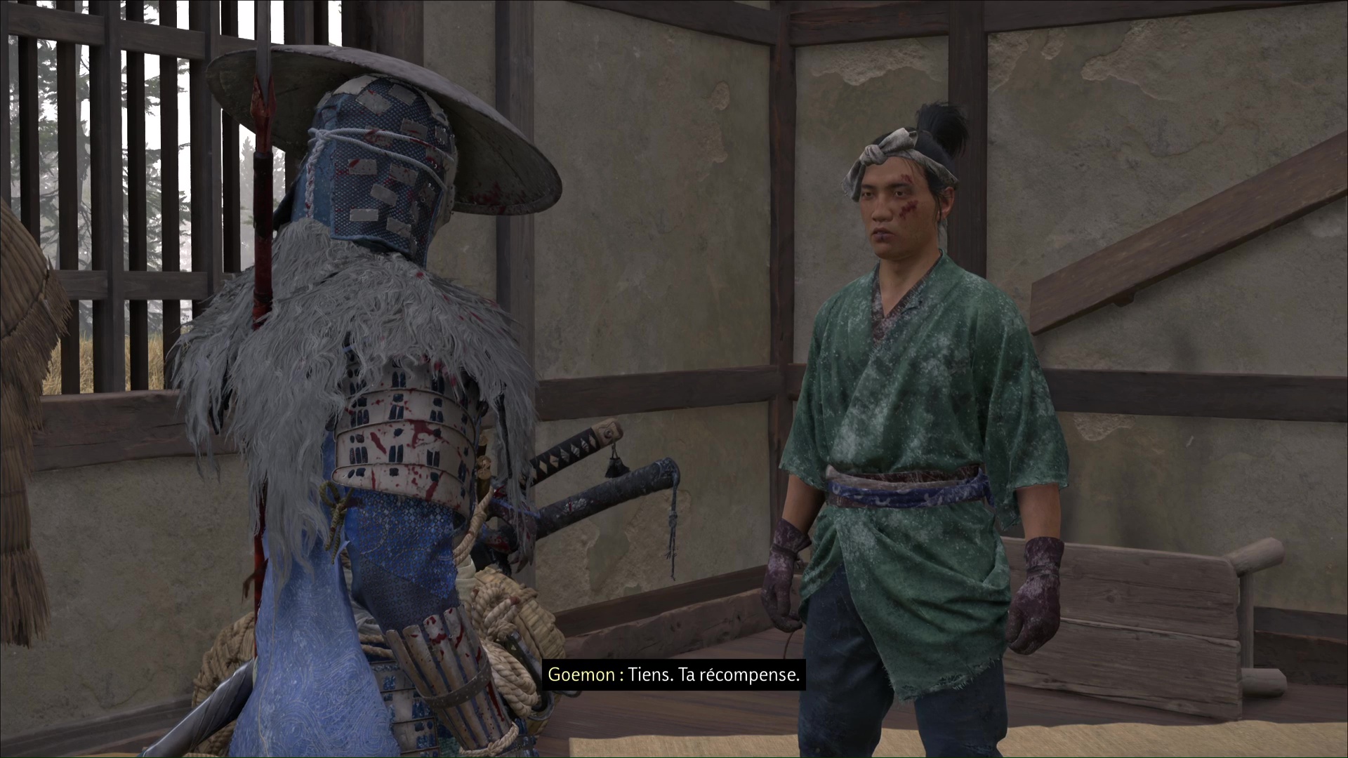 Détachez-le et il avoue logiquement avoir commis l’erreur de s’installer dans ce comptoir suspicieux. Il vous quitte en vous donnant la récompense de 450 pièces et 4 aciers shinobi.