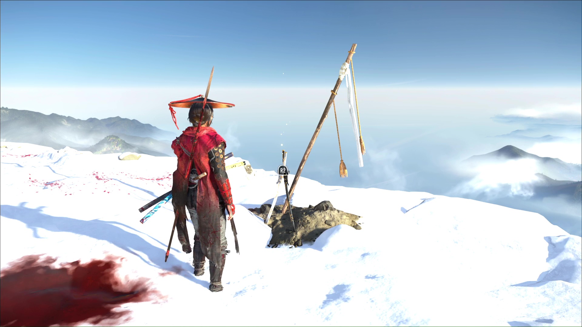 Takezo vous attend, comme il l’a dit, au sommet du monde. Et par cette expression, il désigne bien sûr le Mont Yōtei. Pour y accéder, il faut d’abord passer par le Sanctuaire du Mont Yotei. On vous détaille l’ascension dans l’article dédié.