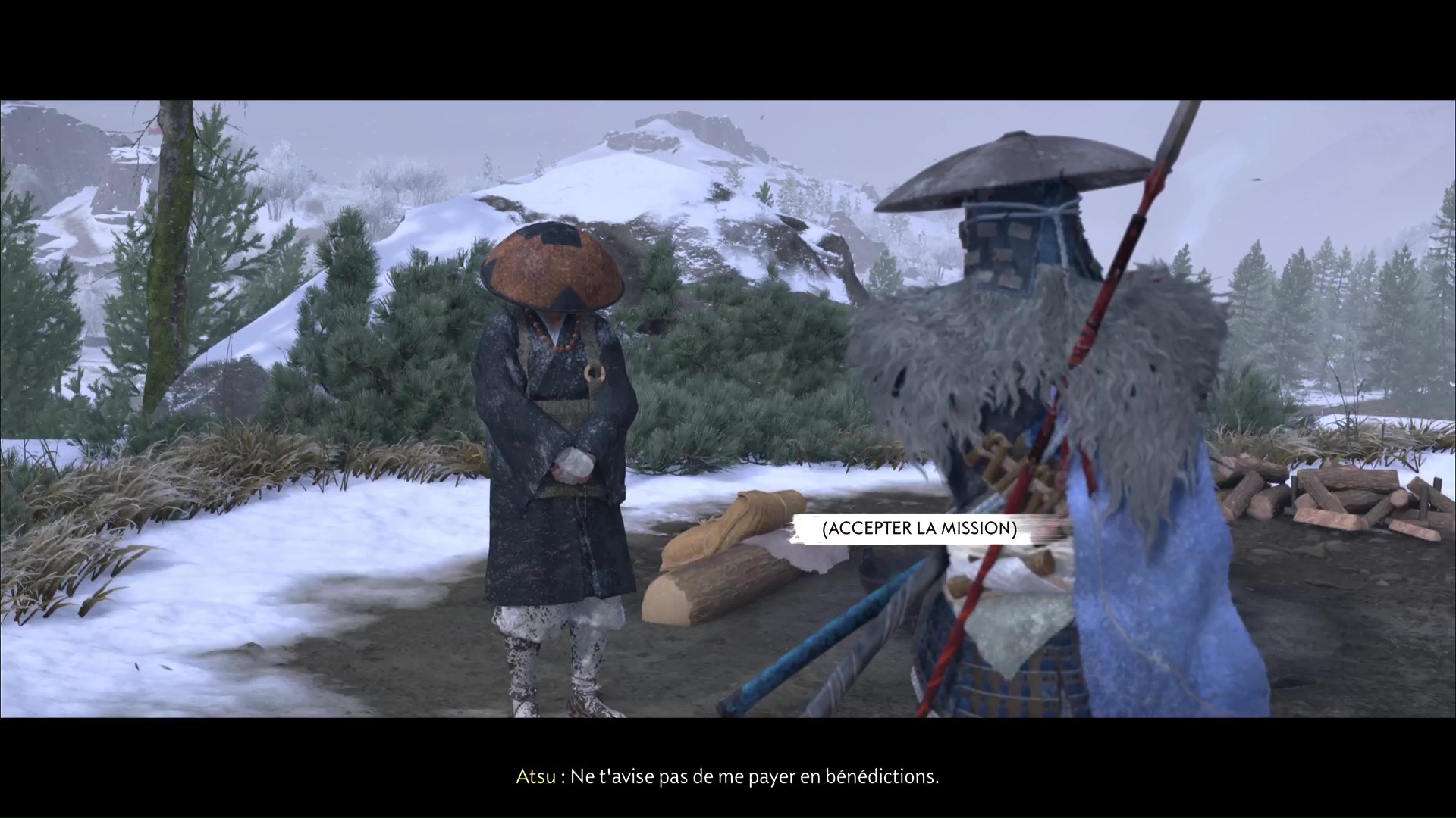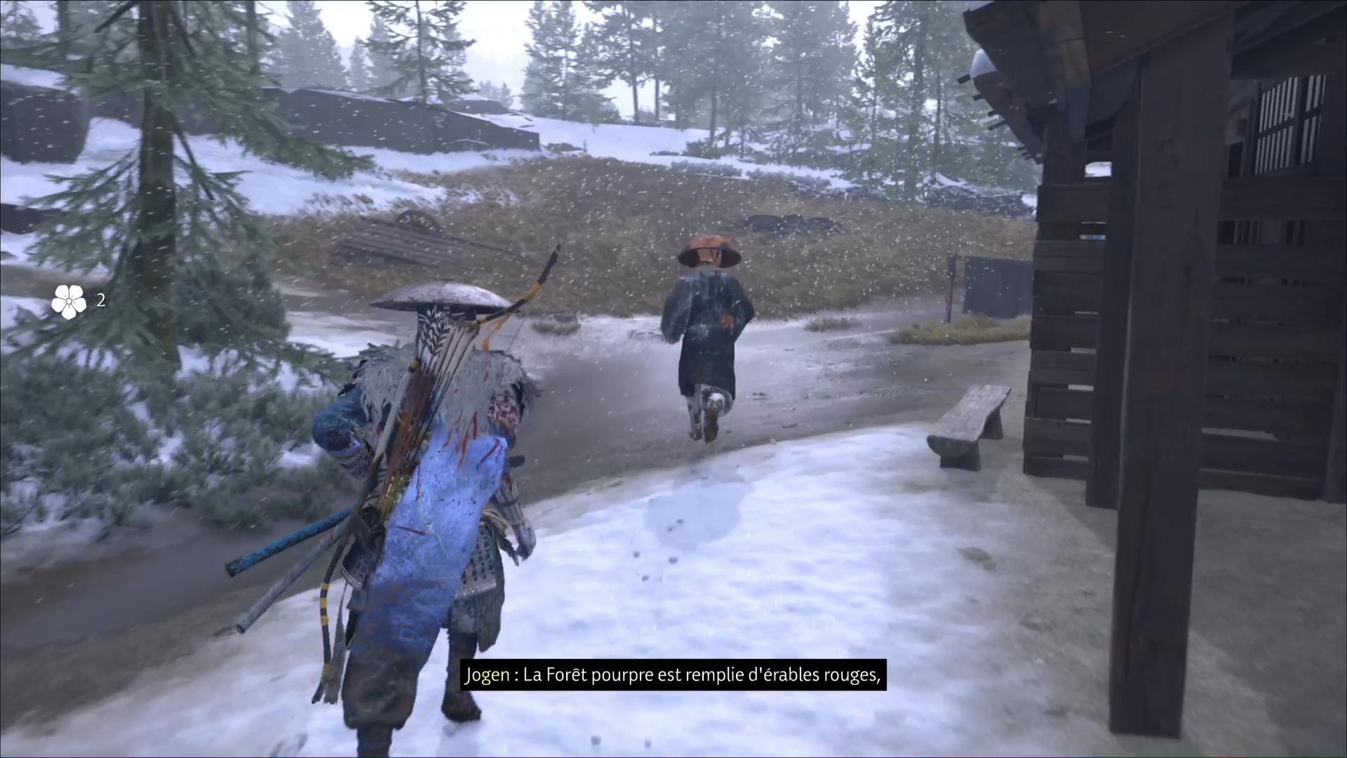Il s’appelle Jogen et il cherche une personne se faisant passer pour un moine, alors qu’il sert les Neuf-Queues. Jogen propose alors à Atsu de le protéger le temps qu’il mette la main sur cet imposteur. Acceptez et suivez Jogen, direction la cabane où se terre le menteur.