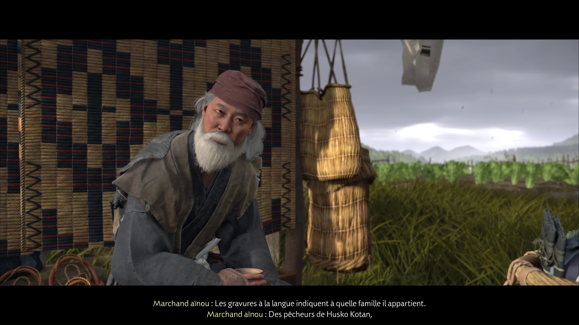 Allez donc voir le marchand qui a son étal à l’Auberge de l’ombre de Yōtei. Il vous indiquera que les pêcheurs de Husko Kotan sauront vous en dire plus.