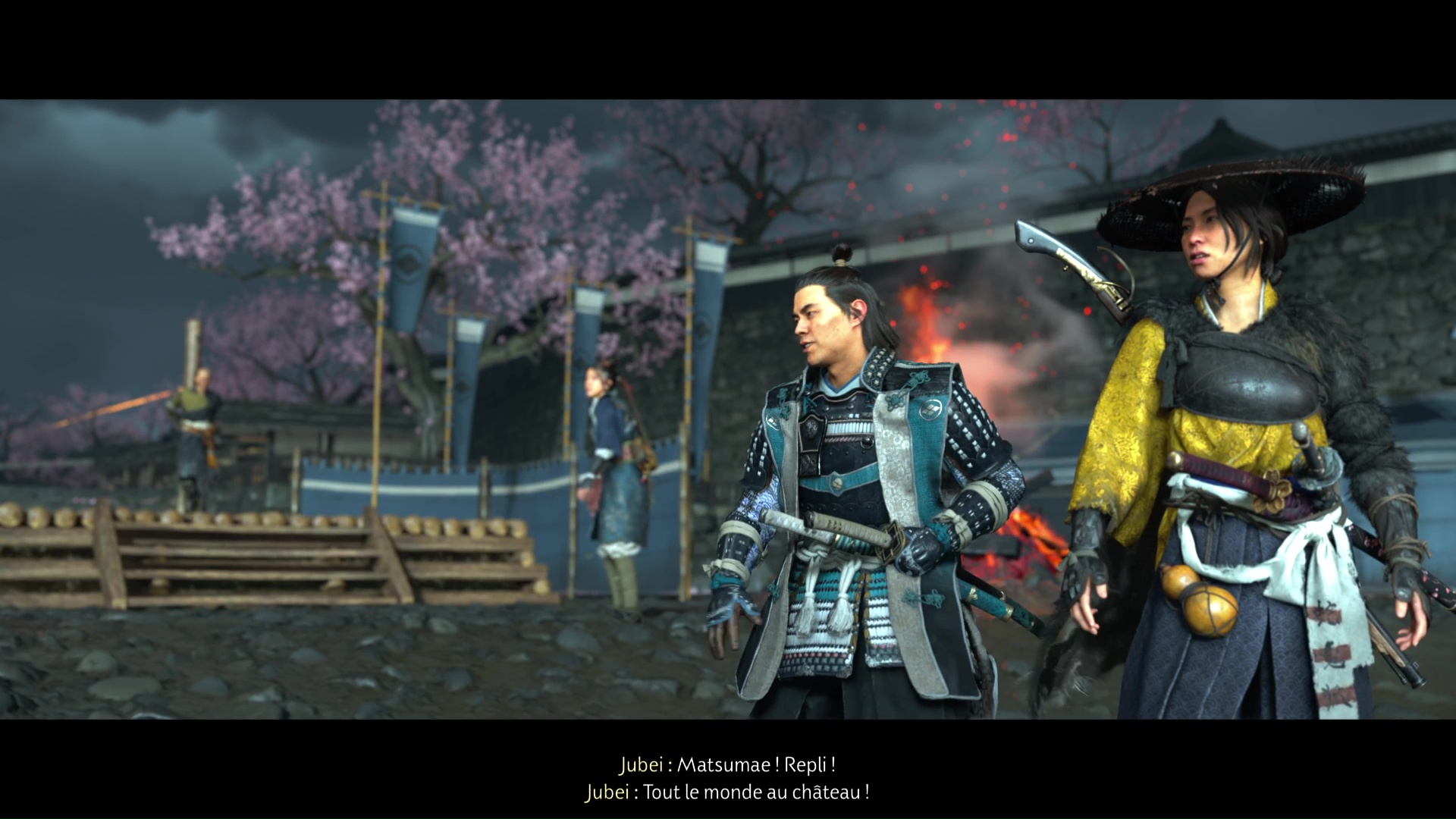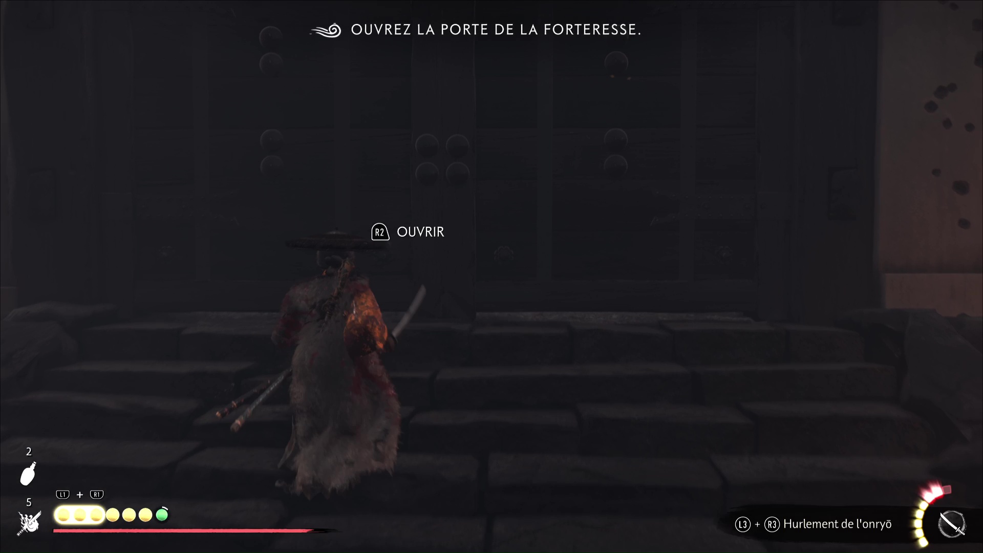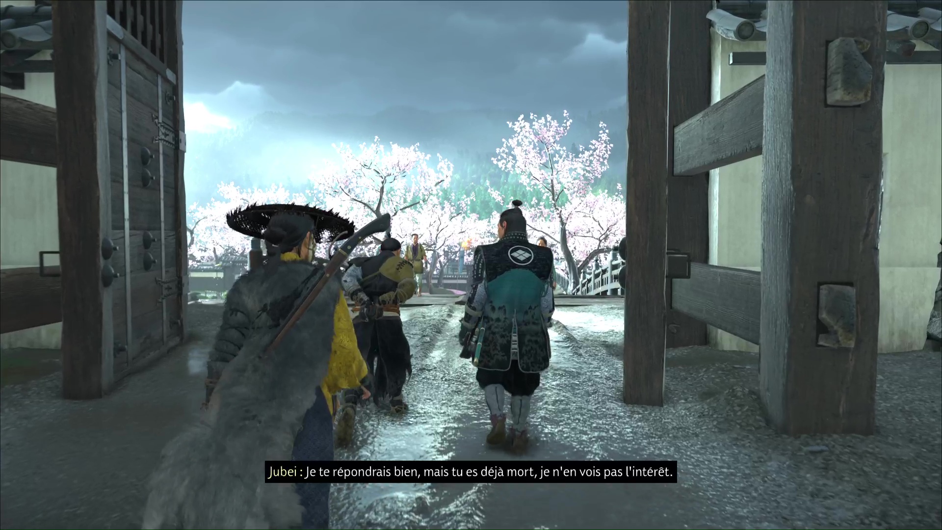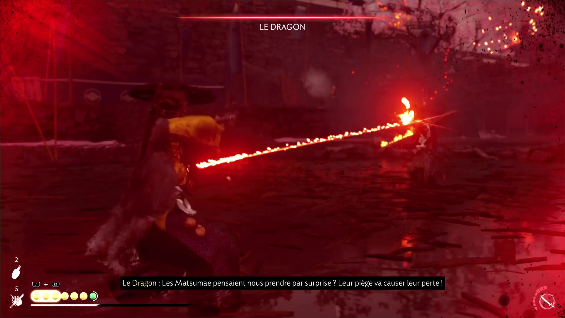 Vous finirez par atteindre la cour, et là le combat est obligatoire. N’oubliez pas votre posture du fantôme, si vous avez la jauge remplie, et profitez du fait que d’autres Matsumae combattent à vos côtés.