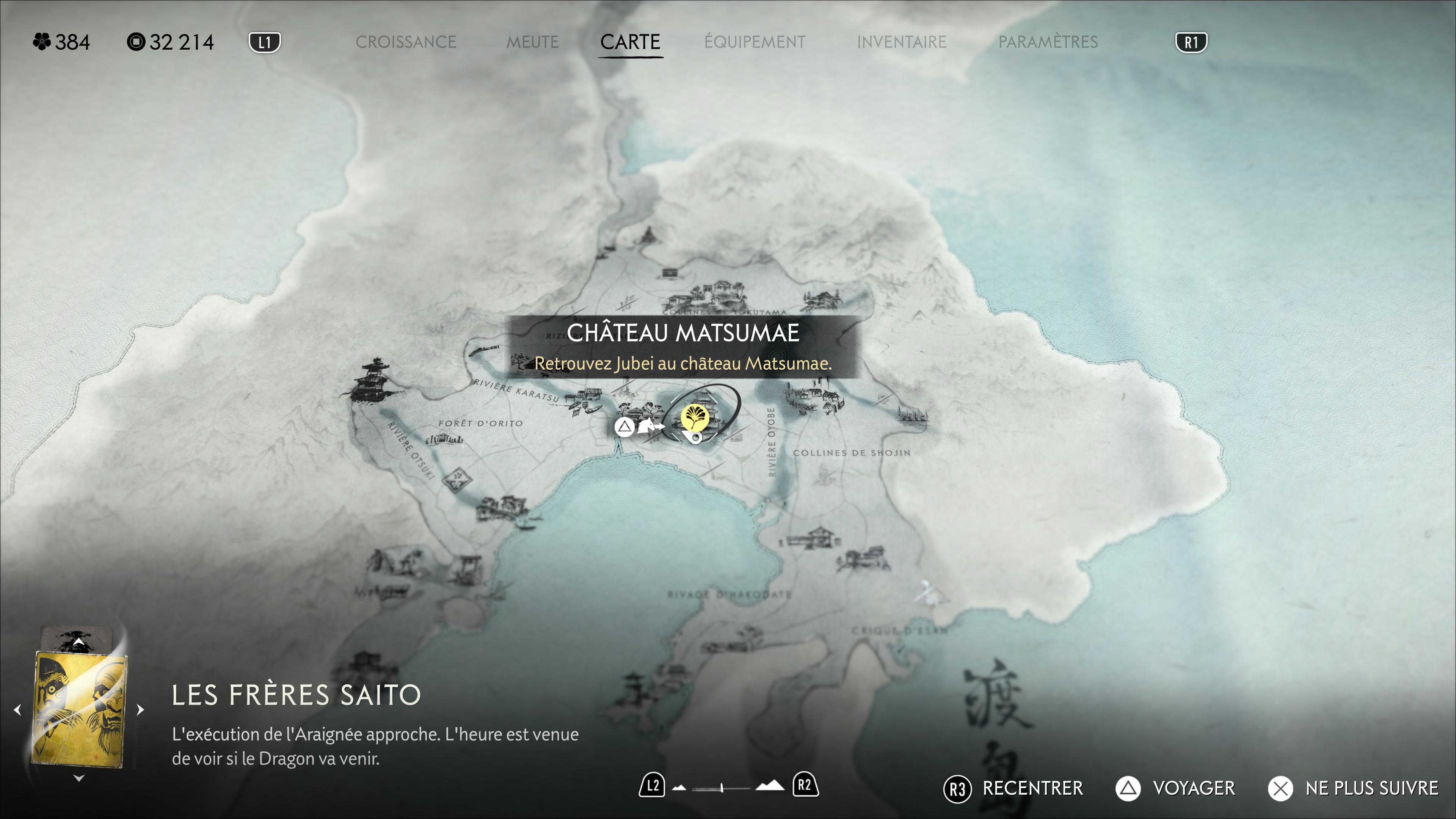 Après les bons moments passés en ayant rassemblé la « Meute de loups », la tension monte au sujet du plan impliquant l’Araignée et le Dragon. Retournez au donjon du château Matsumae pour parler à Jubei.