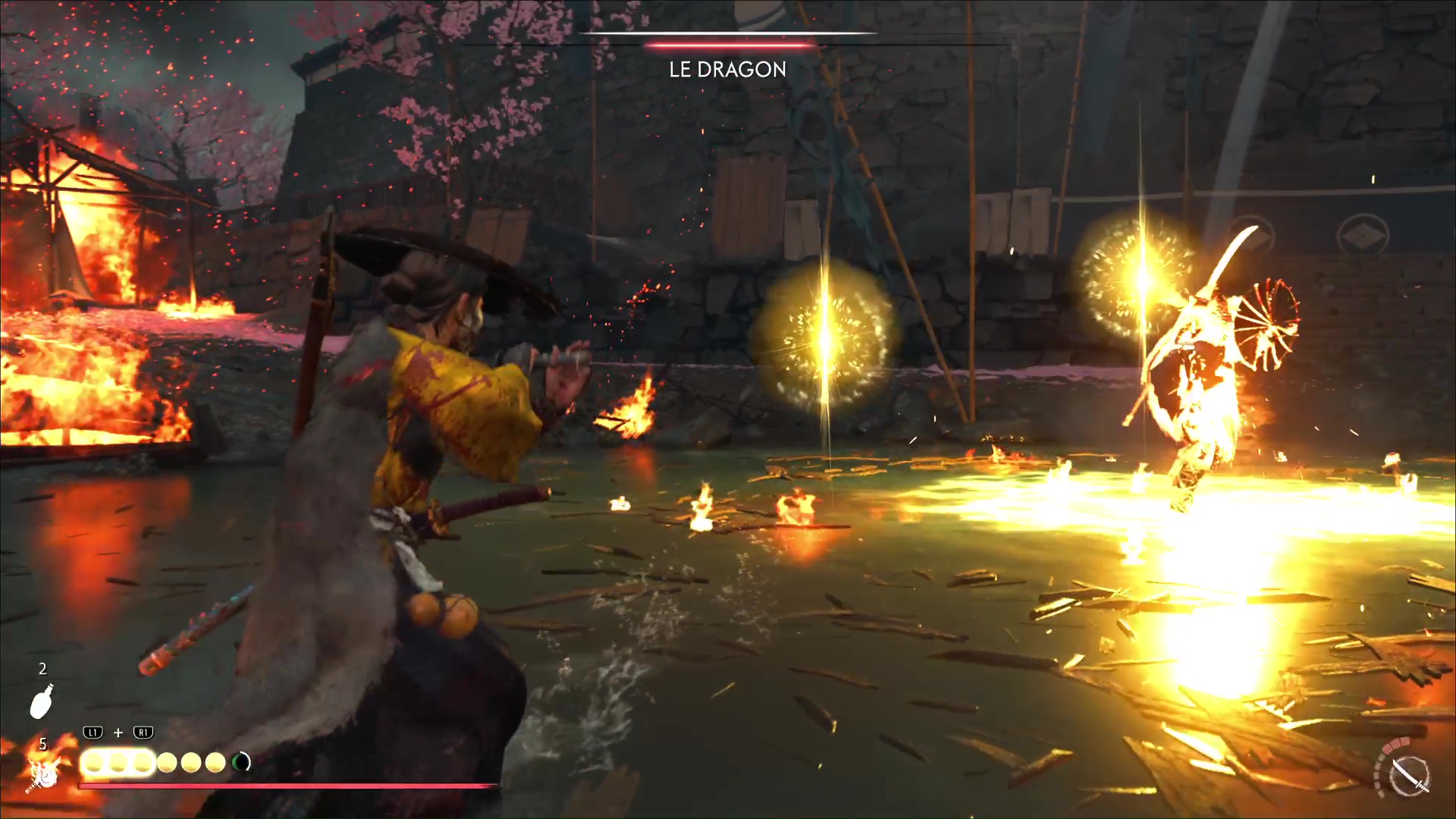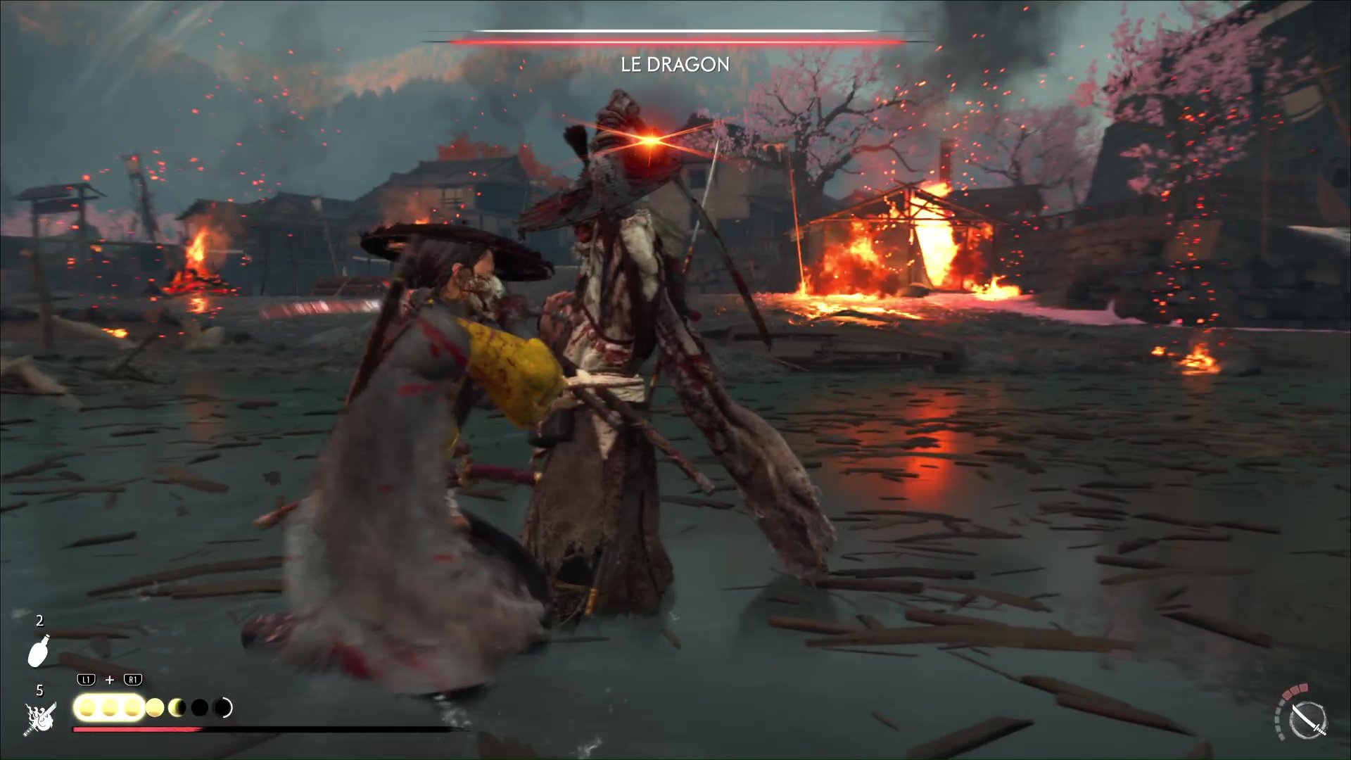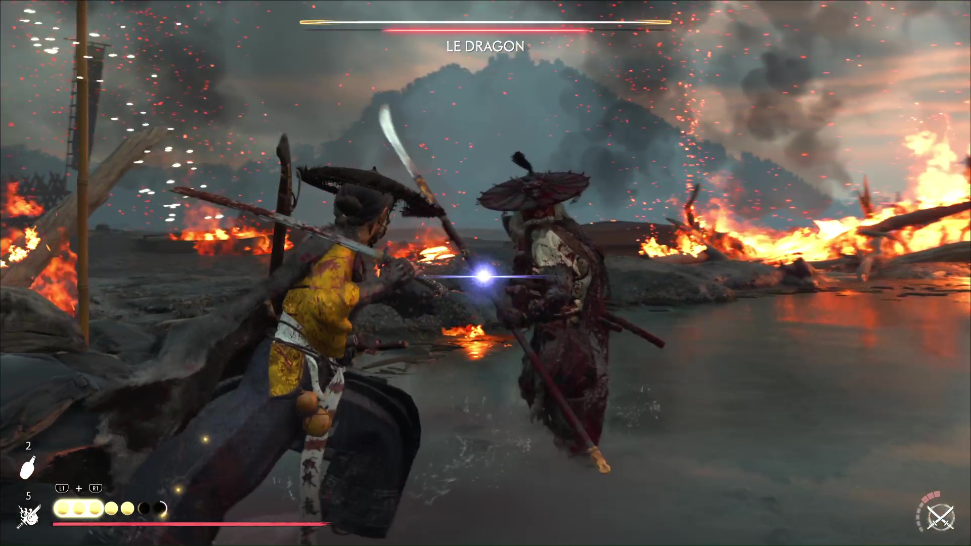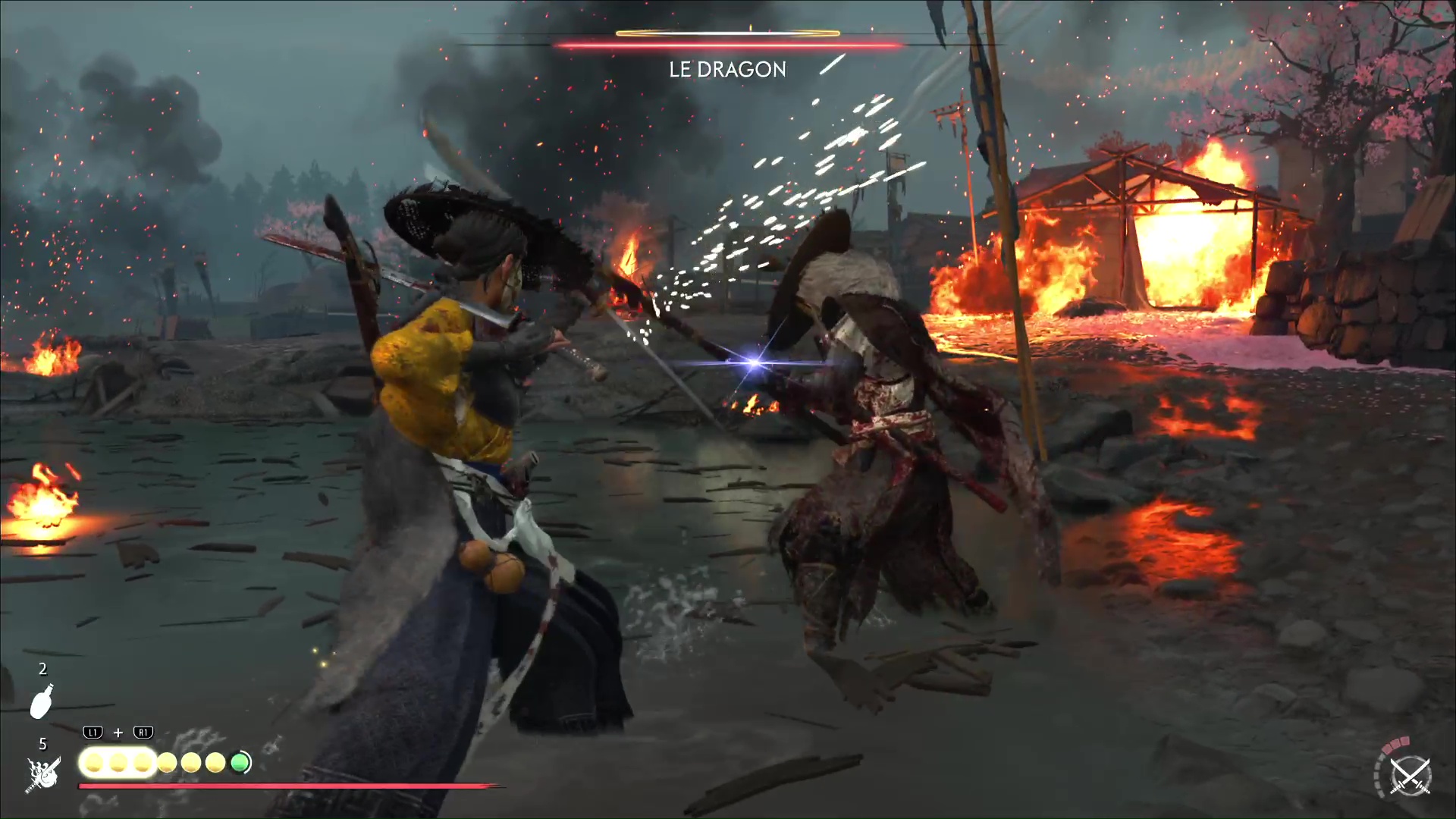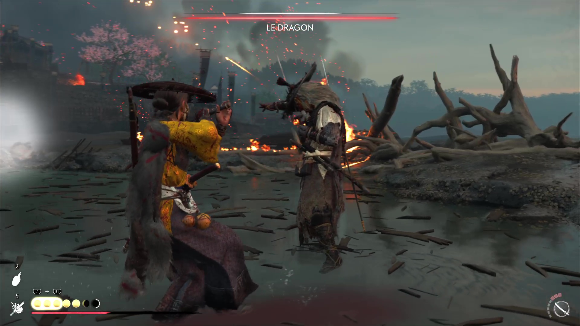 À un moment, le Dragon rangera son sabre pour sortir une lance. De plus, il commencera à utiliser lui aussi une arme à feu, symbolisé par une lumière rouge. Sortez vos doubles katanas et faites attention aux nouvelles attaques bleues que le Dragon lancera.
