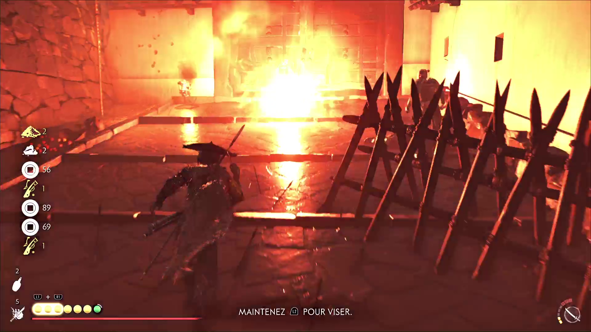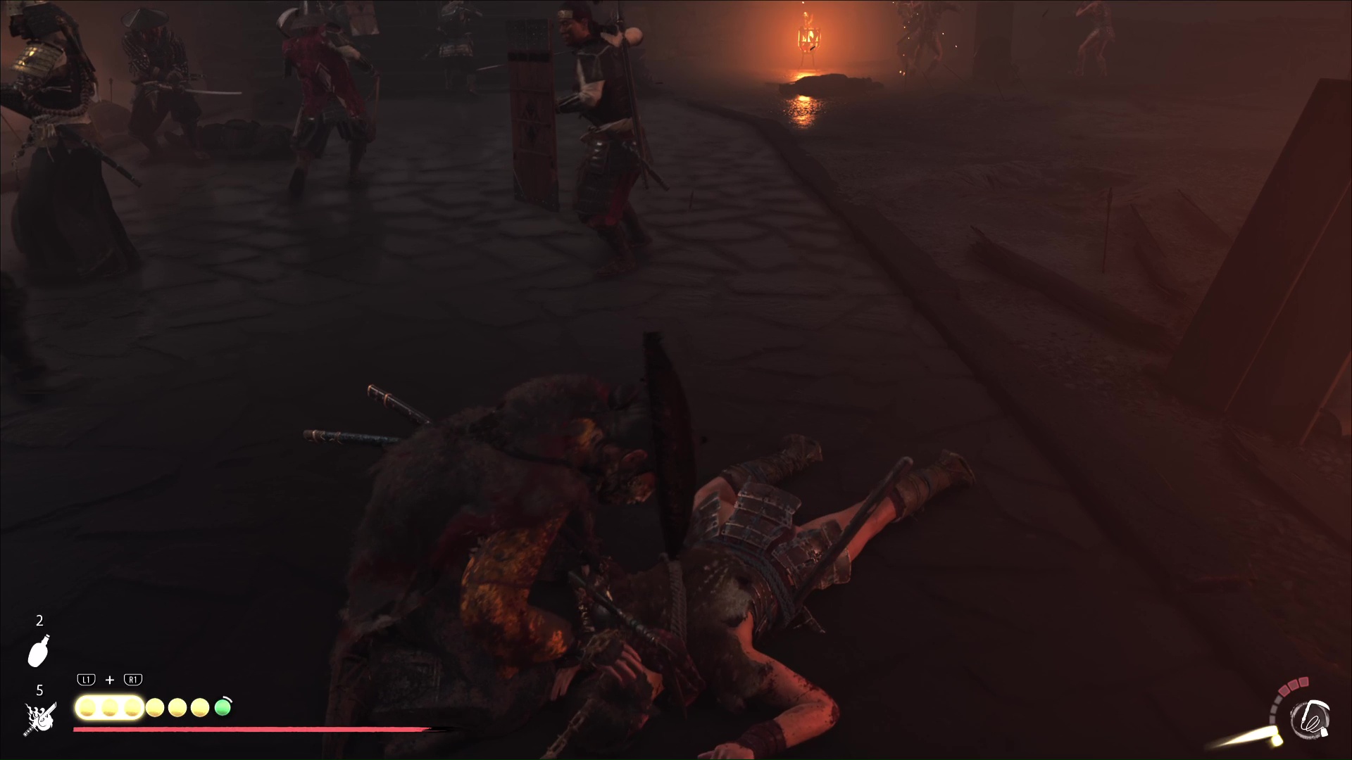 Tuez tout le monde, dont des brutes porteuses de bō-hiya. Il y a beaucoup d’ennemis, mais là encore, des Matsumae sont autour de vous, et votre posture de fantôme sera capable de faire un peu le ménage.