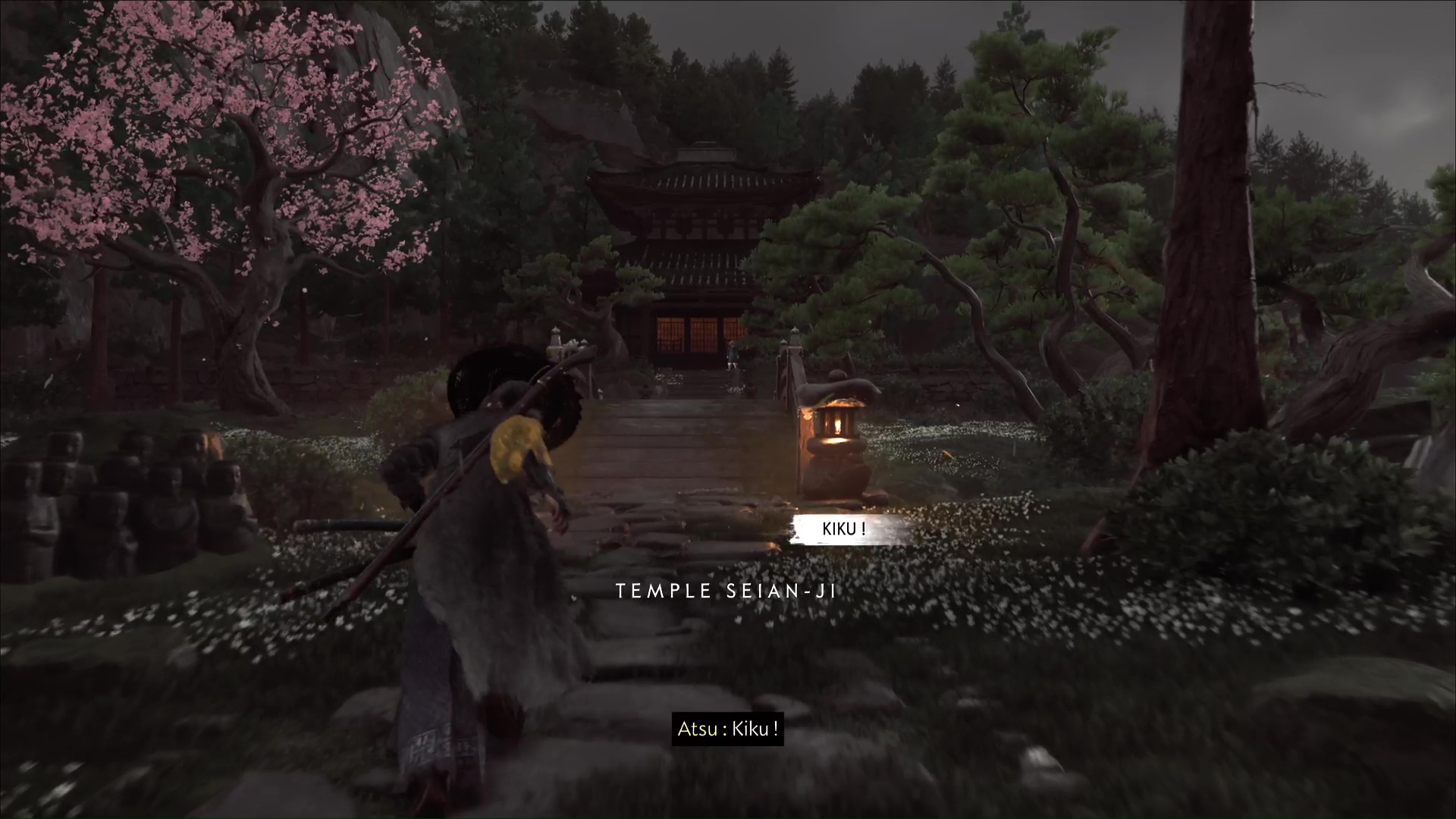 De retour du côté d’Atsu, montez les escaliers menant au temple Seian-ji. Appelez autant que vous le pouvez vos proches puis, arrivé devant le temple, allez au camp de la quête précédente pour y trouver Kiku, saine et sauve.