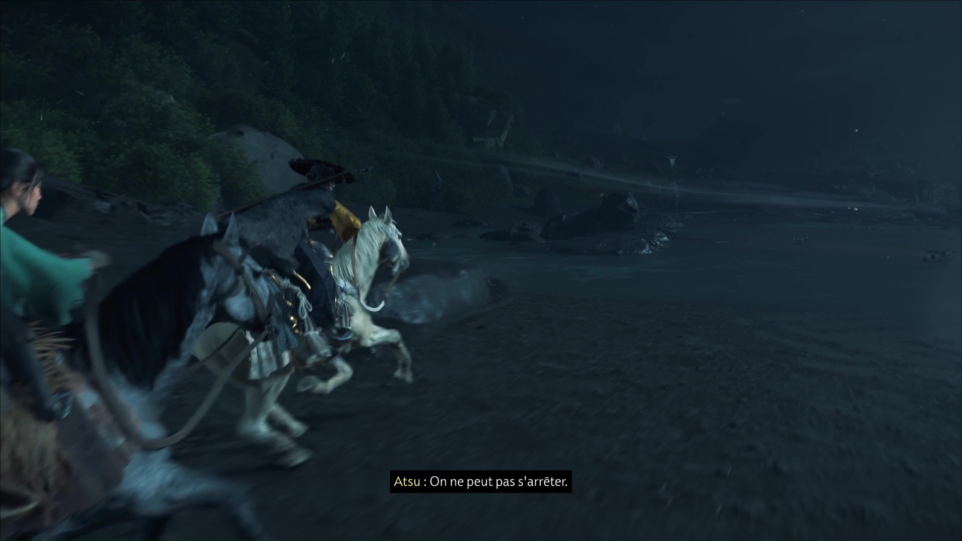 Pour la première fois depuis son enfance, Atsu a profité d’une journée douce et calme. Une parenthèse dans sa quête de vengeance à laquelle elle n’a jamais cessé de penser en 16 ans. La réalité la rattrape dès le lendemain, alors qu’elle se met en route pour le château Matsumae, afin de voir si le plan visant à attirer le Dragon va marcher ou non. Cette nouvelle quête de Ghost of Yōtei promet de faire couler le sang.