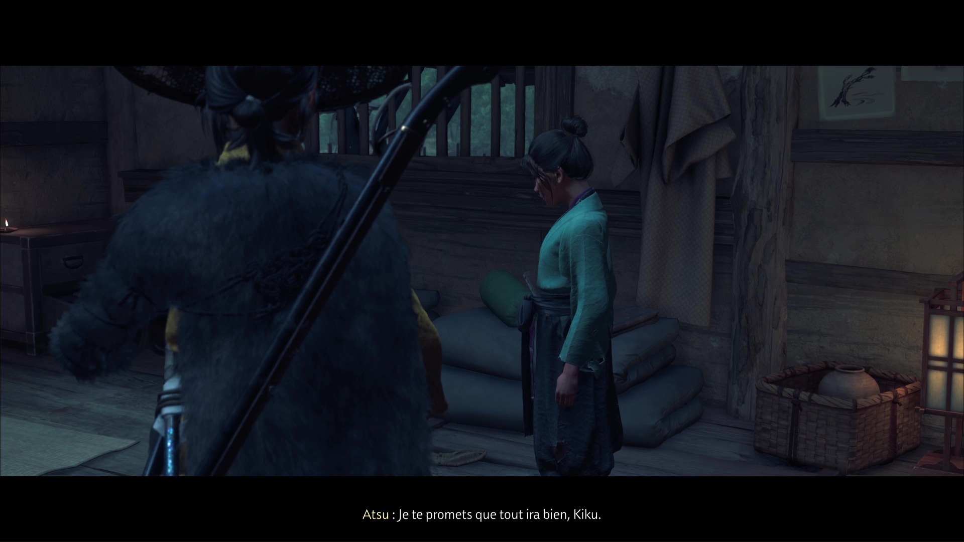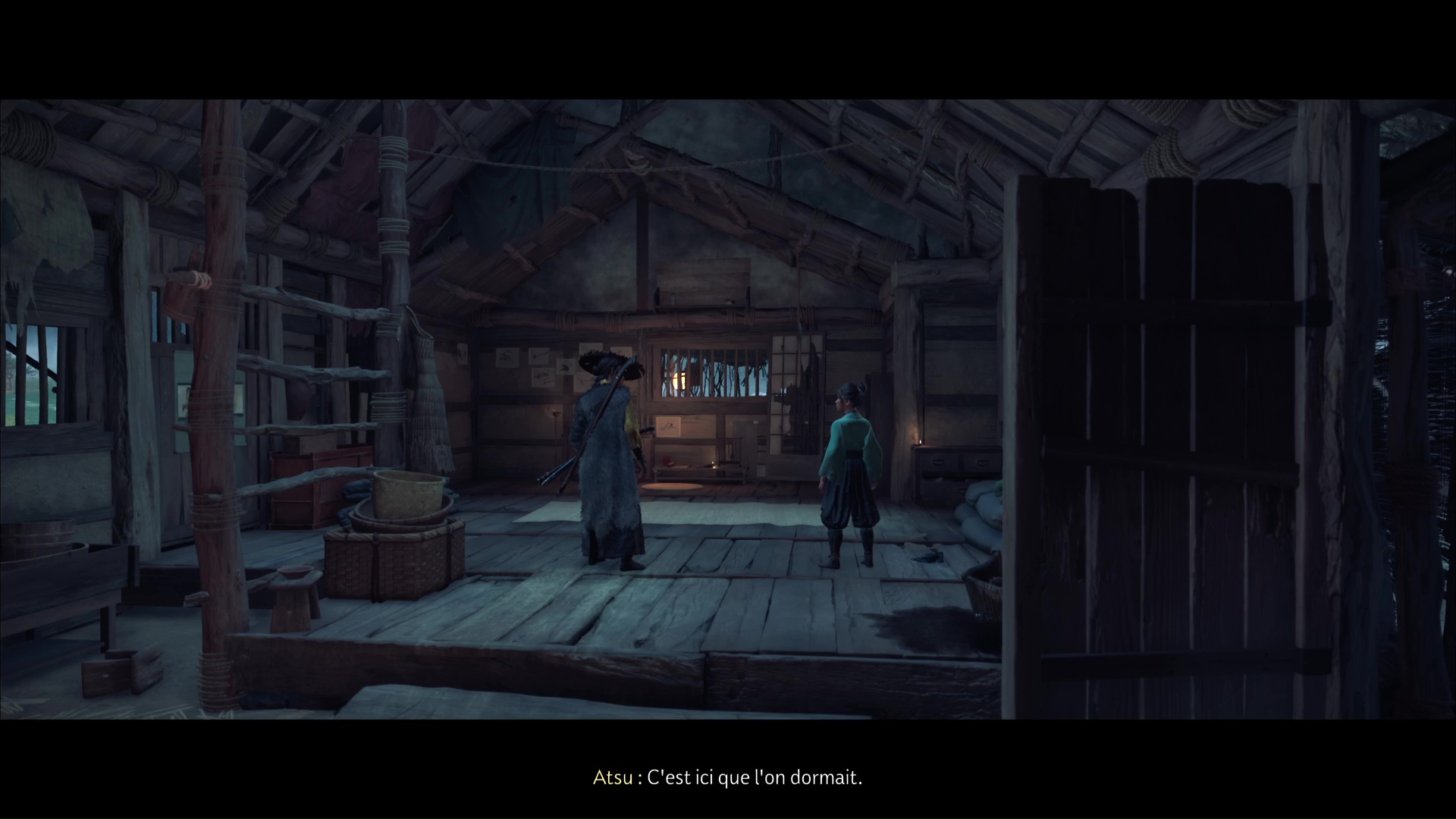 Pénétrez dans la maison pour qu’Atsu termine la « visite » pour Kiku. L’heure est au repos, malgré le fait que Kiku soit particulièrement inquiète.