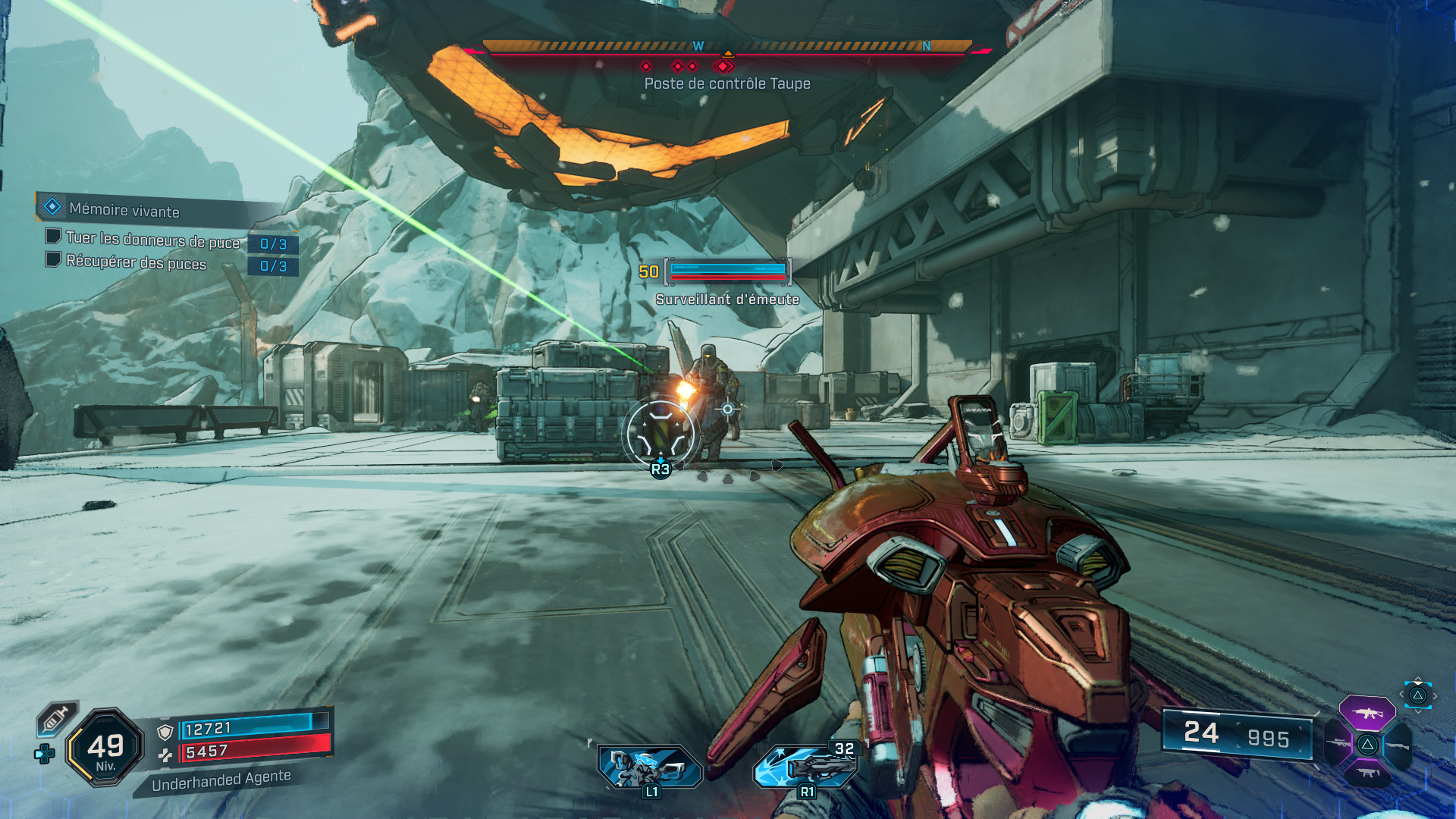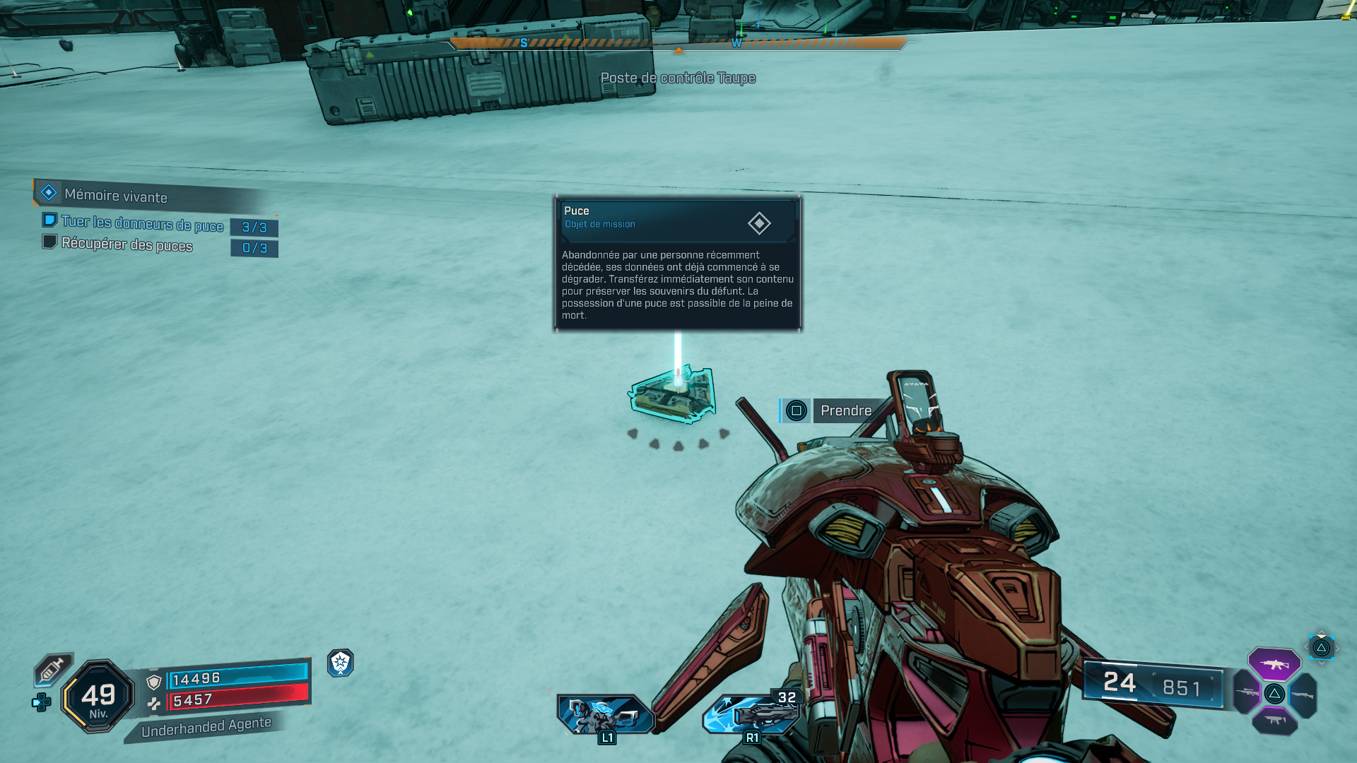 Pour trouver les puces en question, Pickett vous suggère de vous rendre au Poste de Contrôle Taupe, à l’est. Une fois sur place, tuez tout le monde et notamment les 3 surveillants de la zone pour ensuite récupérer 3 puces sur leurs cadavres. Une nouvelle zone d’objectif apparaît alors sur votre carte, un peu plus loin à l’ouest, l’objectif étant de tuer 3 autres surveillants pour obtenir 3 puces supplémentaires.