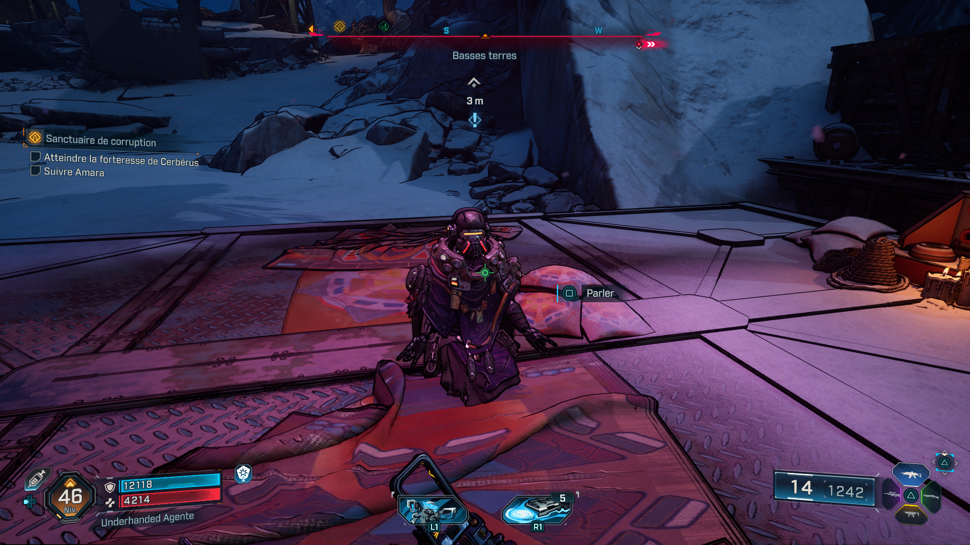 - Récompense : XP + Argent + Eridium + Mitraillette peu commune à très rare + Style de Chasseur de l’Arche