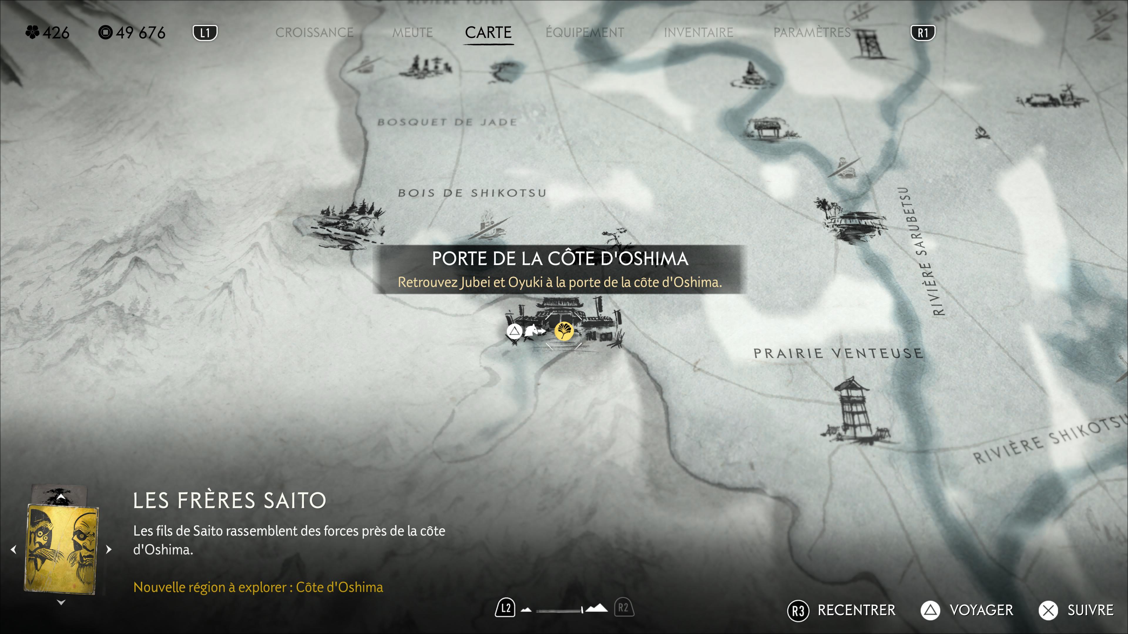 Il n’y a plus qu’une région à explorer dans Ghost of Yōtei, et c’est justement celle-ci dans laquelle le Chapitre II démarre. Direction la Côte d’Oshima, donc, pour remonter la piste de Saito et ses fils, l’Araignée et le Dragon. Mais alors que la cohésion d’équipe risque d’être sacrément compliquée entre Jubei et Oyuki, il n’y a pourtant pas le choix et pas de temps à perdre.