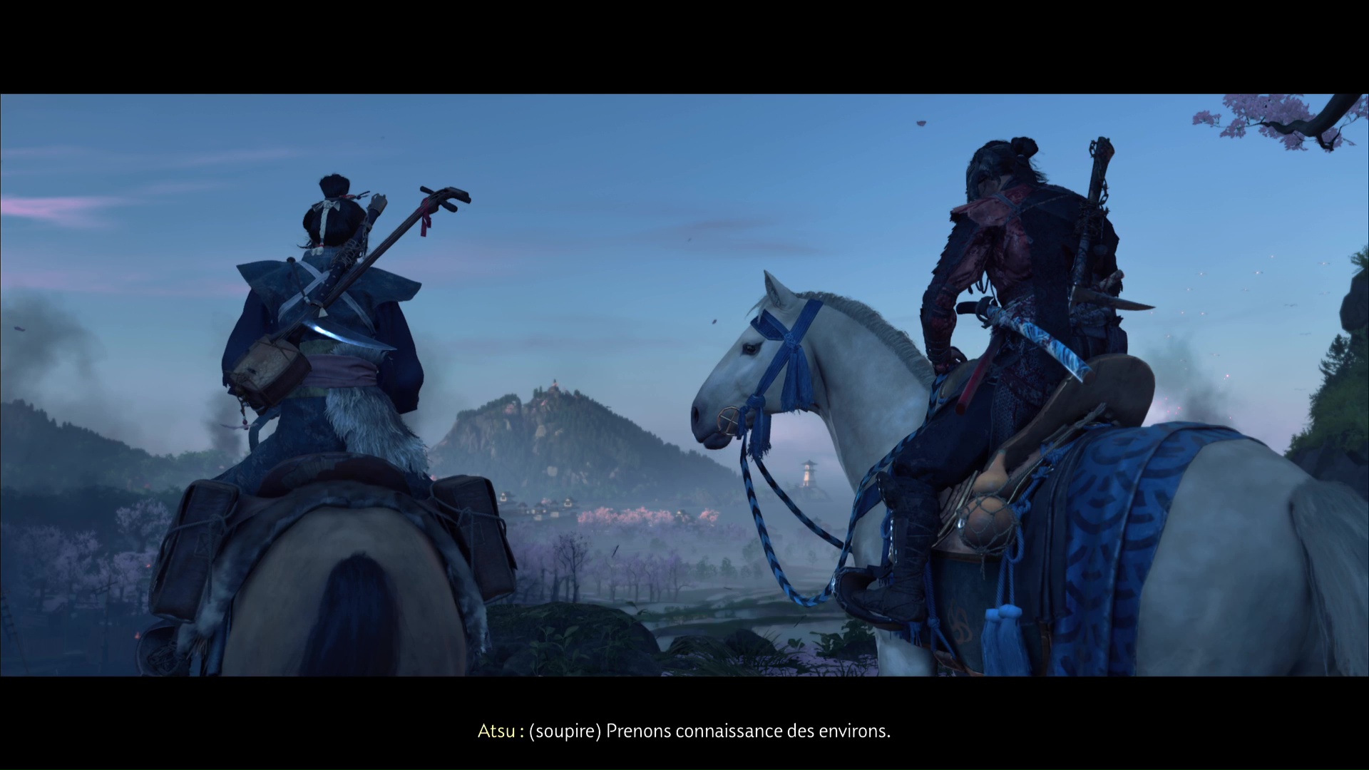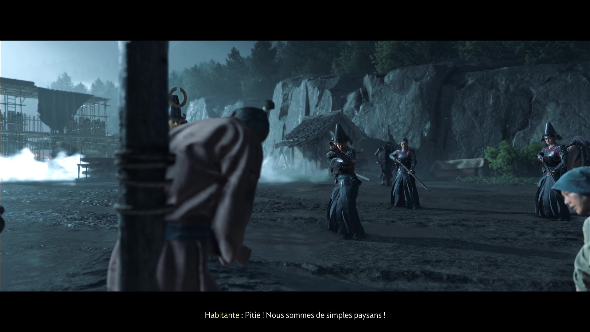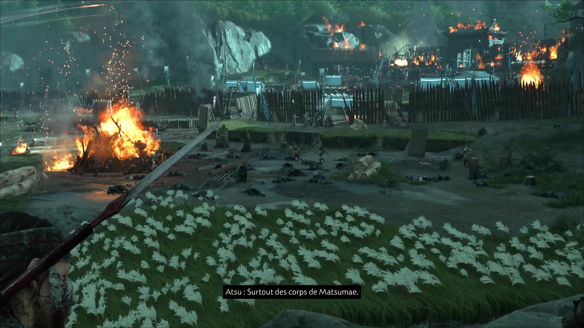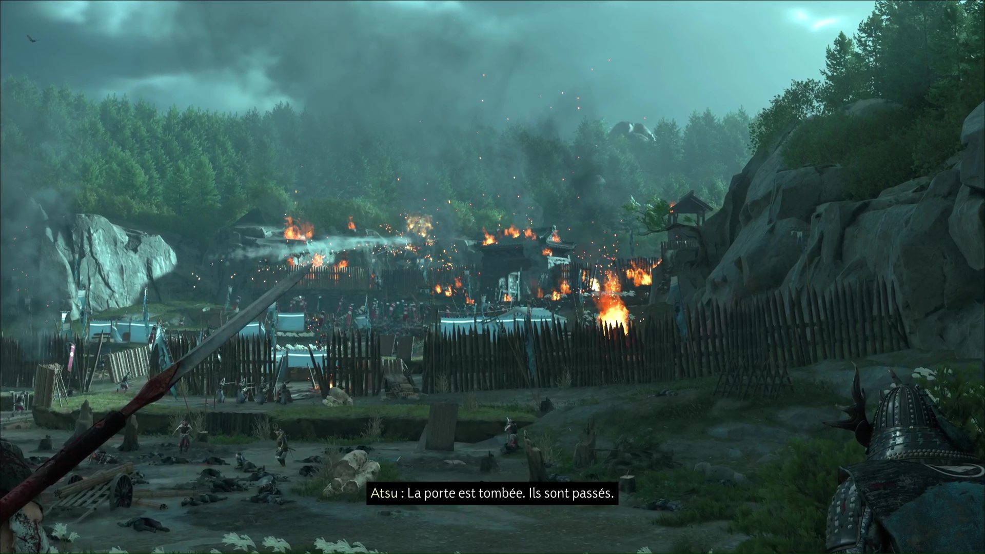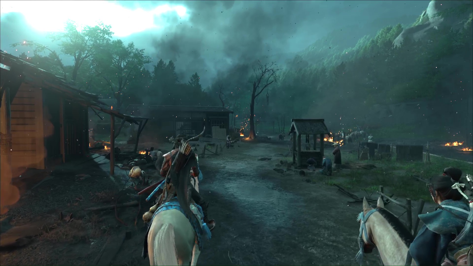 Sans plus attendre, vous partez à cheval pour essayer de rejoindre Jubei. Vous traversez un village incendié au bout duquel Atsu retrouve son frère, en tenue de combat.