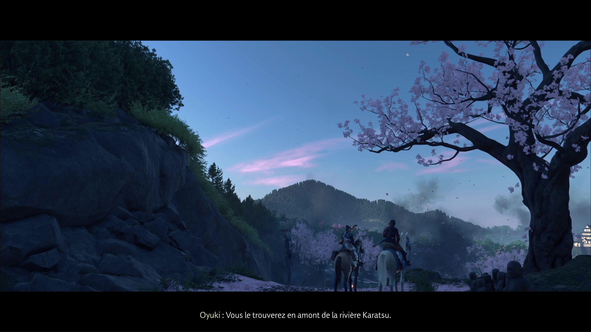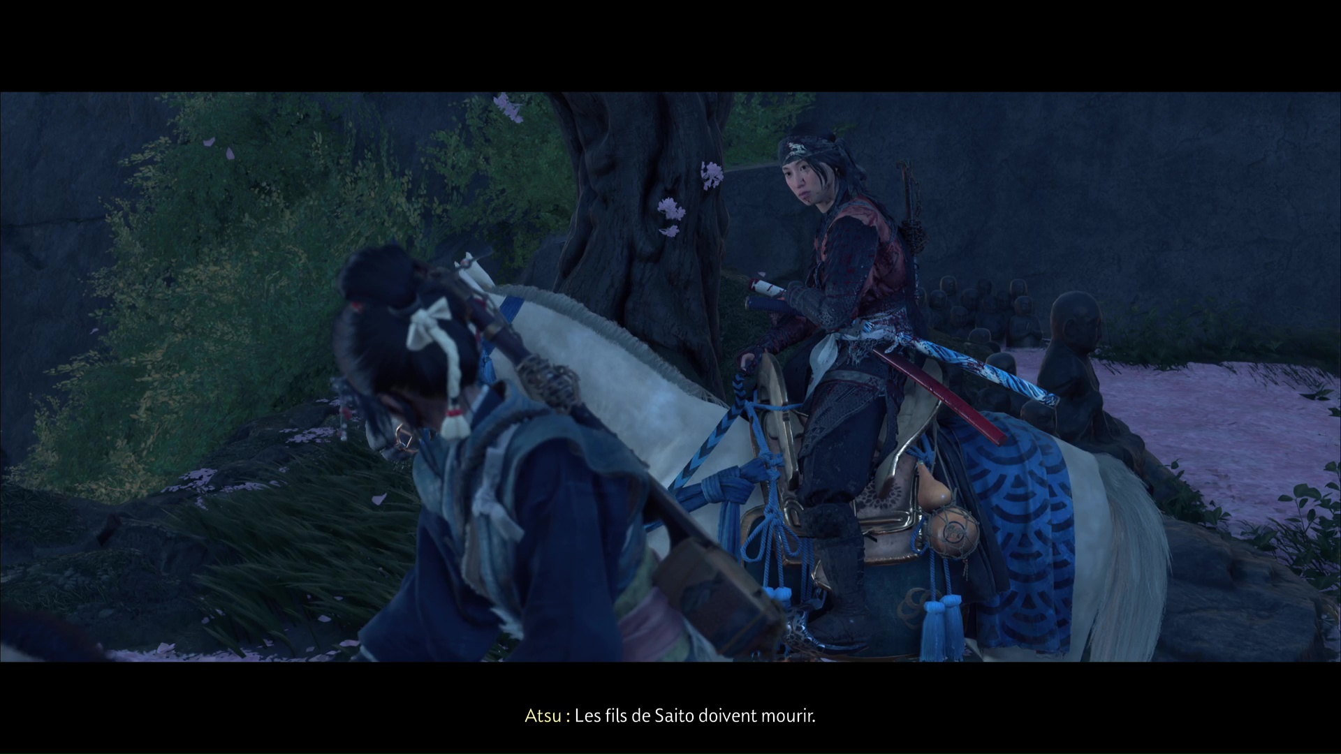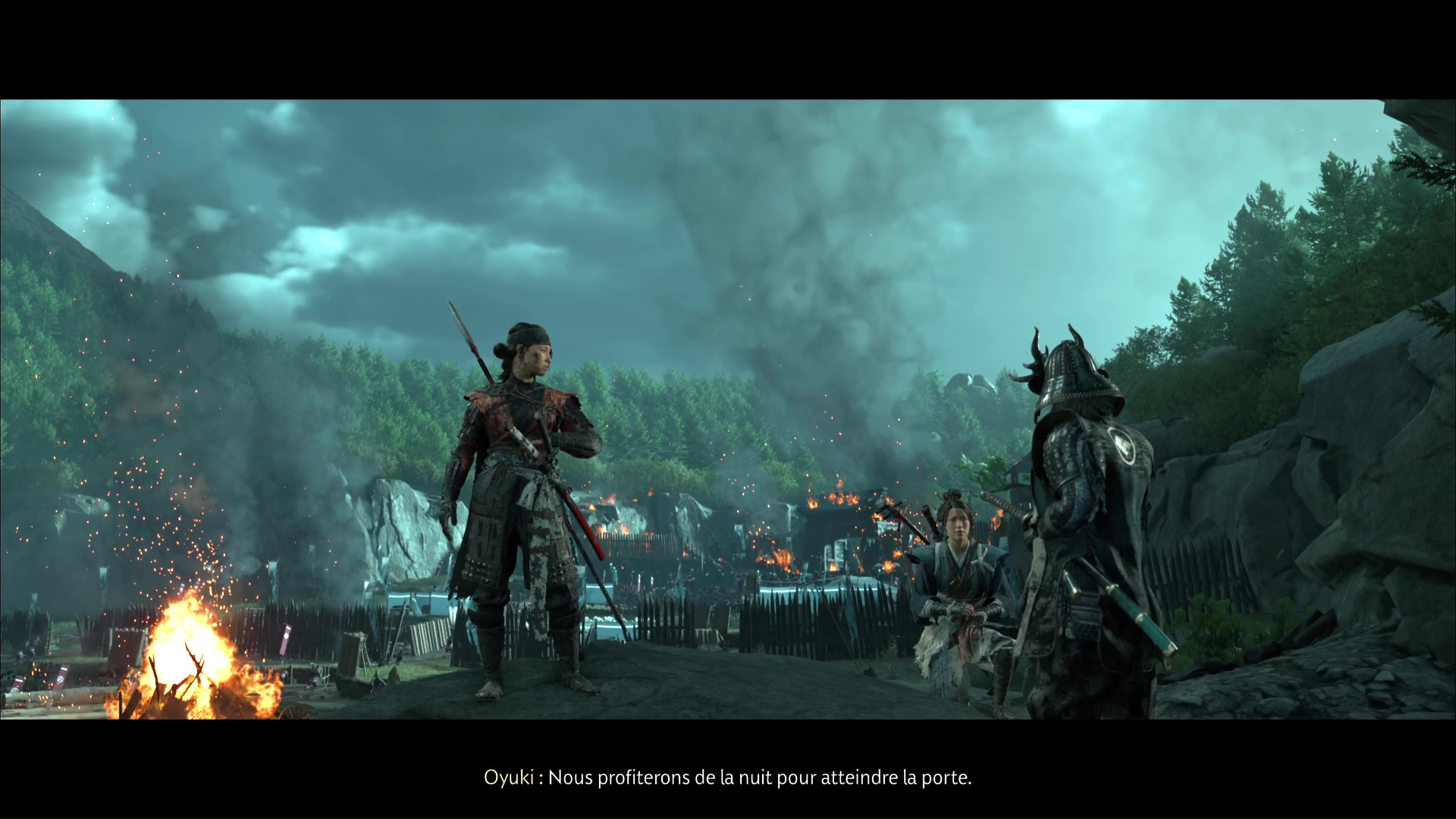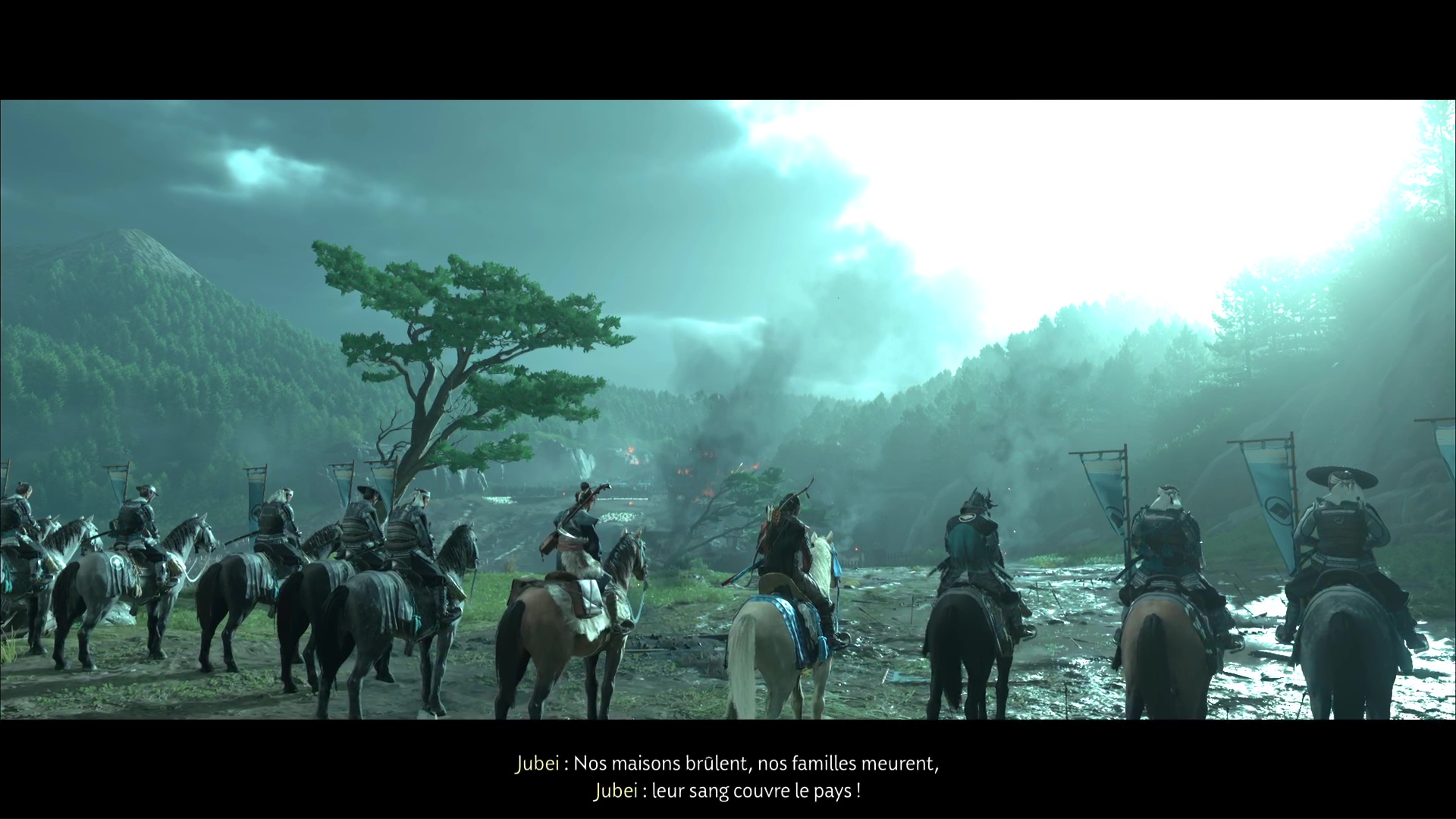Sans plus attendre, vous partez à cheval pour essayer de rejoindre Jubei. Vous traversez un village incendié au bout duquel Atsu retrouve son frère, en tenue de combat.