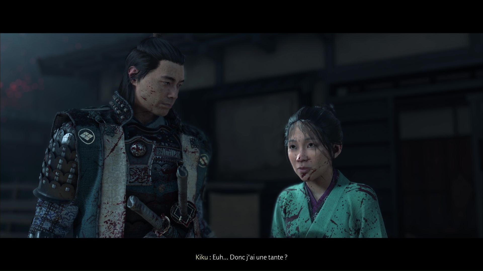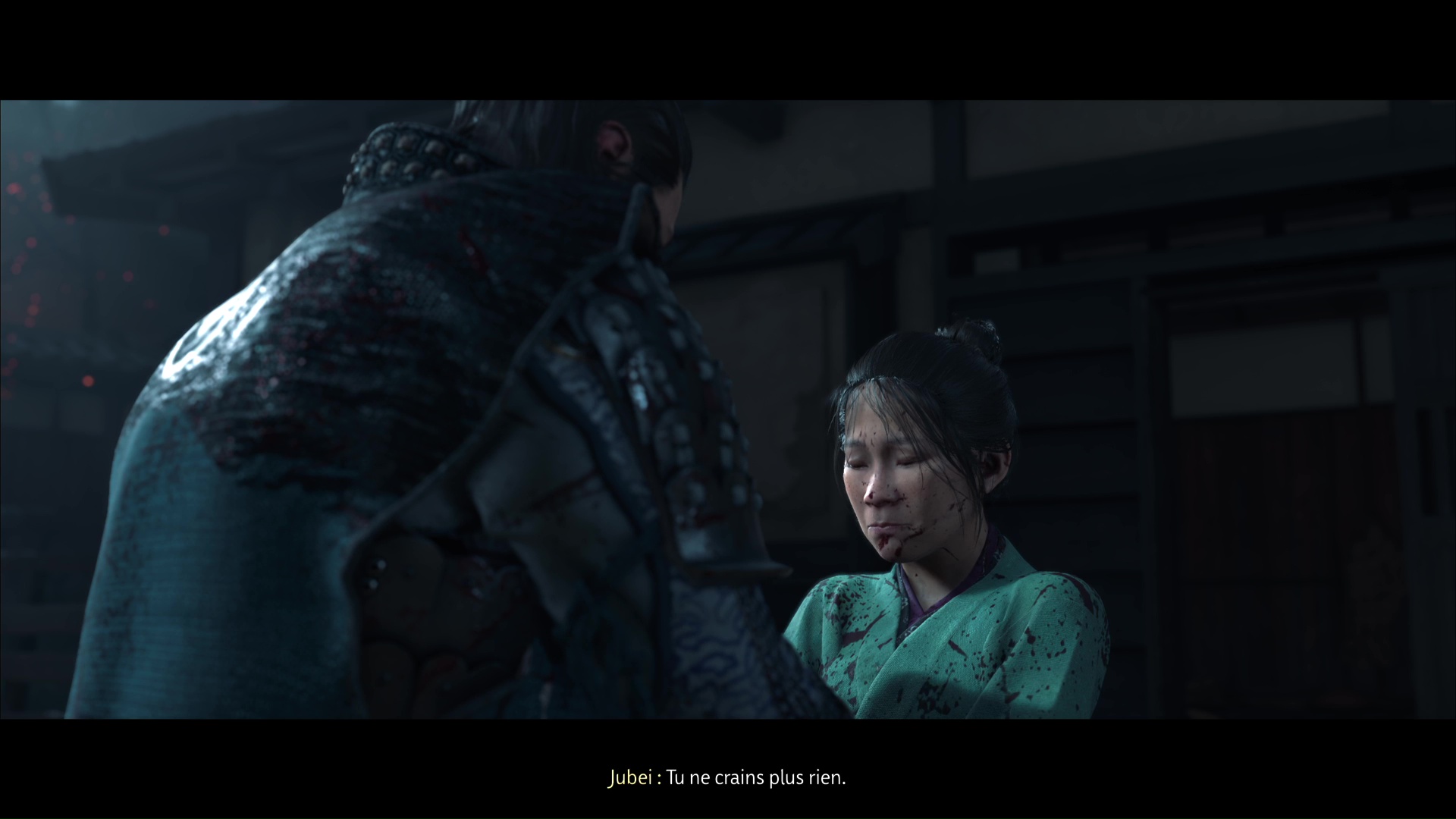Dès lors que vous aurez tué tous les soldats, une petite fille courra alors jusqu’à Jubei. Il s’agit de Kiku, sa fille. Et tandis qu’il la console, Atsu essaye de réaliser ce qu’il se passe, en même temps que Kiku, qui comprend donc qu’elle a une tante.