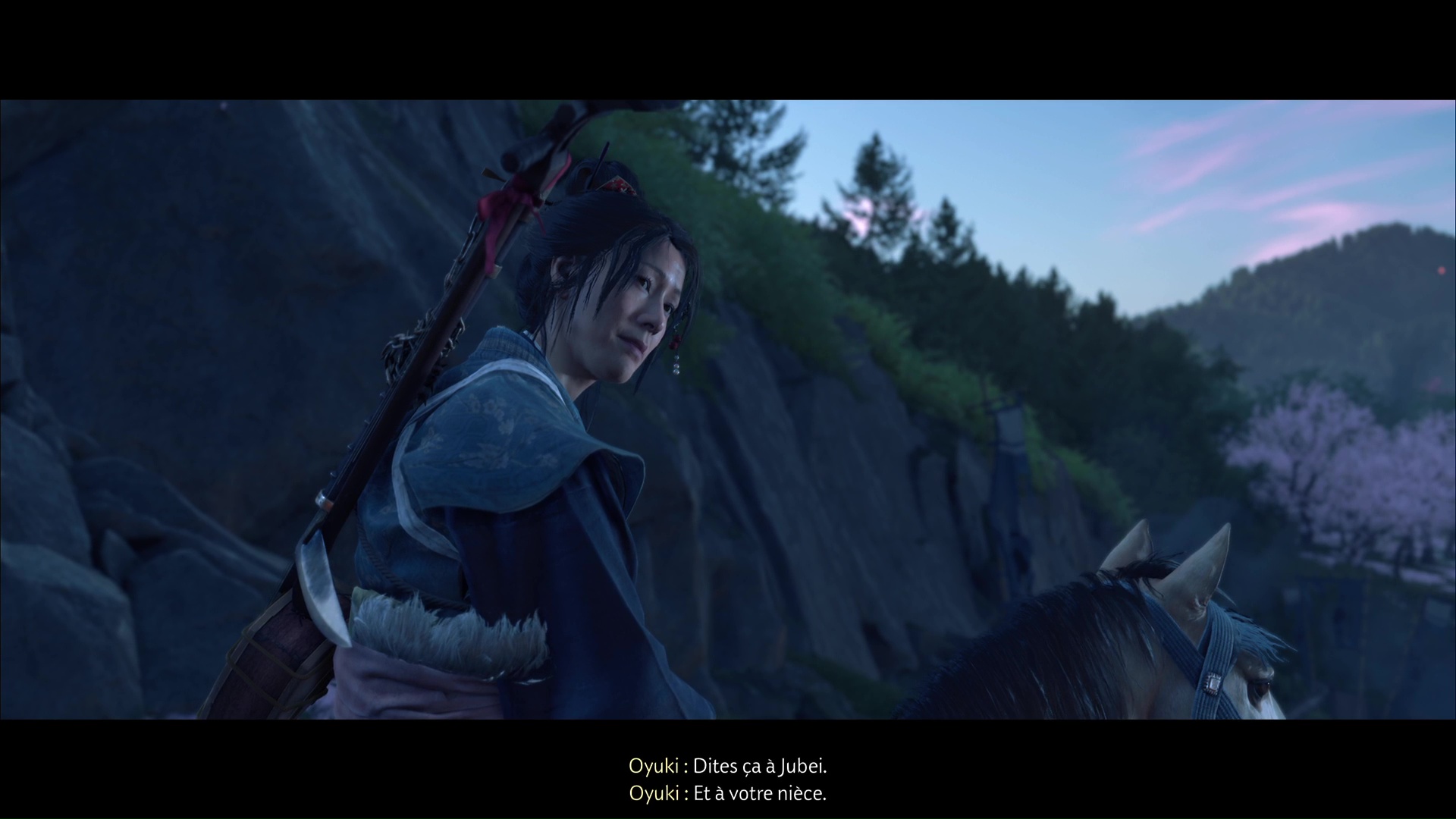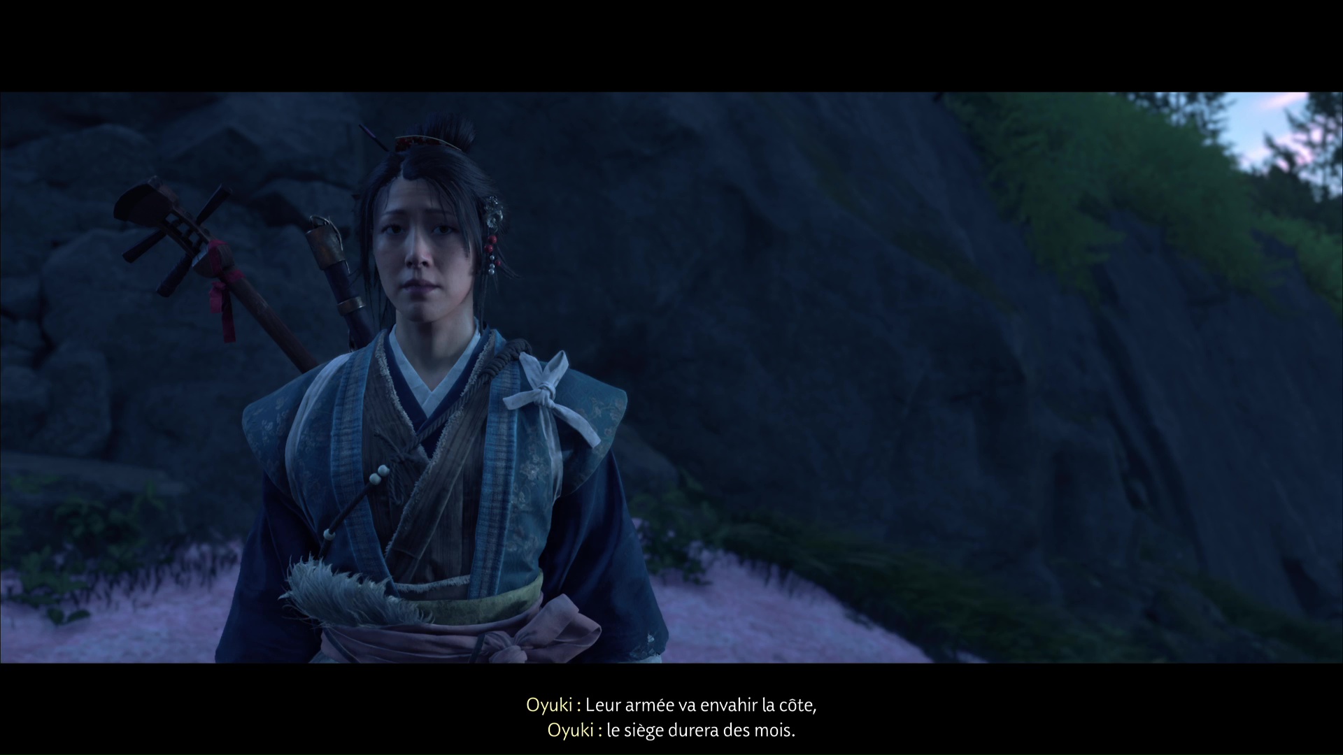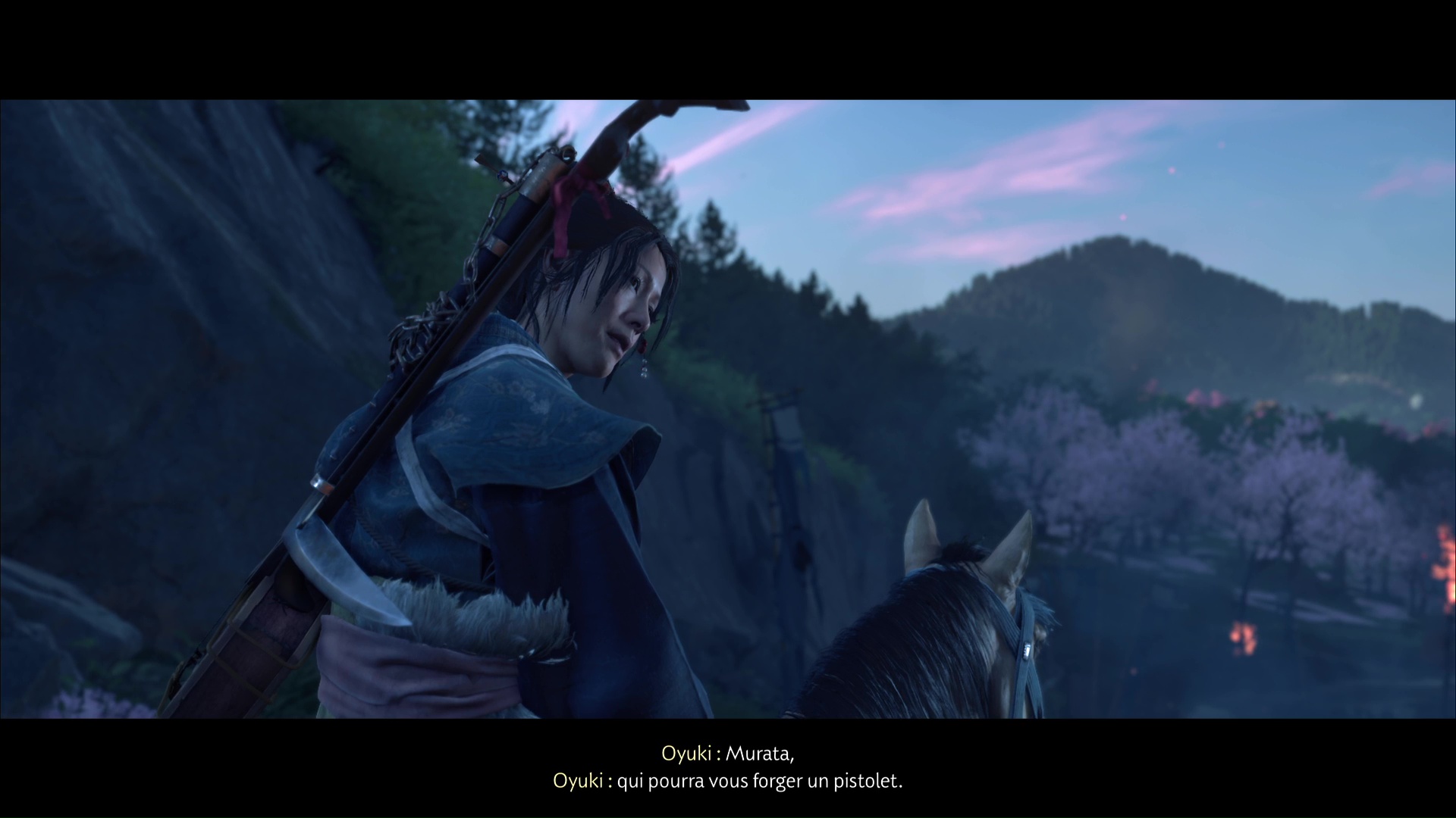 Oyuki vous conseille d’aller rejoindre votre frère au château et vous met également sur la piste de Murata, qui pourra vous faire un pistolet dans le cadre du récit « Armes et répercussions ». Mais si effectivement vous comptez poursuivre la quête principale, rendez-vous dans la quête « Échos de la tempête ».