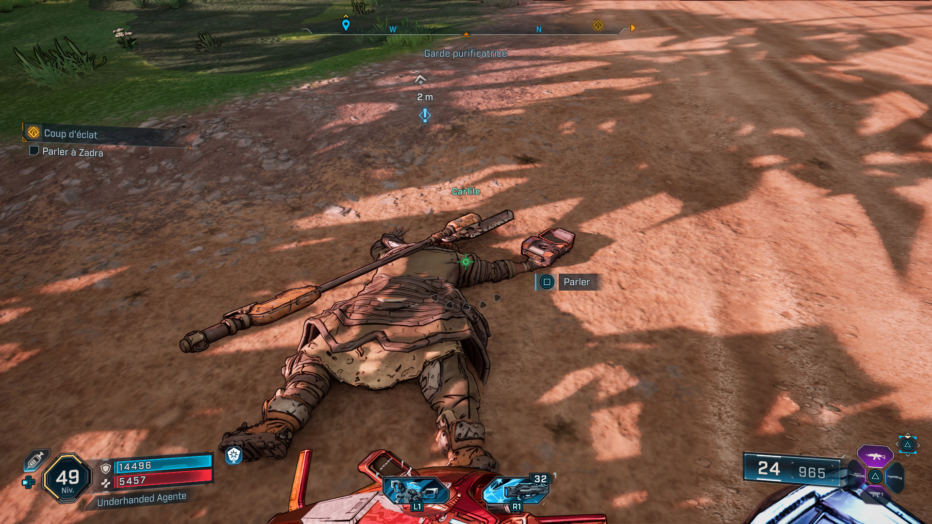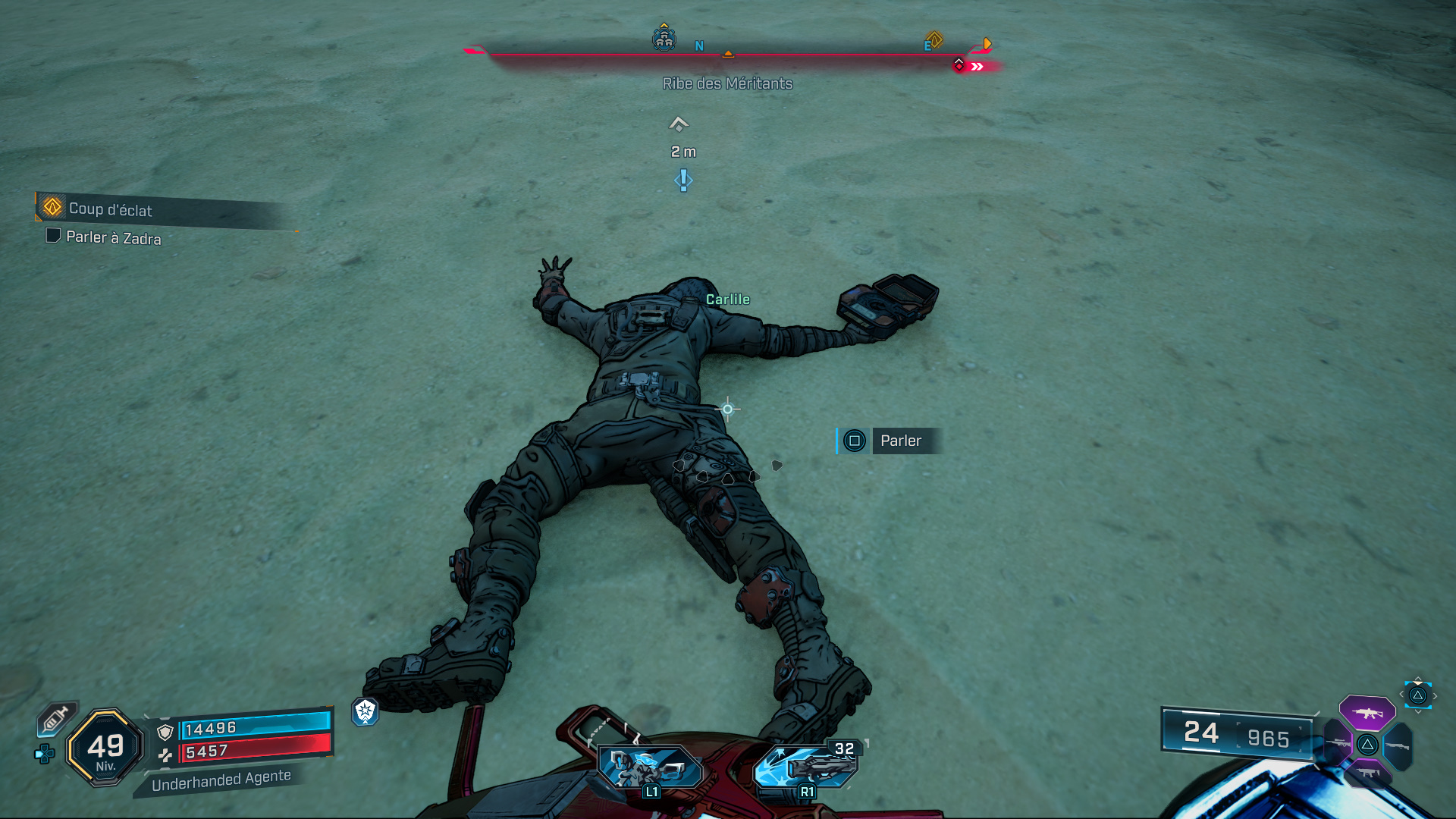 - Récompense : XP + Argent + Eridium + Grenade peu commune à très rare + Style de Chasseur de l’Arche