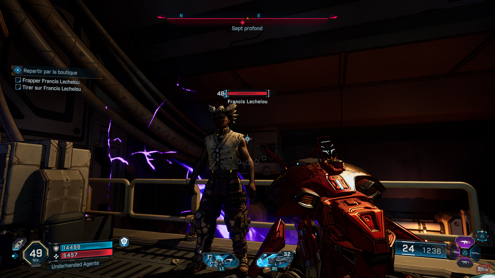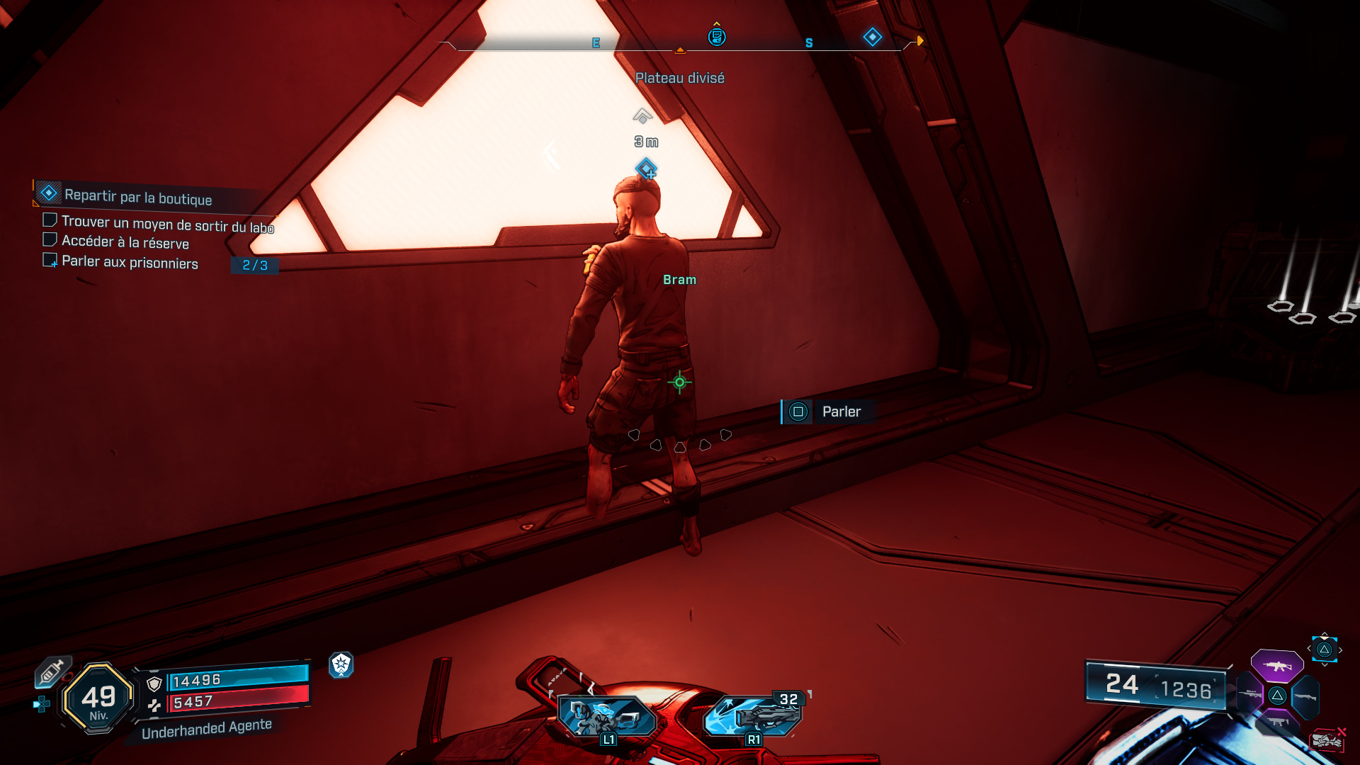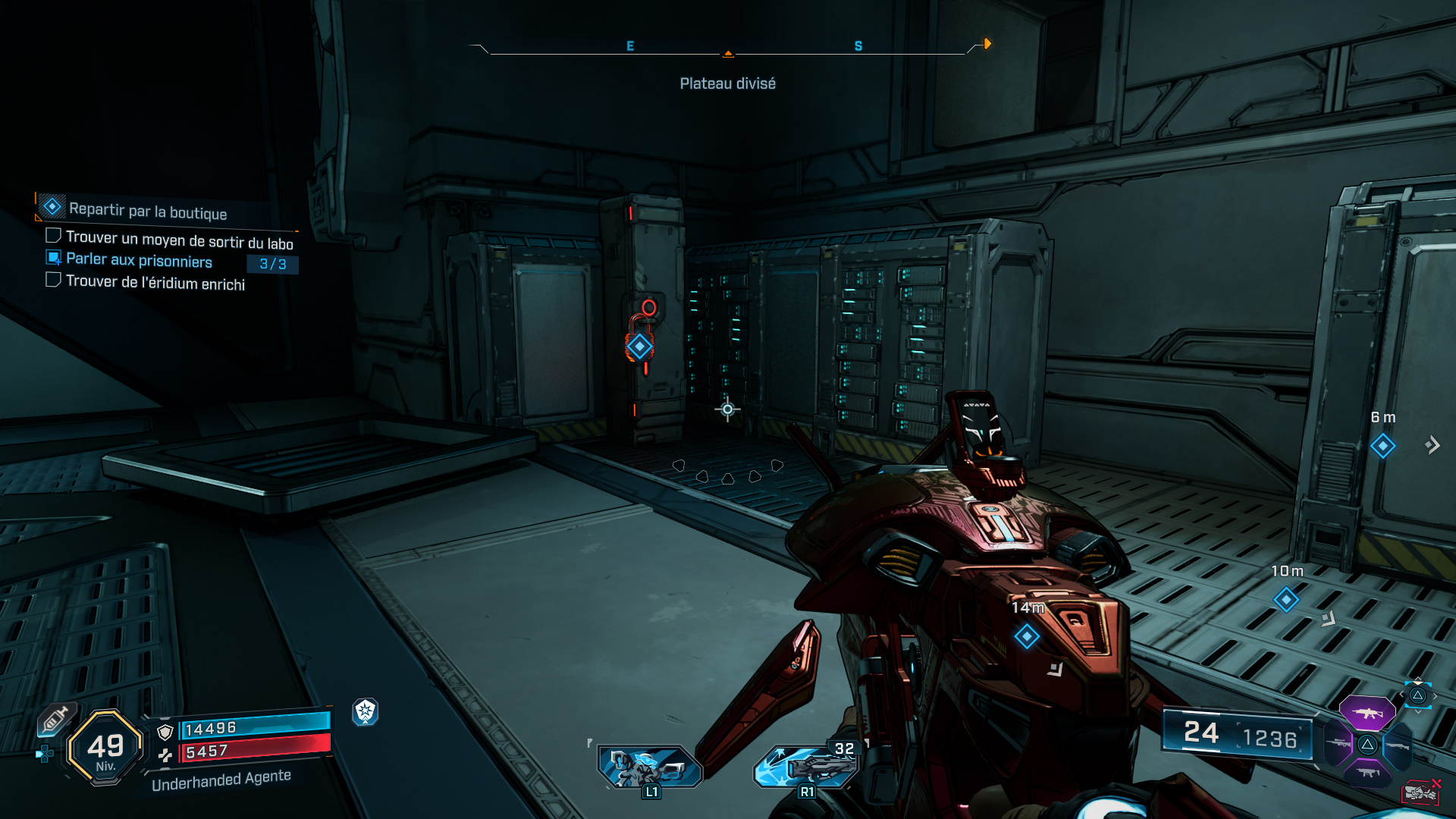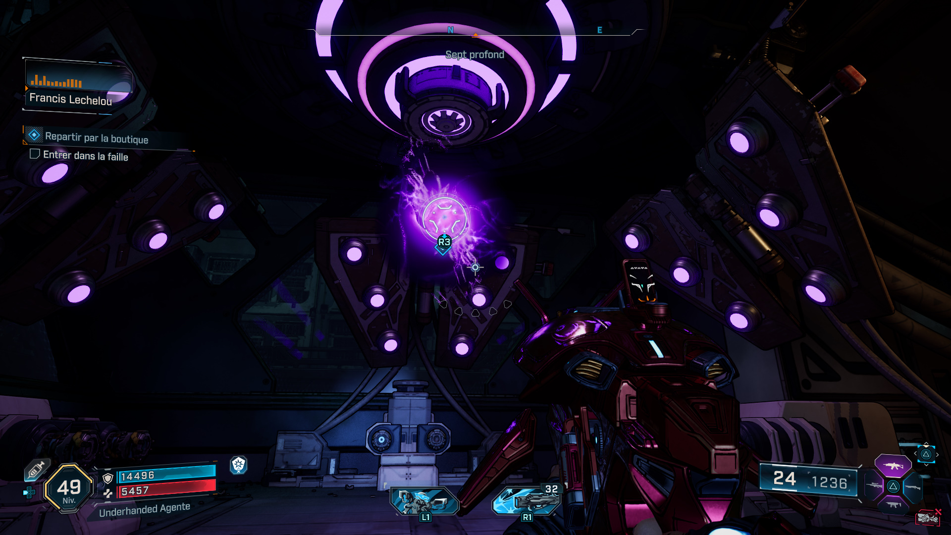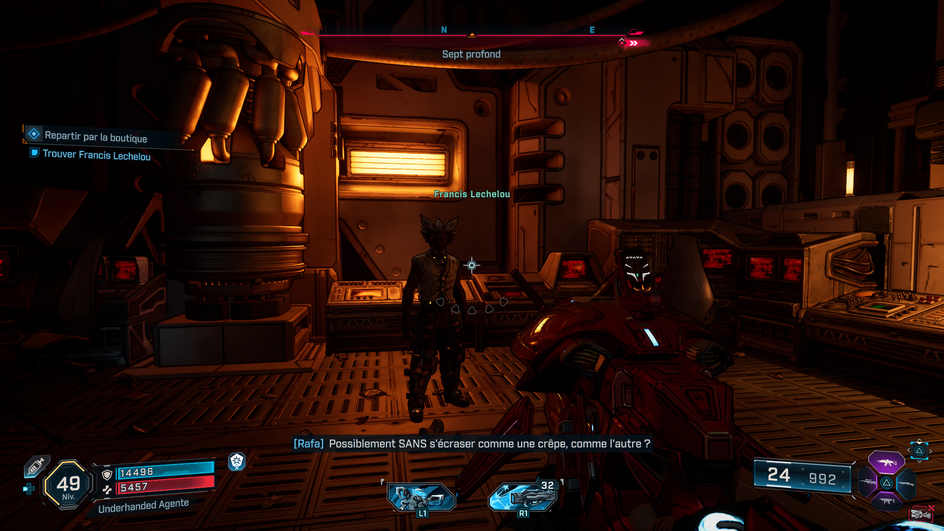 Quelque soit votre point de départ, commencez par vous téléporter au Silo des Sept Profond, au nord du Plateau Divisé, et rejoignez Francis Lechelou dans un complexe un peu plus bas. Un endroit qui était verrouillé jusqu’à présent, profitez-en donc pour récupérer les 2 enregistrements ECHO en consultant notre page dédiée aux Collectors du Plateau Divisé. Sinon, allez dans la pièce du fond pour discuter avec Francis Lechelou.