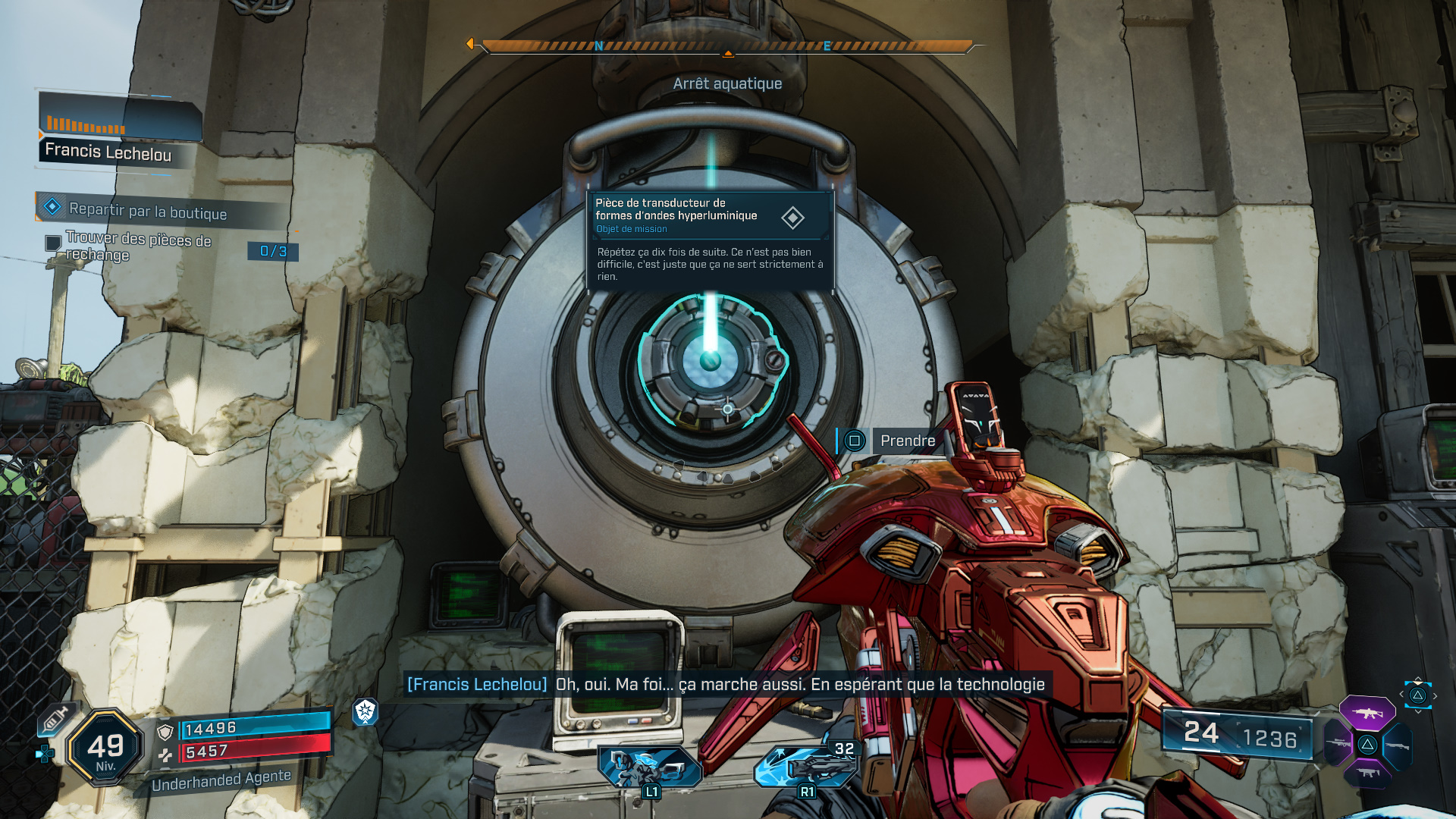 Retournez voir Francis Lechelou dans son complexe, puis montez à l’étage supérieur pour placer les 3 pièces de rechange aux endroits indiqués sur la machine. Une fois réparée, entrez alors dans la faille qui vient d’apparaître et tuez tous les soldats de l’Ordre dans la zone.