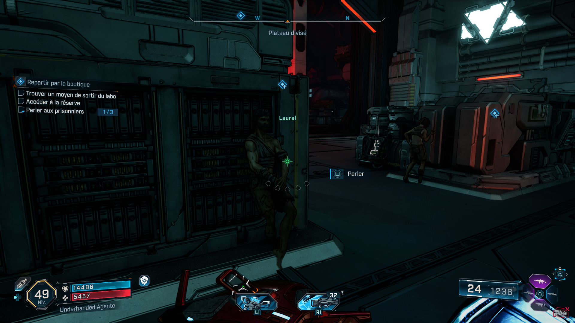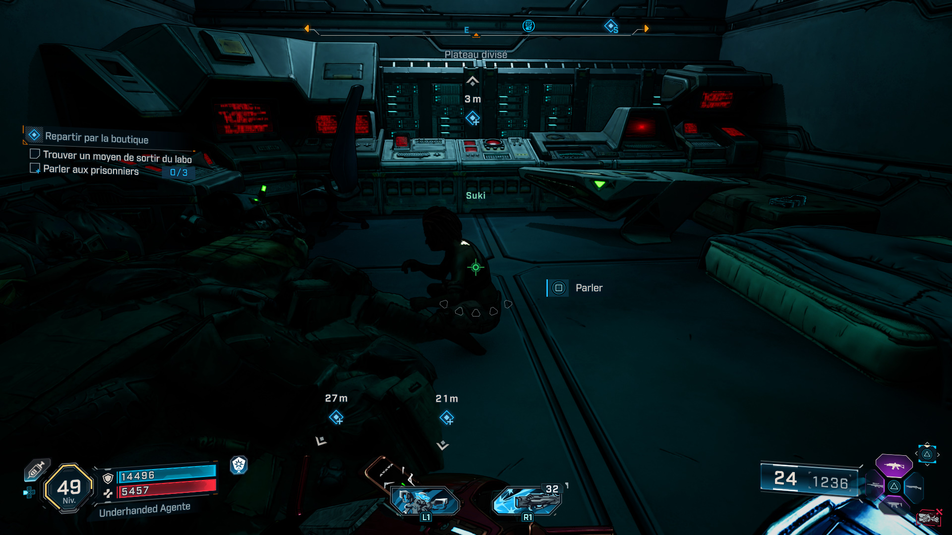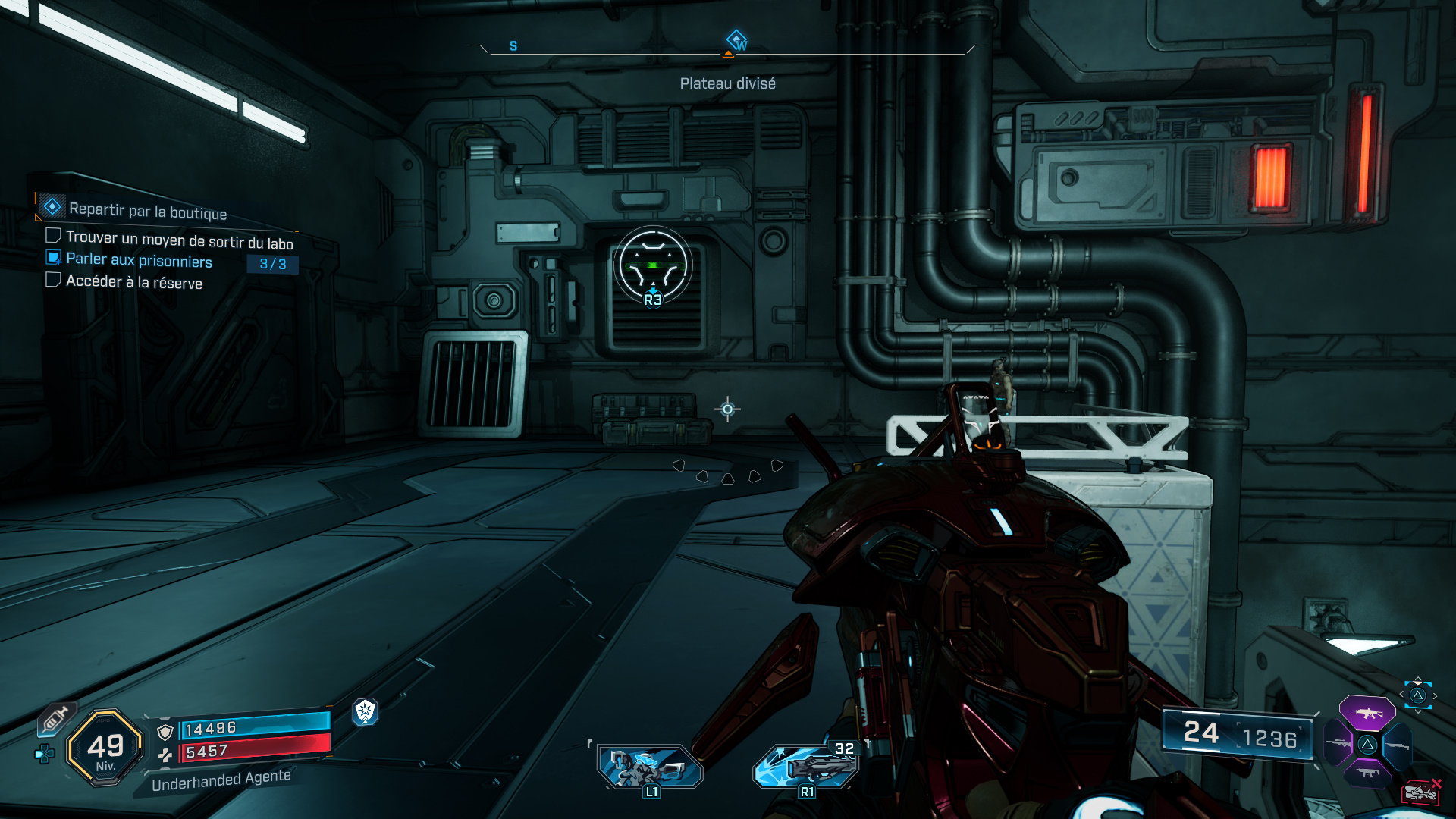 Montez ensuite à l’étage et appuyez sur le bouton indiqué sur la console de commandes pour déverrouiller les cellules et libérer les prisonniers. Dès lors, parlez aux 3 prisonniers pour valider l’objectif optionnel et notez que vous pouvez également mettre la main sur 2 enregistrements ECHO dans les cellules.