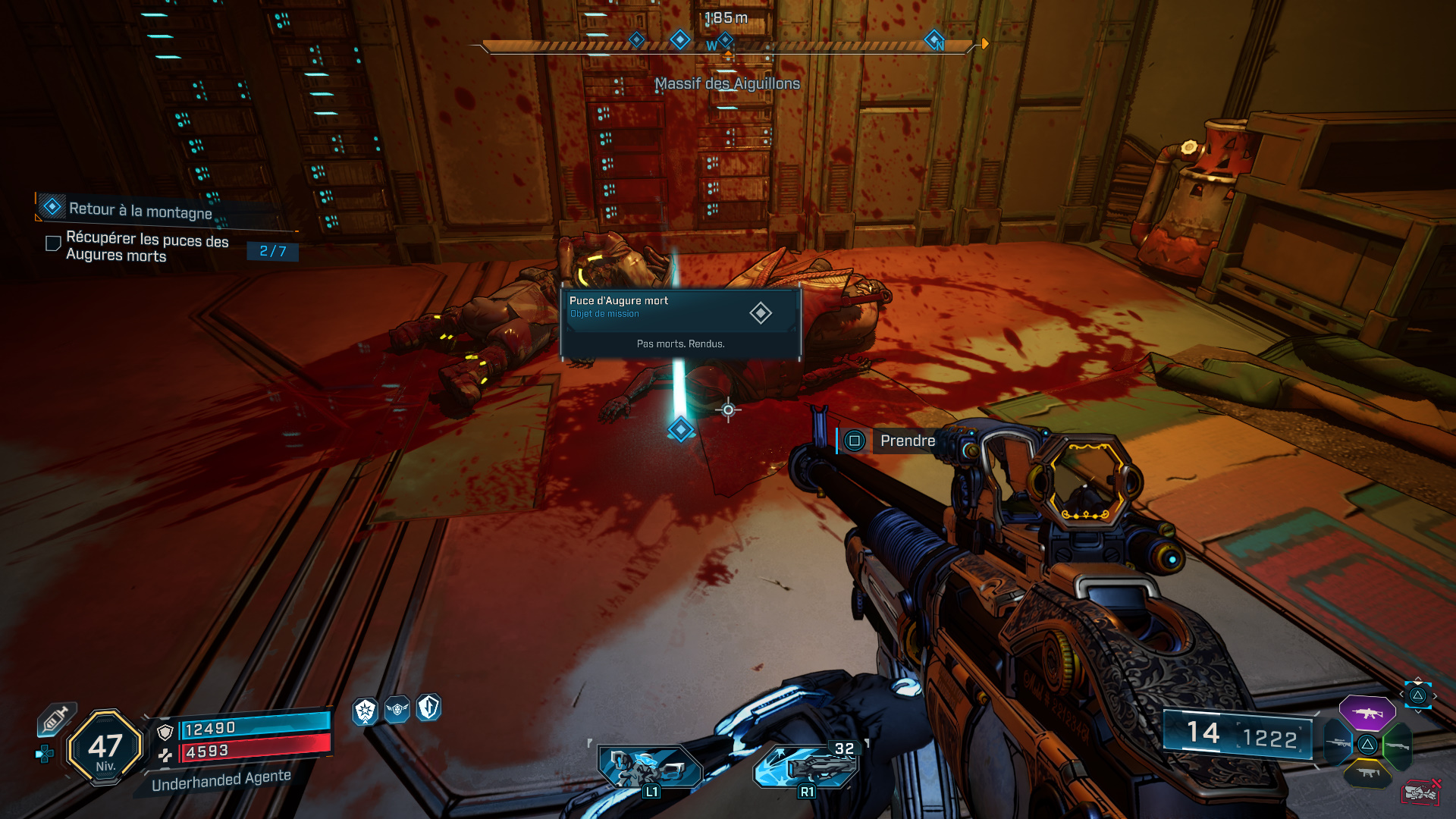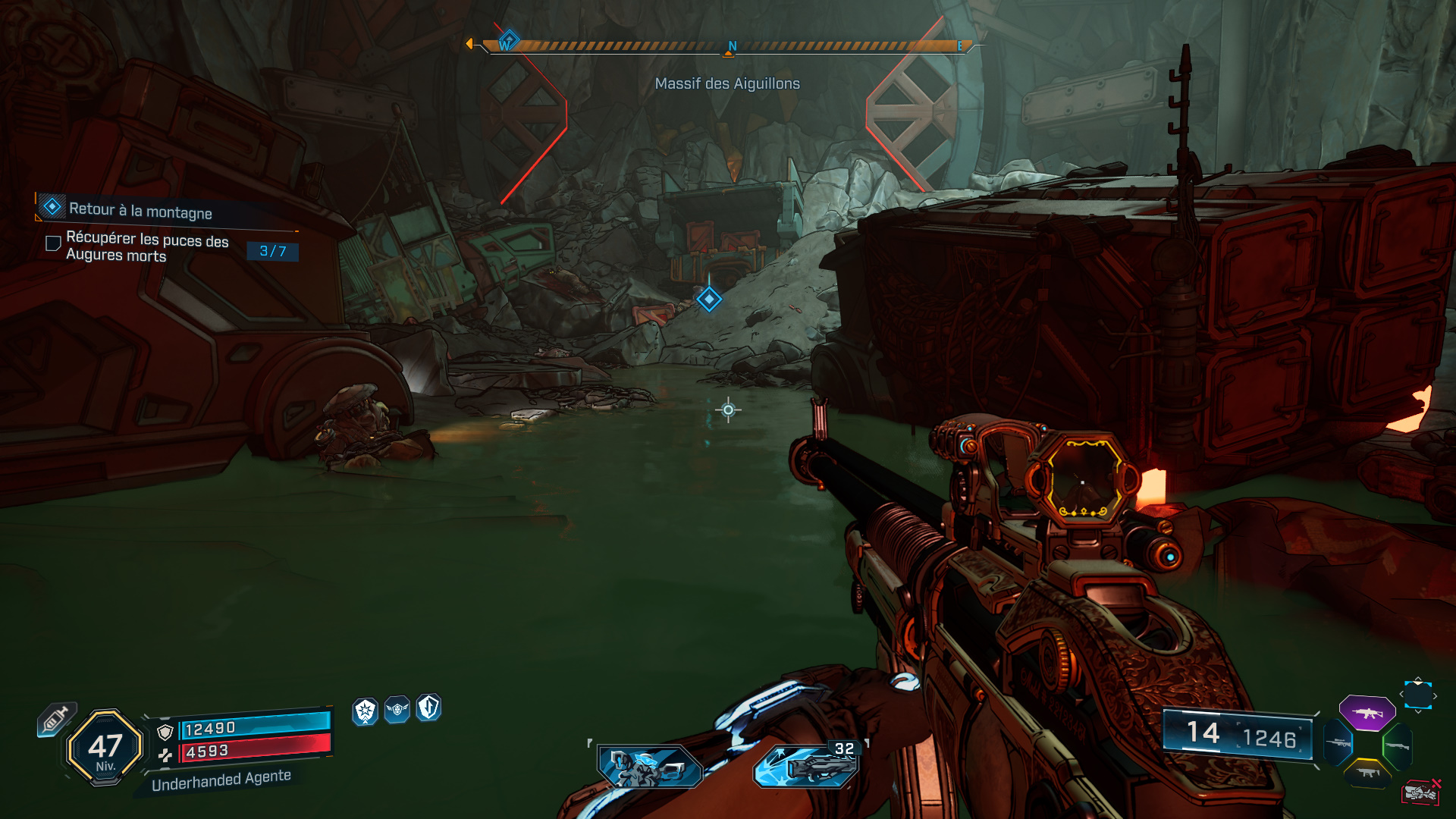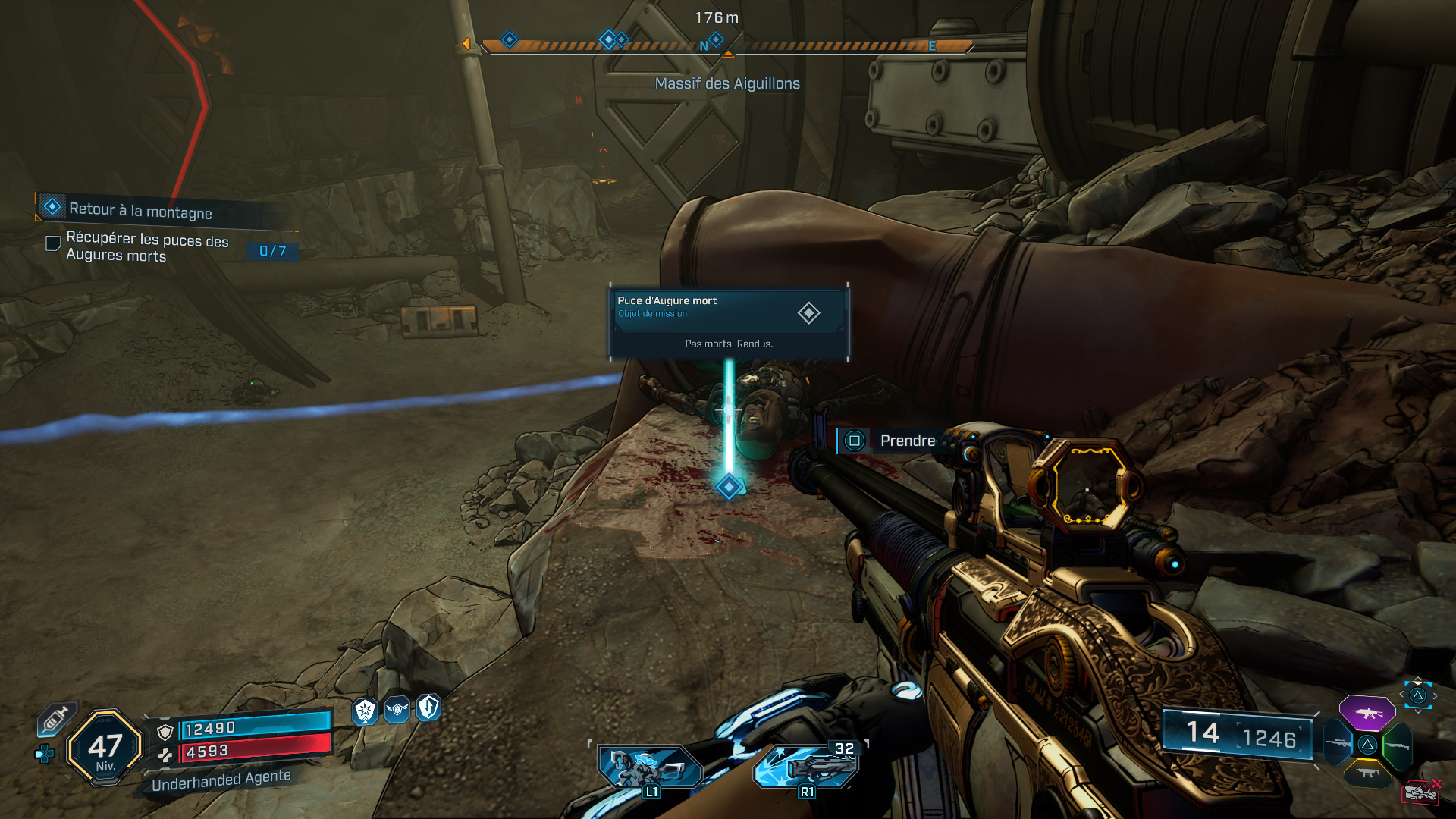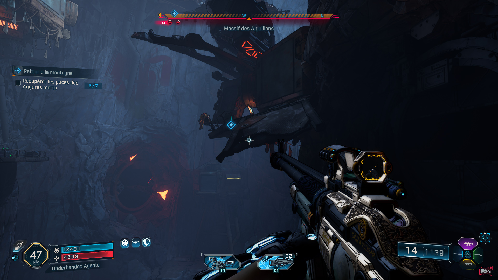 Après avoir parlé avec Calder, rendez-vous au sud-est, dans l’Enclave au Massif des Aiguillons, et fouillez les Mines Ardentes pour retrouver les 7 puces des Augures morts. A partir de là, laissez-vous simplement guider par votre boussole, en plus de l’ECHO-localisation, pour les récupérer les unes après les autres, tout en prenant soin de vous débarrasser des ennemis de l’Ordre qui grouillent dans les parages.