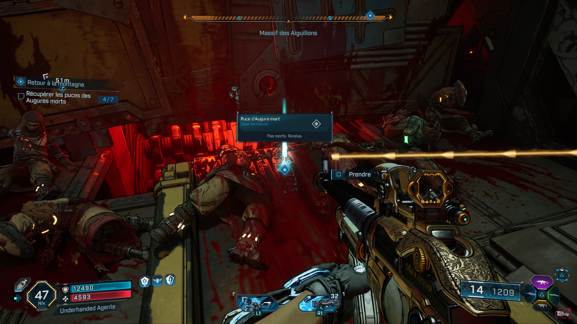 - Puce d’Augure mort n°5 : Non loin de l’entrée de la chambre de fouille, au milieu de plusieurs cadavres à proximité d’une broyeuse.
