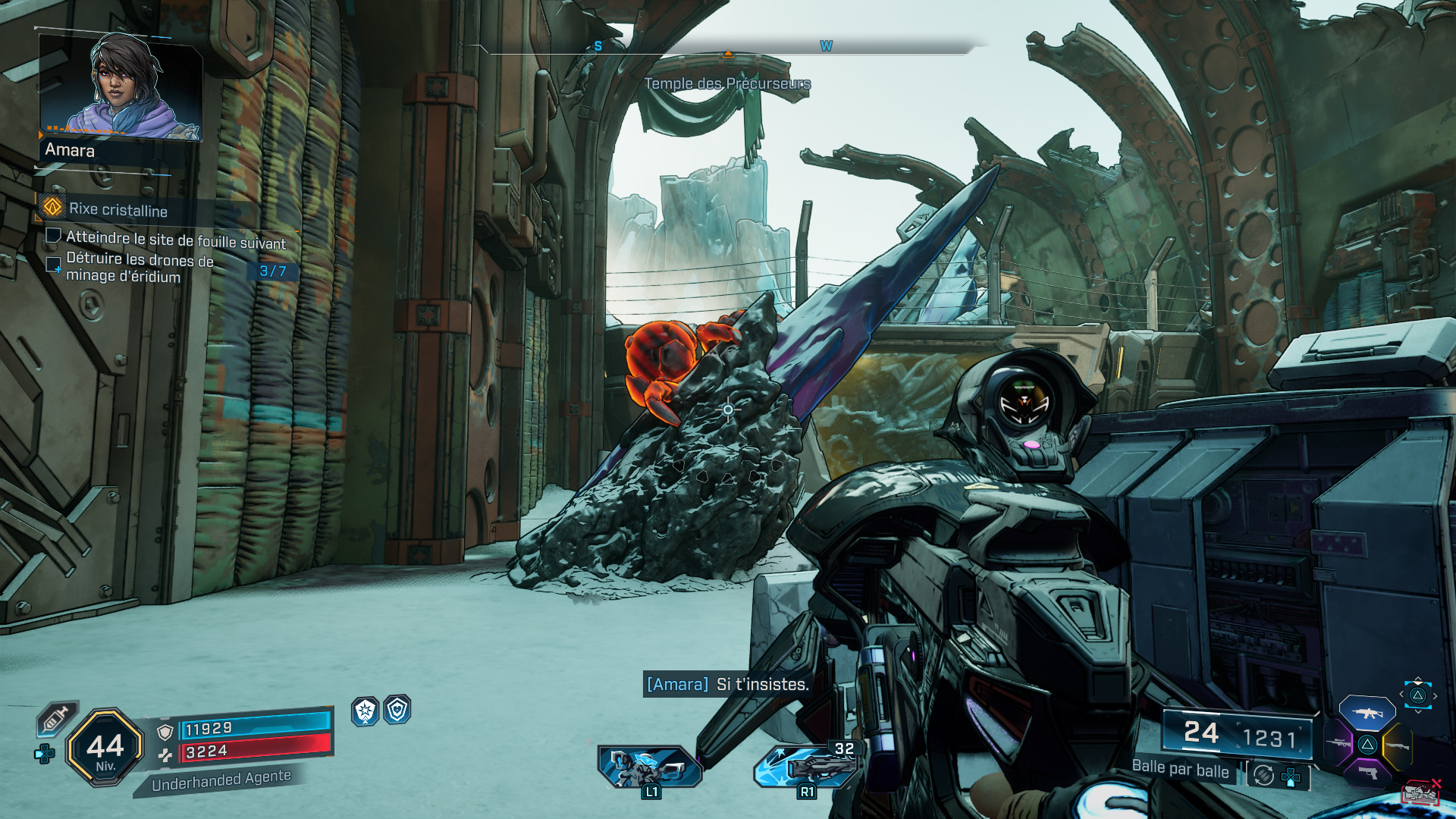 Suivez-la à l’intérieur du vaisseau, ou du moins ce qu’il en reste, pour qu’elle vous donne alors rendez-vous sur le site de la chute de la lune, au nord-est de votre position. Suivez donc votre boussole au fur et à mesure du trajet pour finalement retrouver Amara et vous rendre sur le site de chute de la lune avec elle. Non sans avoir à vous débarrasser de nombreux soldats de l’Ordre en arrivant au Temple des Précurseurs.
