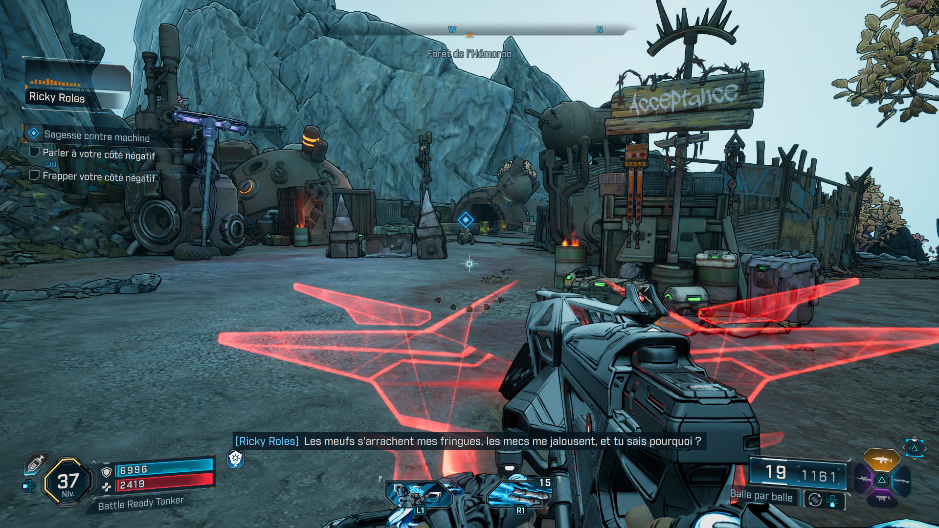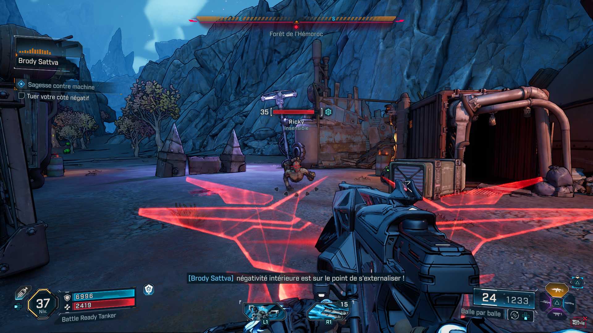 - Récompense : XP + Argent + Eridium + Fusil d’assaut peu commun à très rare