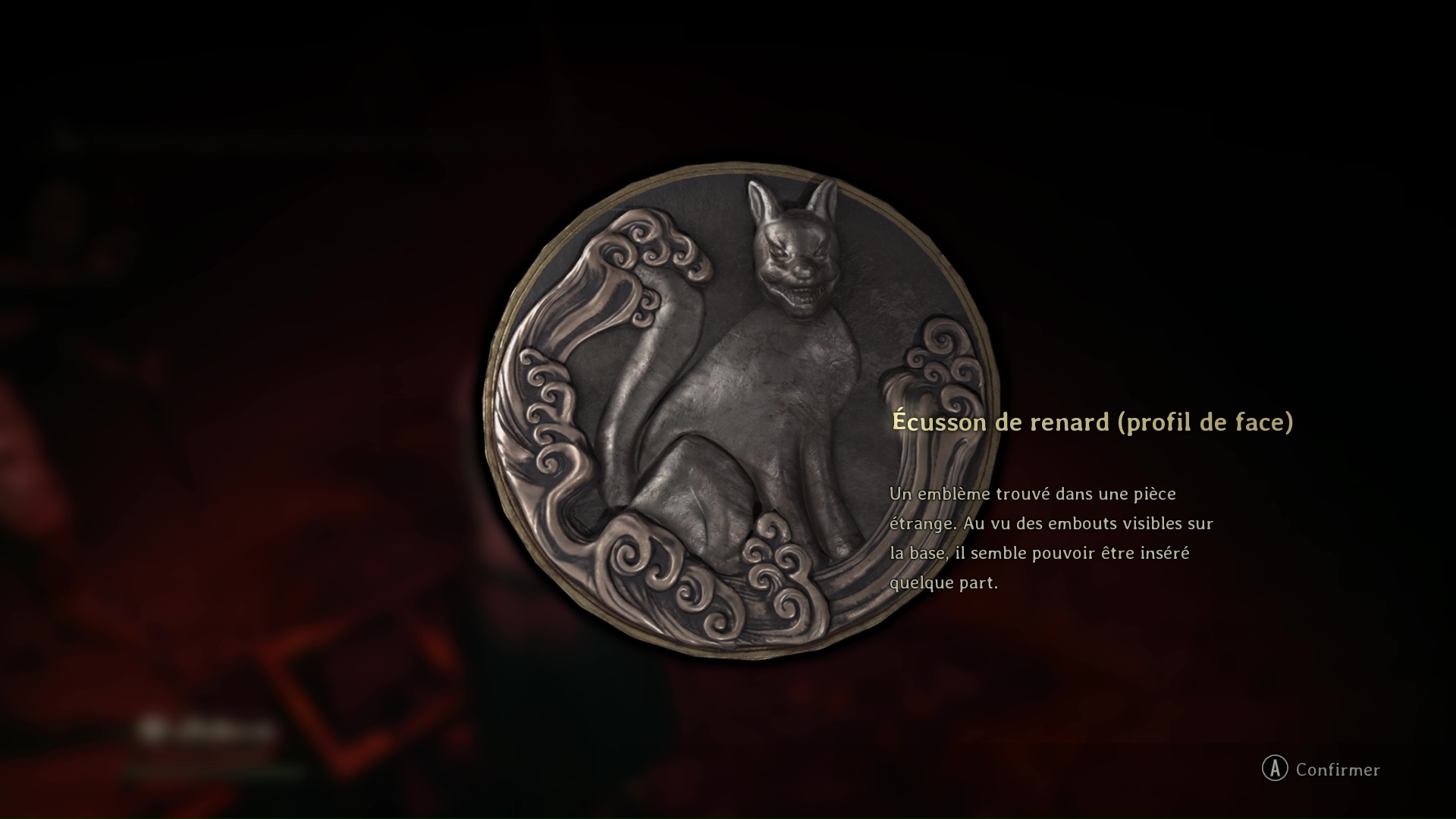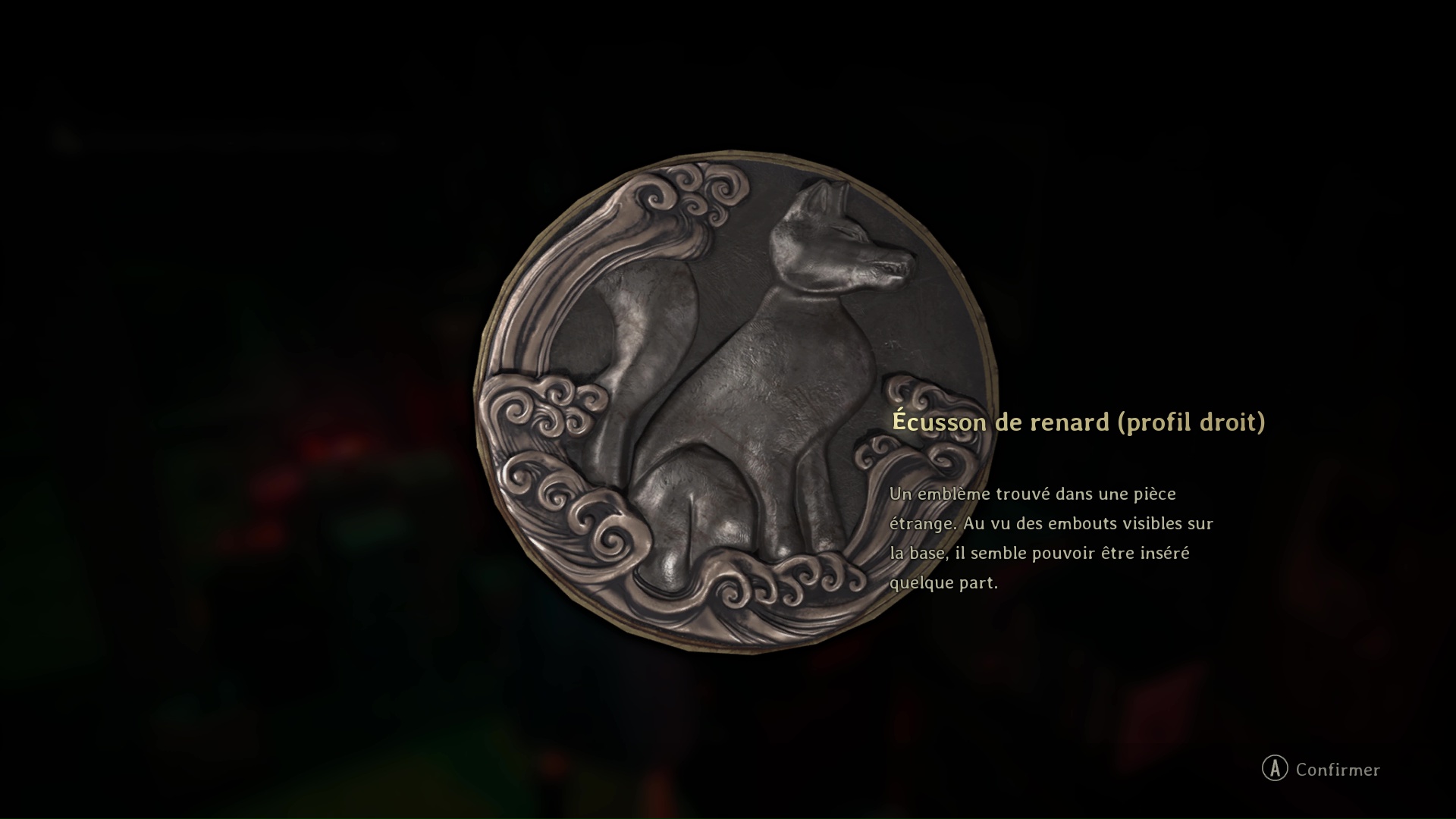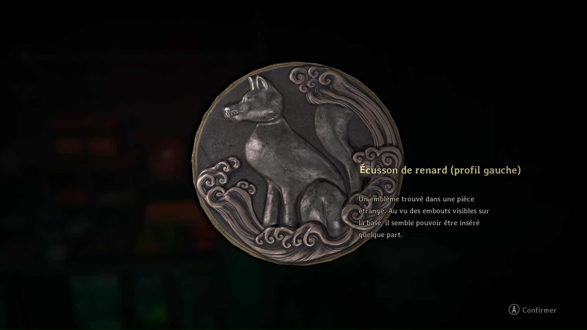 Vous trouverez l’Écusson de renard (profil gauche) derrière une bonbonnière. Puis, sortez de la pièce pour rejoindre la salle de l’Hokora.