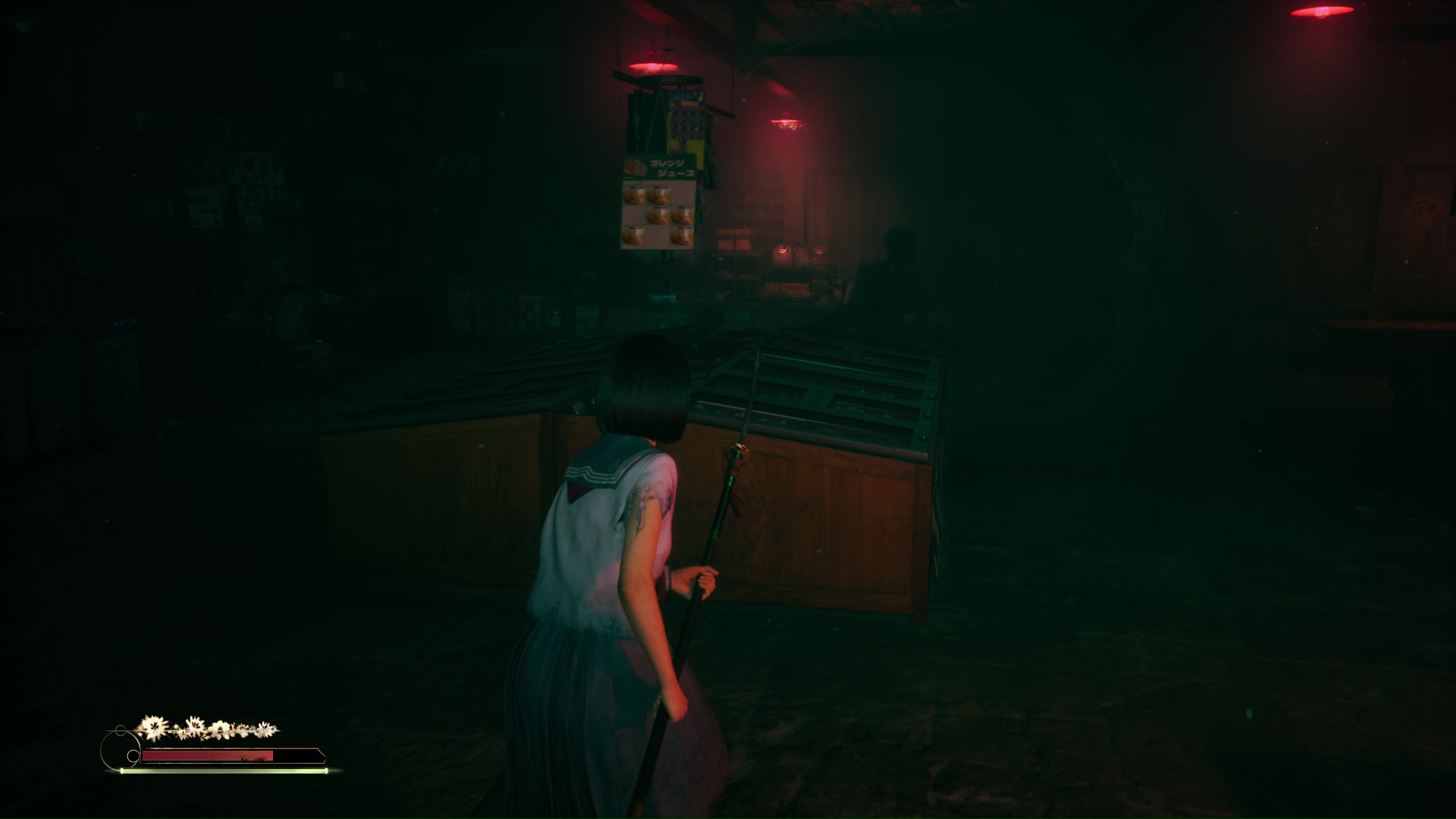 Avancez dans le vestiaire suivant puis tuez un monstre hurlant sous la lanterne avant d’activer le levier pour afficher la couleur verte et d’éliminer de nouveau un monstre. N’oubliez pas le Journal de Sakuko sur l’un des bancs. À ce stade, nous vous conseillons de passer la porte verte, suivre le couloir en face (n’oubliez pas de ramper à gauche pour trouver un Journal de Sakuko) pour ressortir dans la pièce de départ, sauvegarder et réenclencher les mêmes leviers pour vous rouvrir le chemin jusqu’au couloir vert près du vestiaire, désormais ouvert.