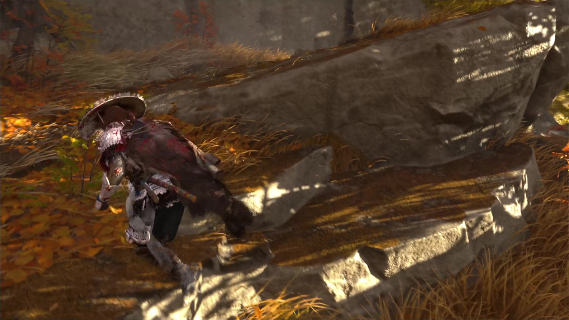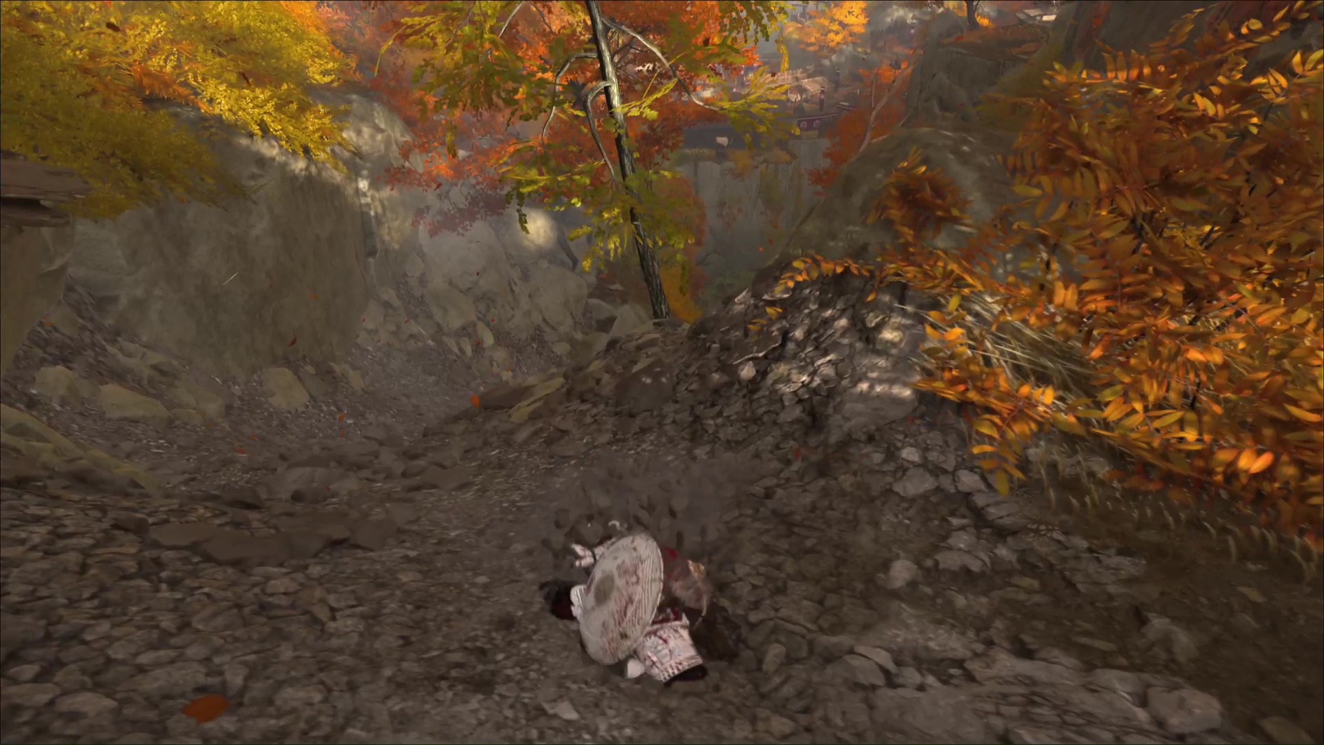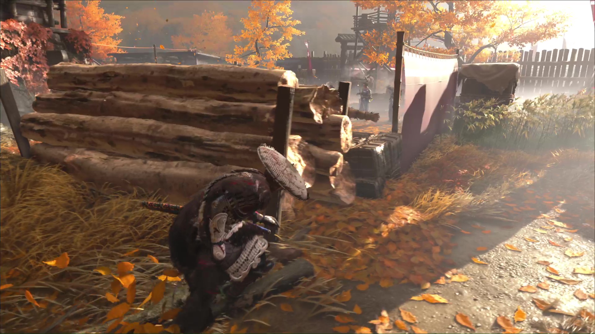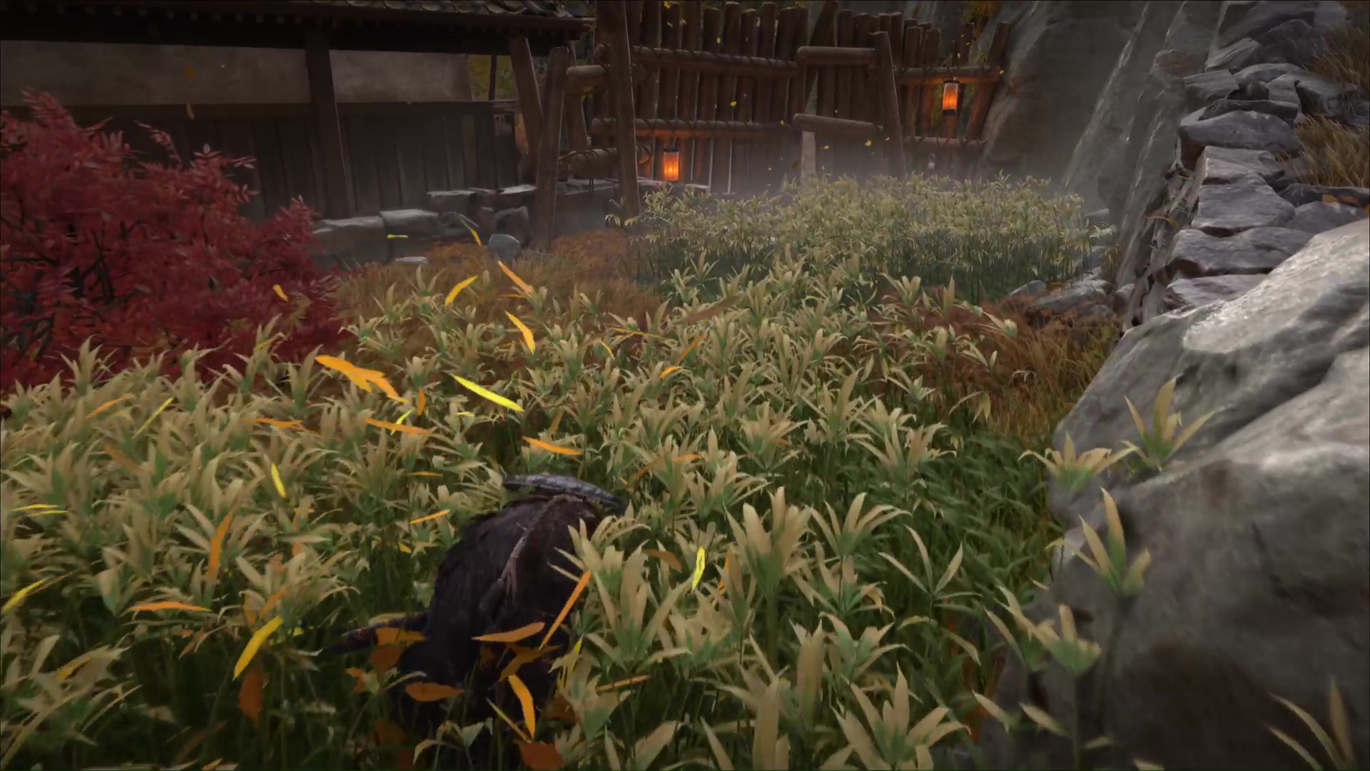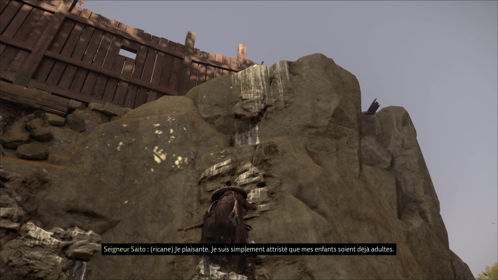 Descendez l’escalier et avancez en restant caché par le tas de bois et le tissu. Depuis l’herbe haute un poil plus loin, grimpez le rocher et ne tardez pas à avancer sous peine d’être repéré. Devant vous, une nouvelle brèche dans la barrière par laquelle vous pouvez passer.