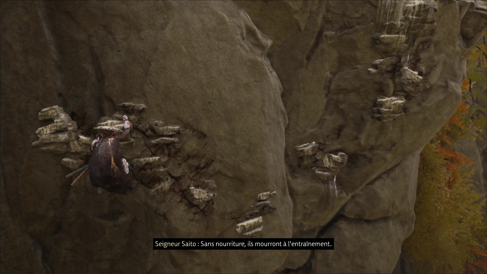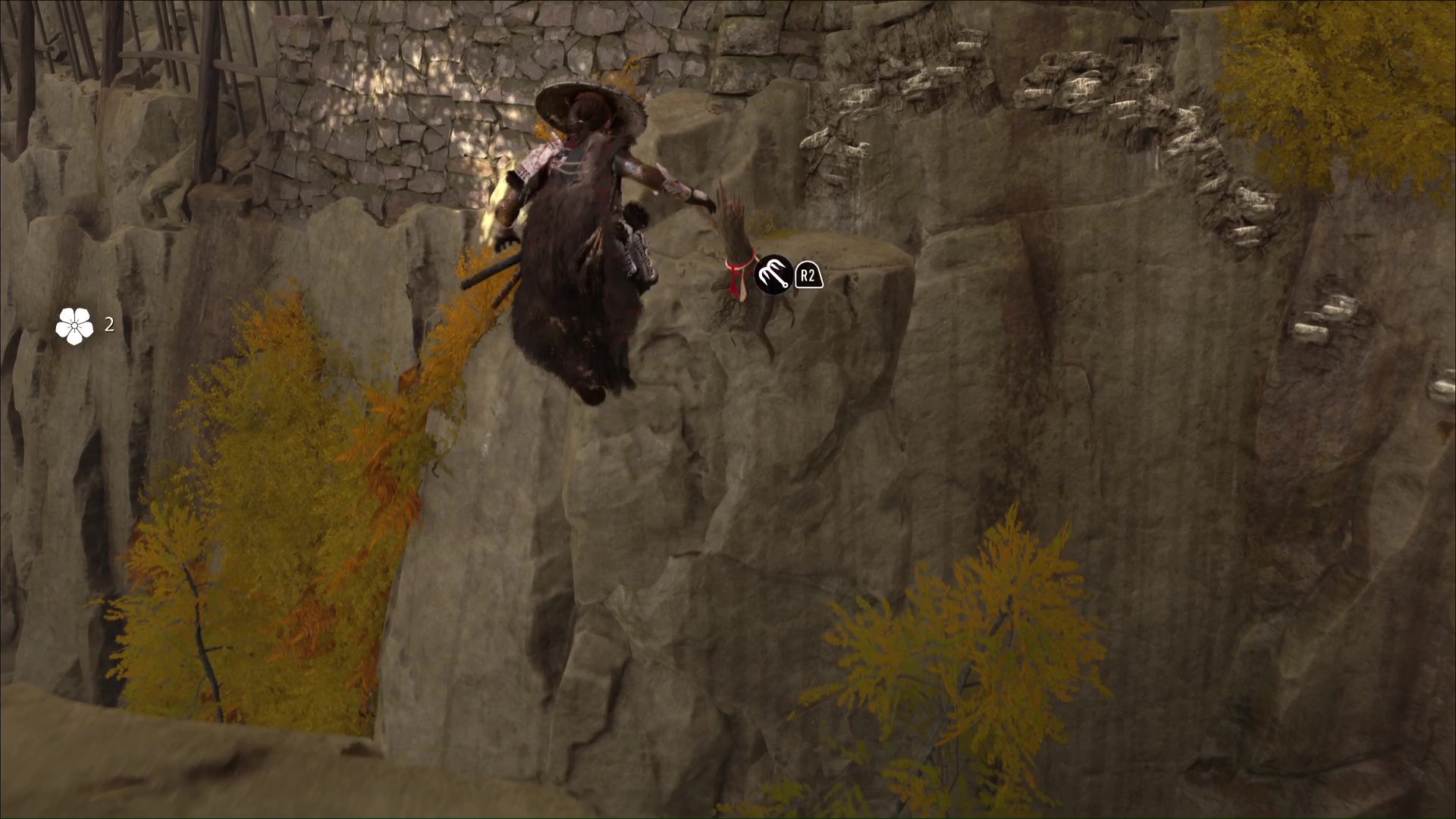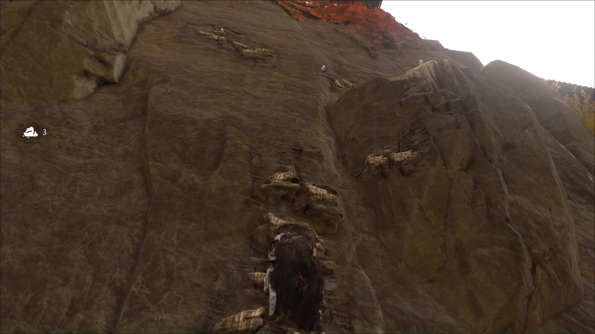 De l’autre côté, sautez afin de rejoindre le rocher d’en face. De là, vous pouvez voir la séquence de plateforme qui vous attend. Commencez par grimper via des prises rocheuses et faites un peu de grimpette.