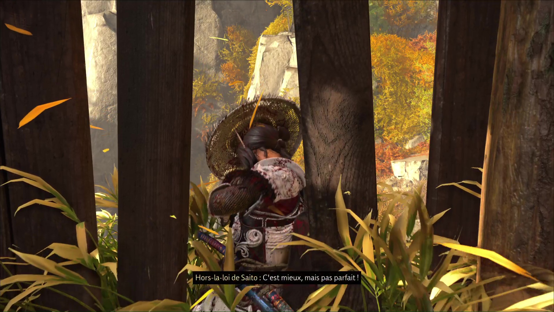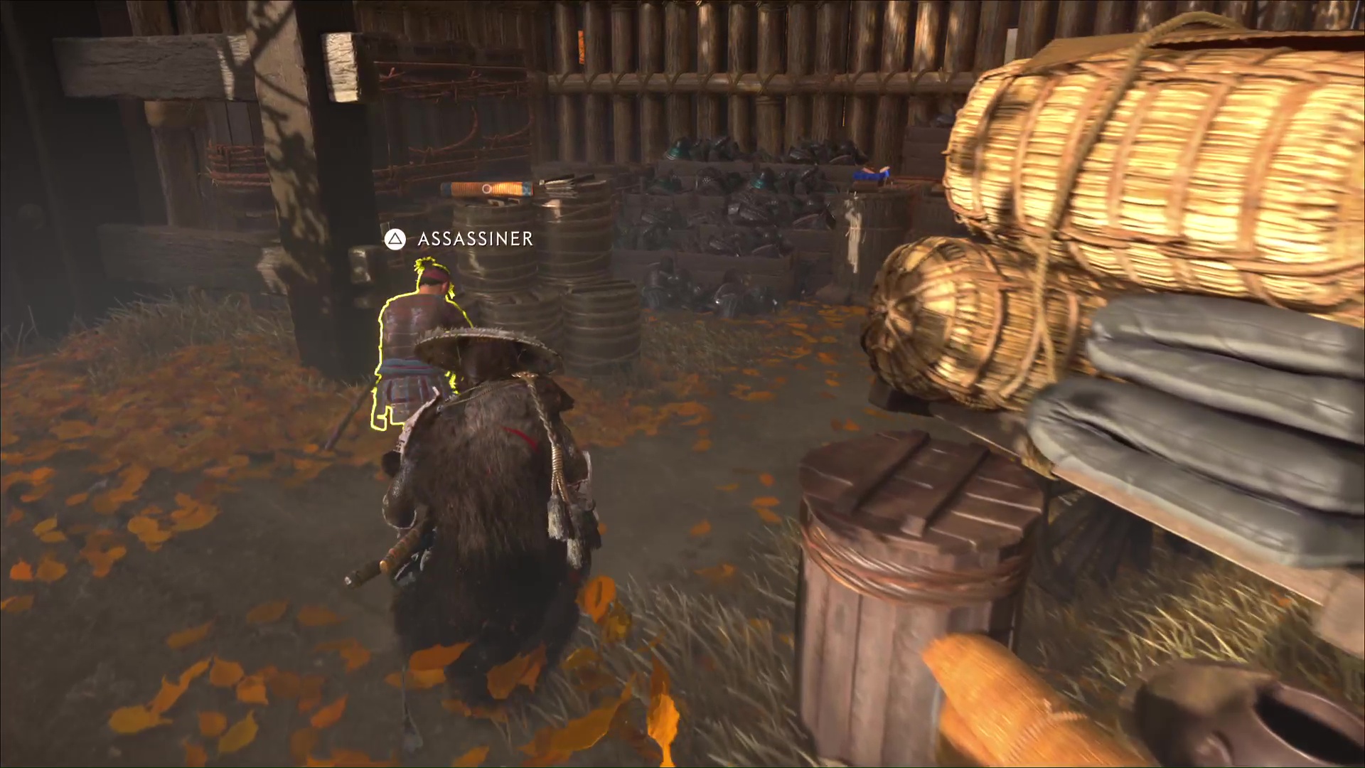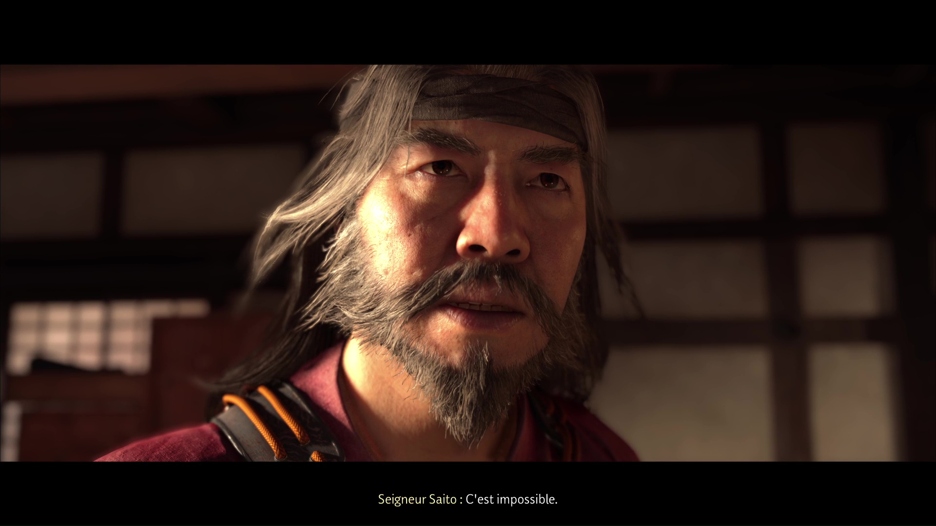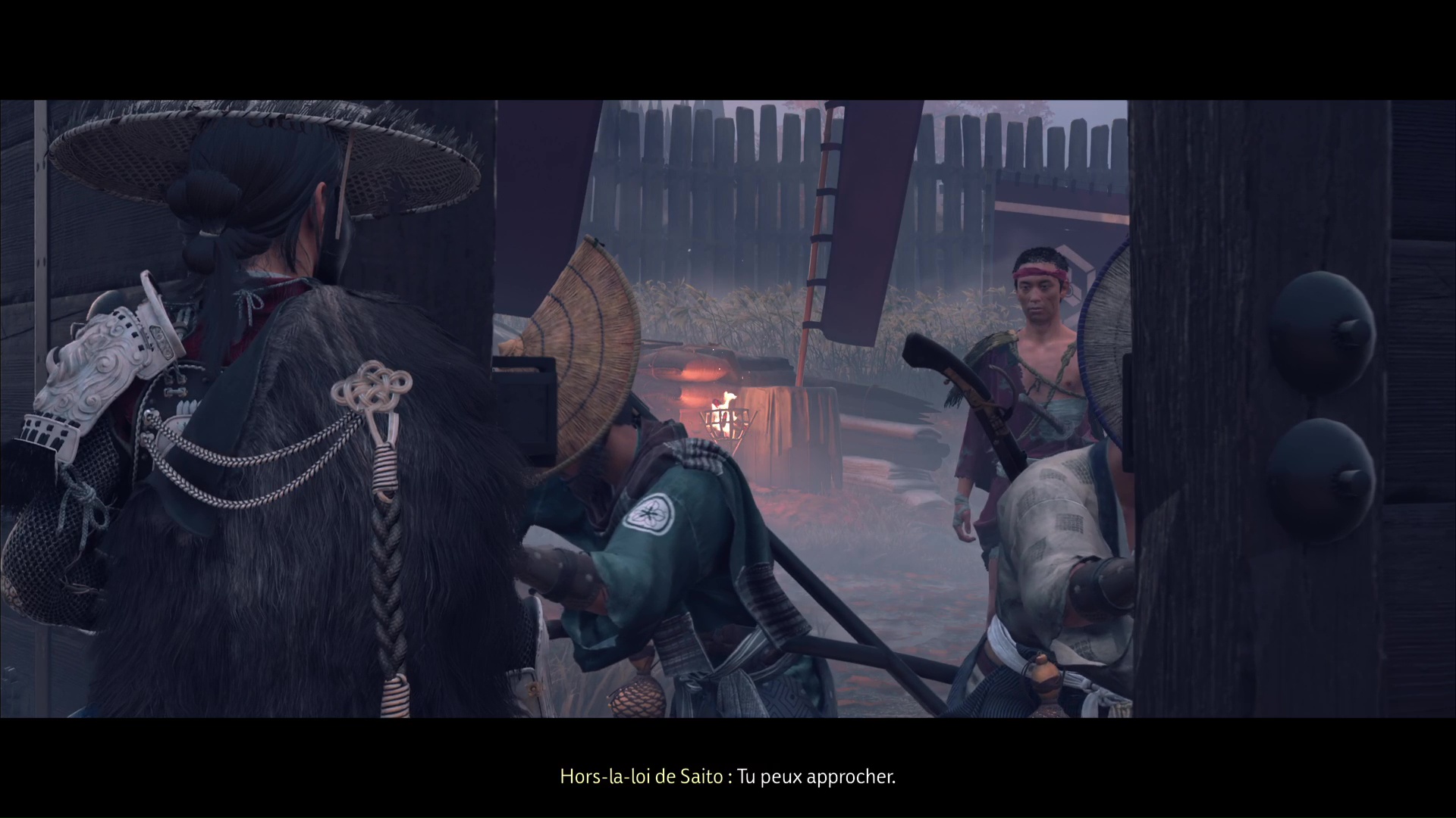 Vous voici juste au-dessus Saito. Assassinez-le. Hélas, il a senti le coup venir et esquive Atsu. Il ramasse ensuite le sabre et comprend alors qu’il a en face de lui la fille du forgeron. Il décide alors d’aller dehors et invite Atsu à le suivre.