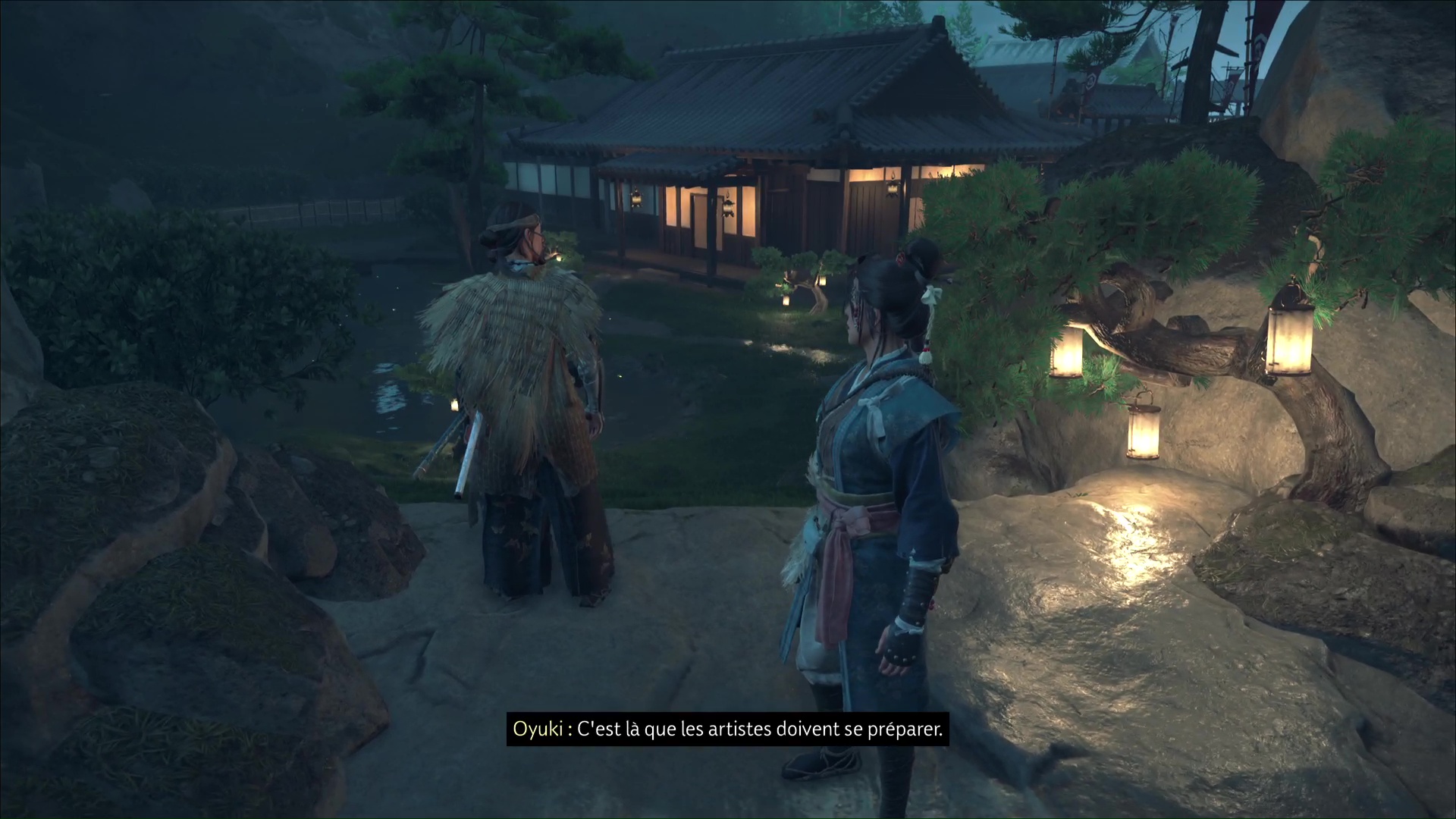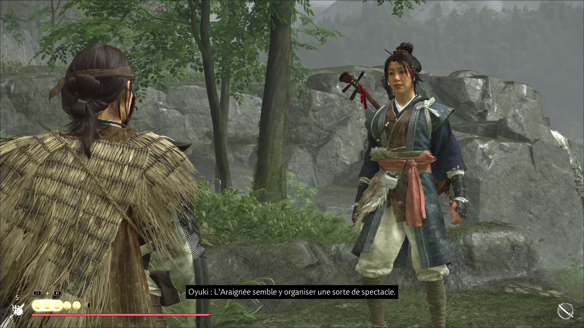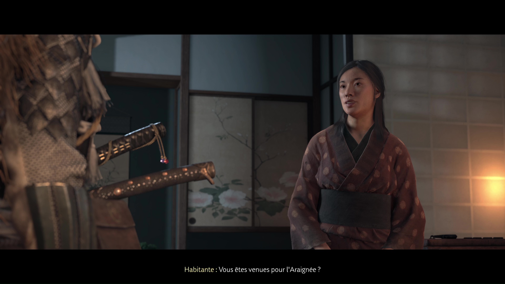 Suivez le repère qui se trouve au nord du château des Matsumae, pour y trouver Oyuki. Elle vous informe que l’Araignée prépare une sorte de spectacle, et il recrute presque n’importe qui pour y participer. Ce serait donc votre chance de l’approcher.