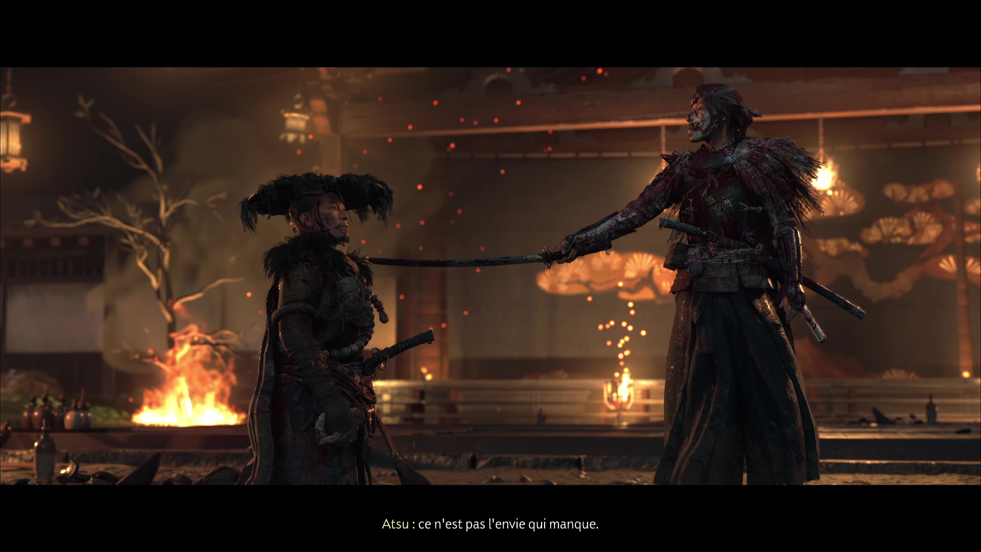 En effet, de retour au contrôle d’Atsu, vous débloquez la posture du fantôme. Basée sur la même jauge que le hurlement de l’onryō, la posture du fantôme vous permet de déclencher la rage d’Atsu et d’éliminer gratuitement trois ennemis.