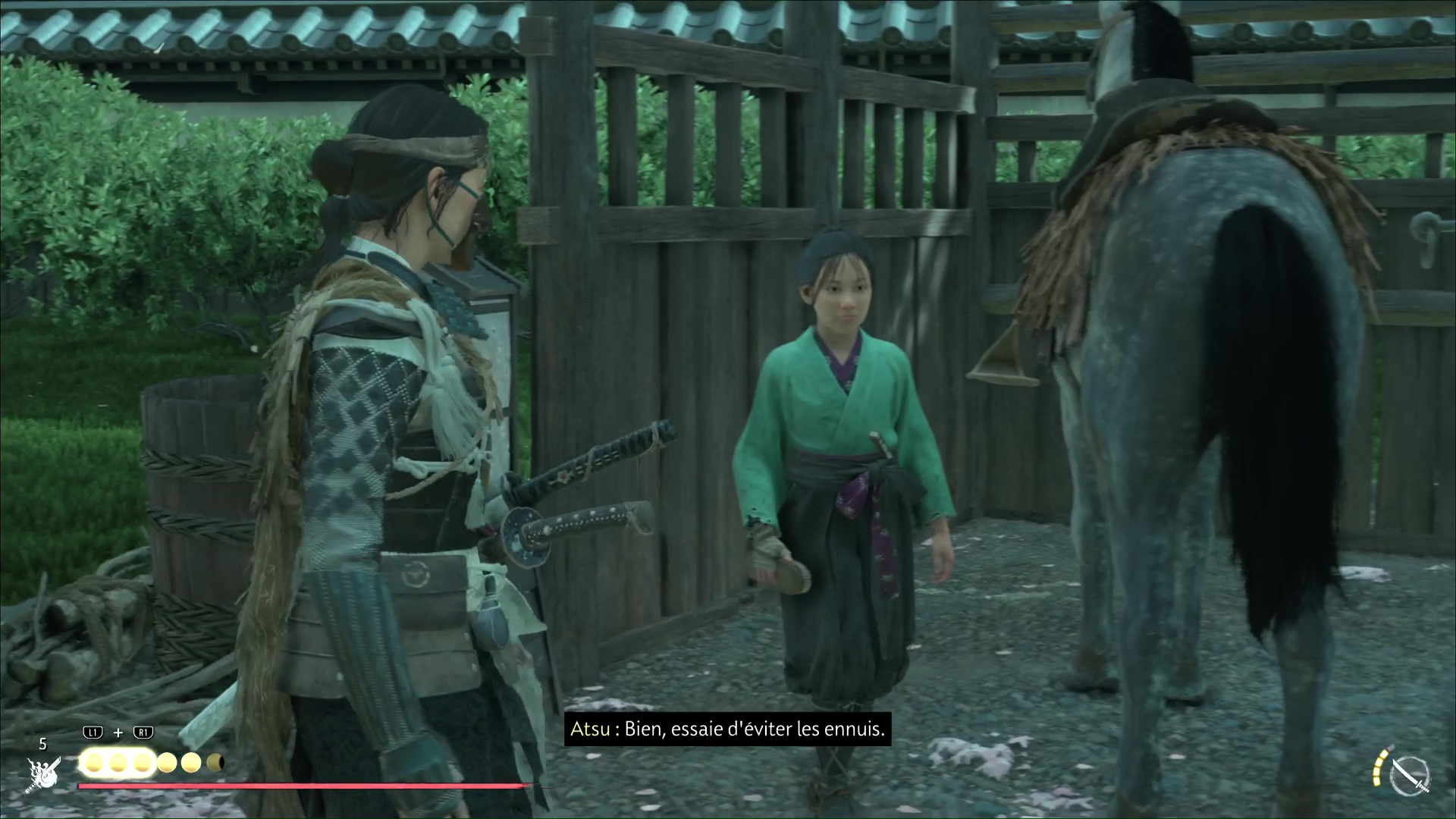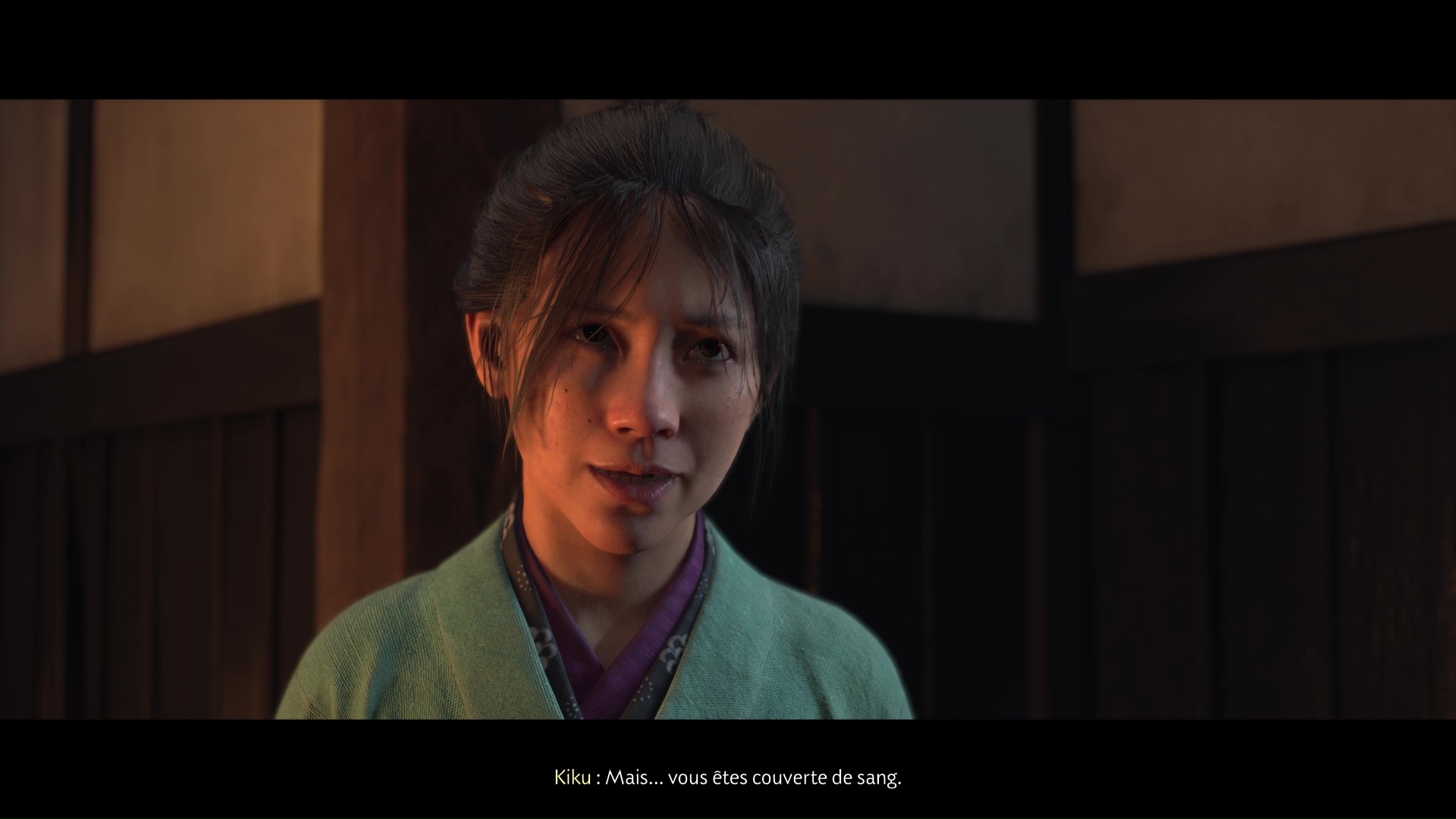 Vous voilà enfin au niveau des dépendances. Pénétrez dans le bâtiment devant vous et une habitante comprendra pourquoi vous êtes là, en voyant vos armes. Elle vous apprend que la fille avant elle a été frappée. Il n’en fallait pas plus pour motiver Atsu à prendre la relève.