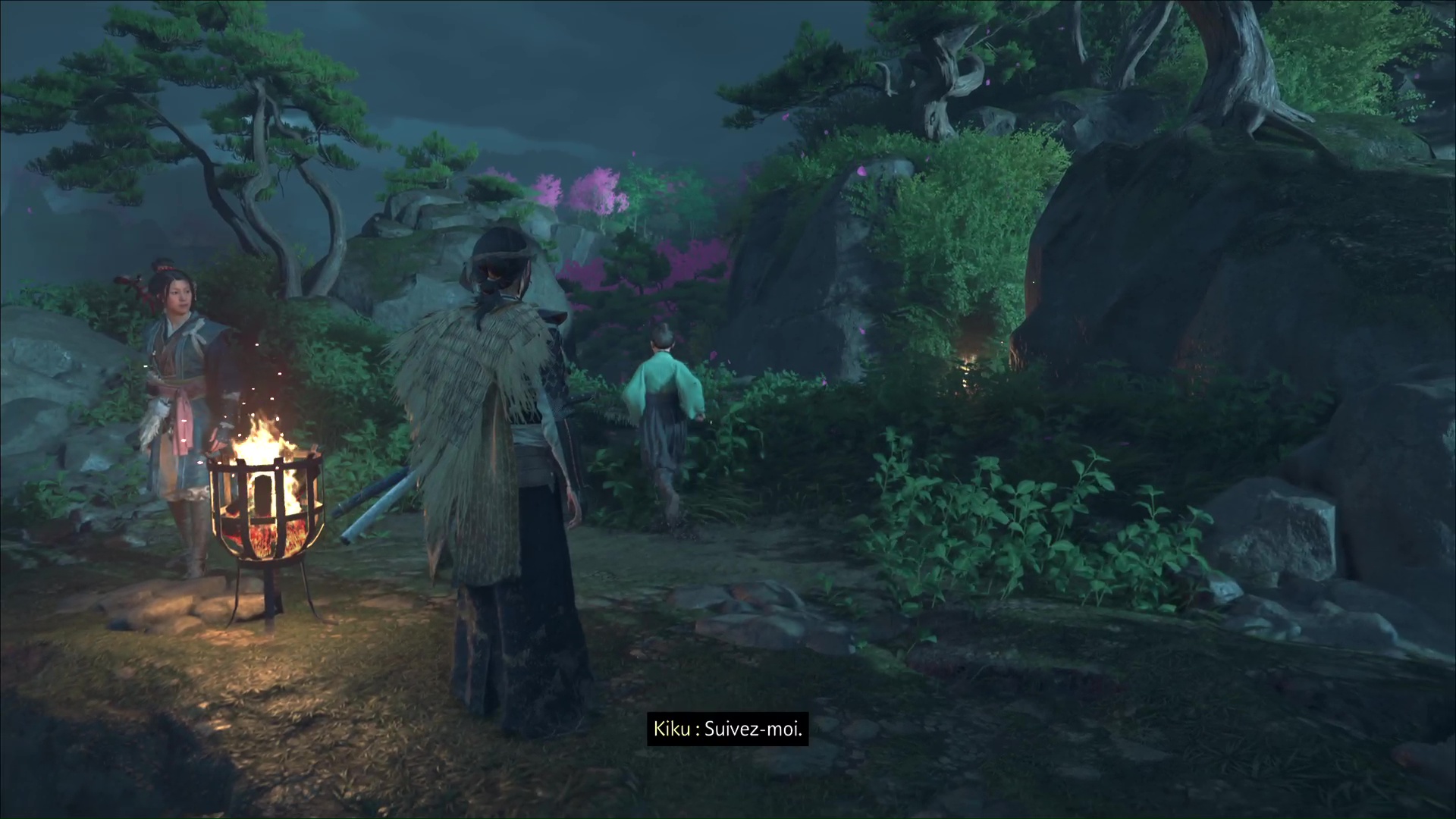 La nuit tombée, suivez Kiku lors d’un petit parcours de plateforme et avancez jusqu’à atteindre le bord d’une falaise, parfait pour observer le domaine.