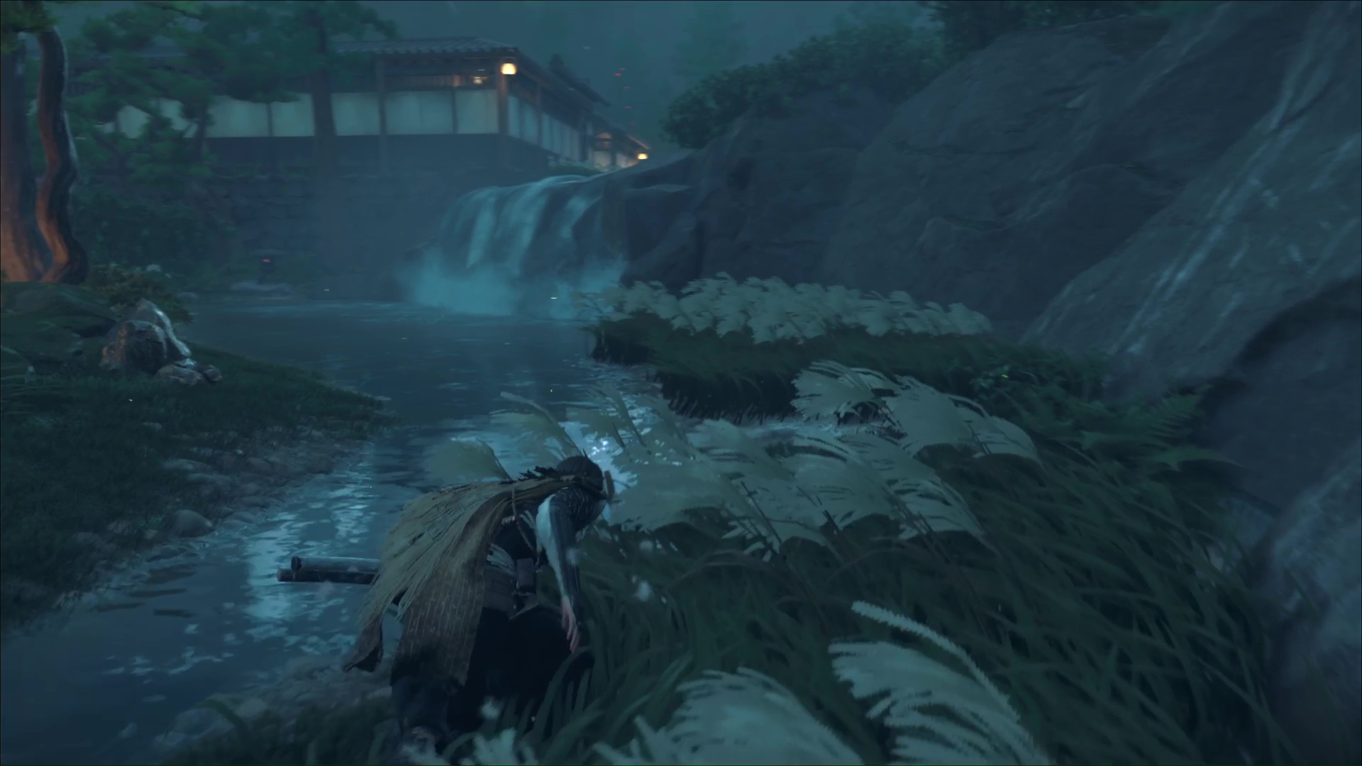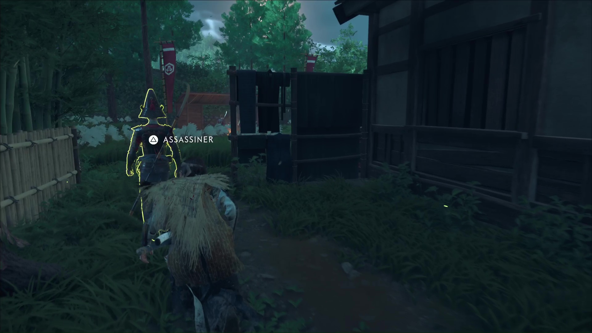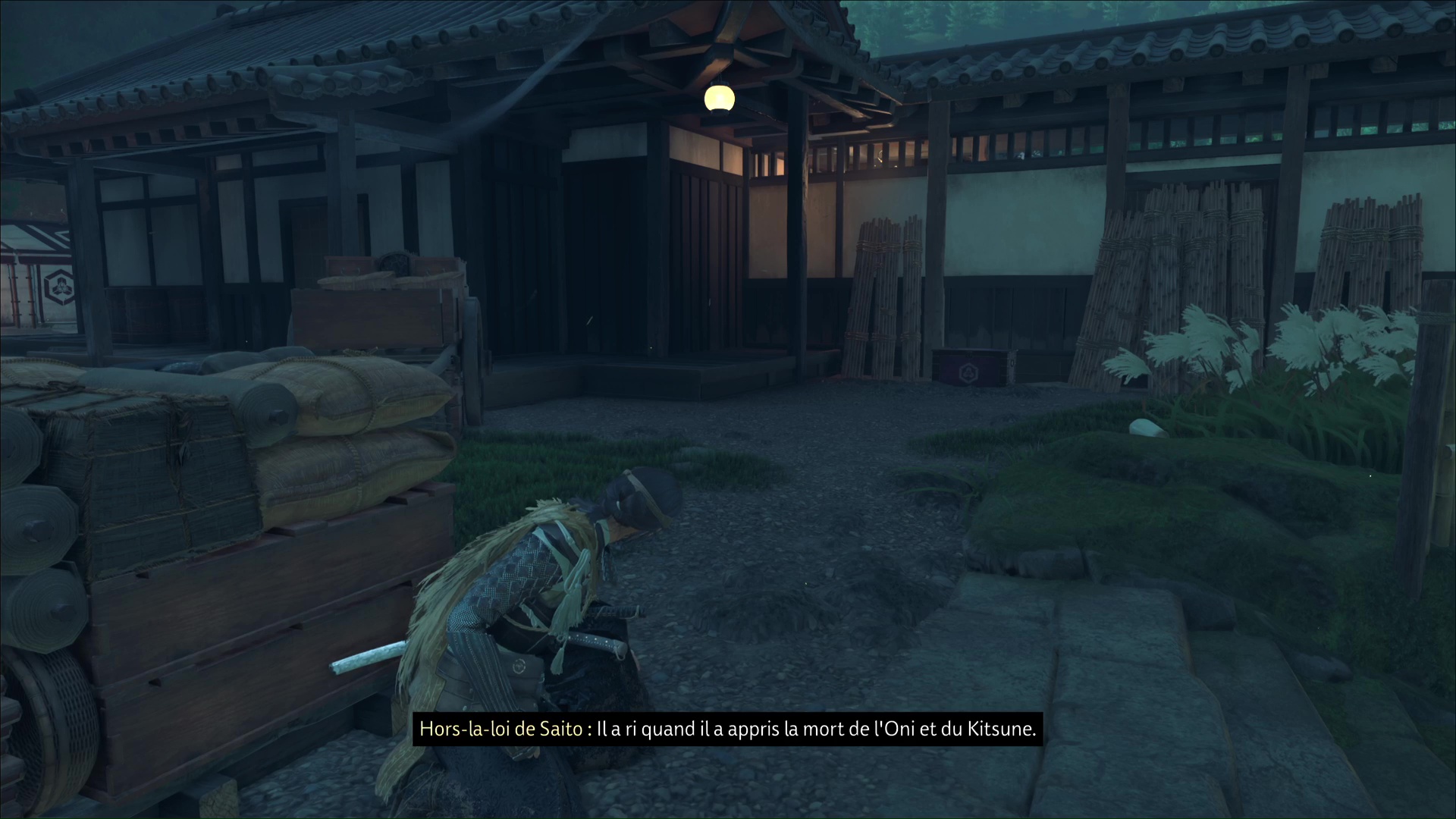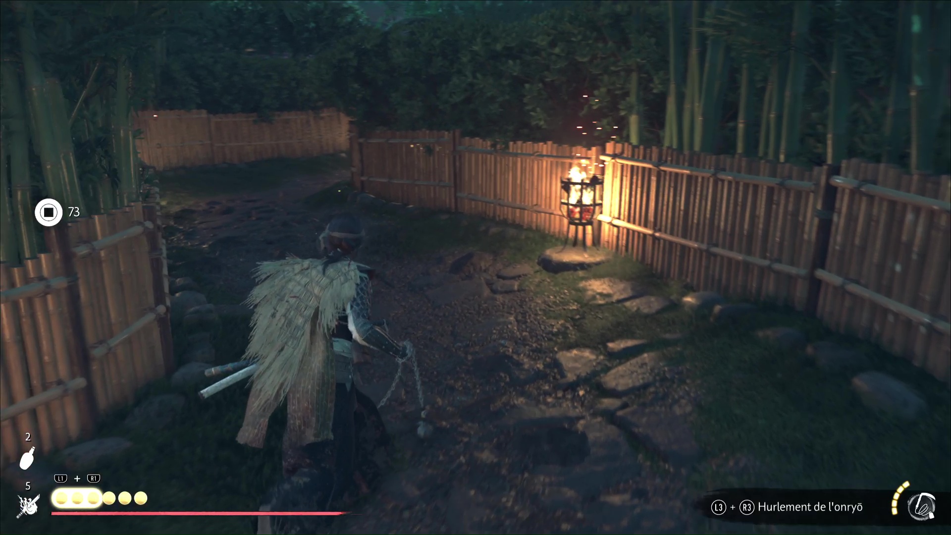 Vous débarquez alors rapidement derrière un duo de gardes. Vous connaissez la démarche, faites un double assassinat au kusarigama pour démarrer tranquillement cette nouvelle zone. Face au pont, prenez le chemin de gauche, au bout duquel un garde patrouille. Un petit coup de kusarigama discret et vous pourrez reprendre votre route.