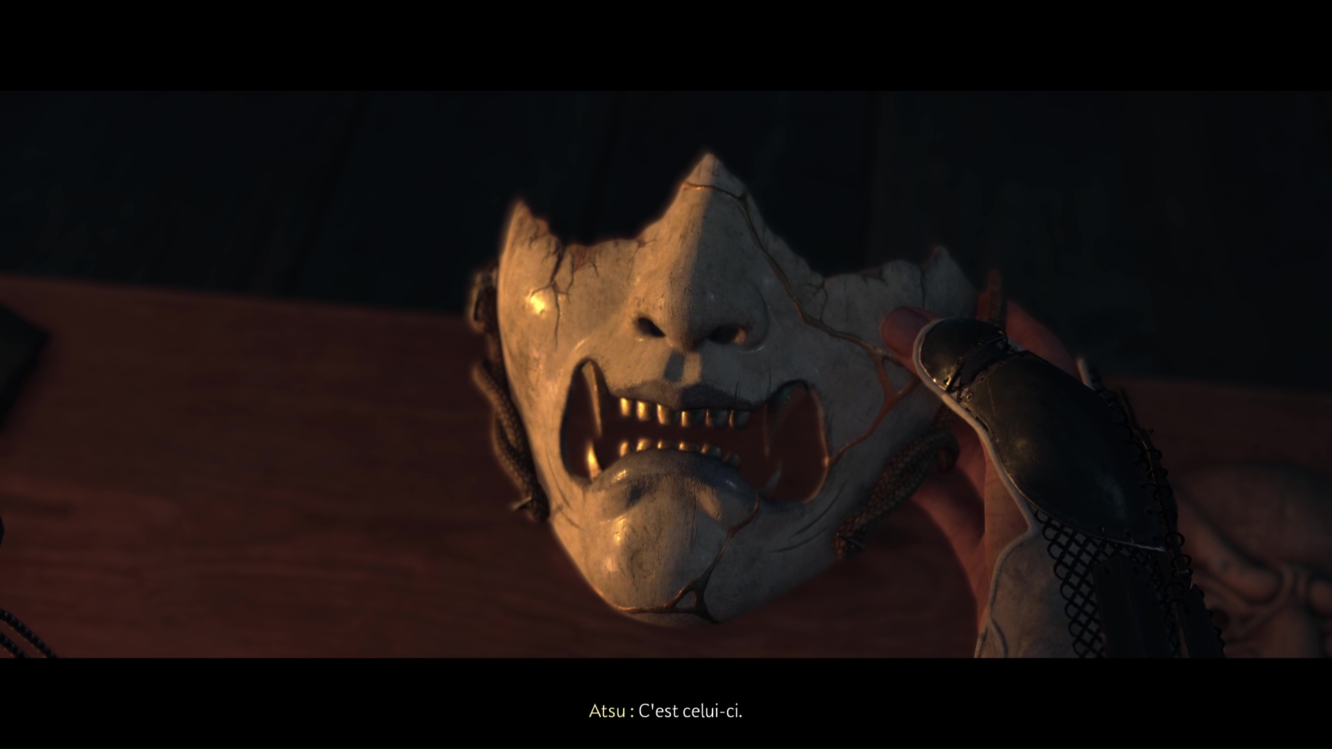 Mais lorsque la jeune femme lui dit de quoi parle la pièce que l’Araignée met en scène, c’est la goutte qui fait déborder le vase. Oyuki, invite alors la servante à s’échapper sans plus attendre. Atsu met alors la main sur un masque qui devrait vous être familier. Et c’est celui que notre héroïne va choisir pour la suite.